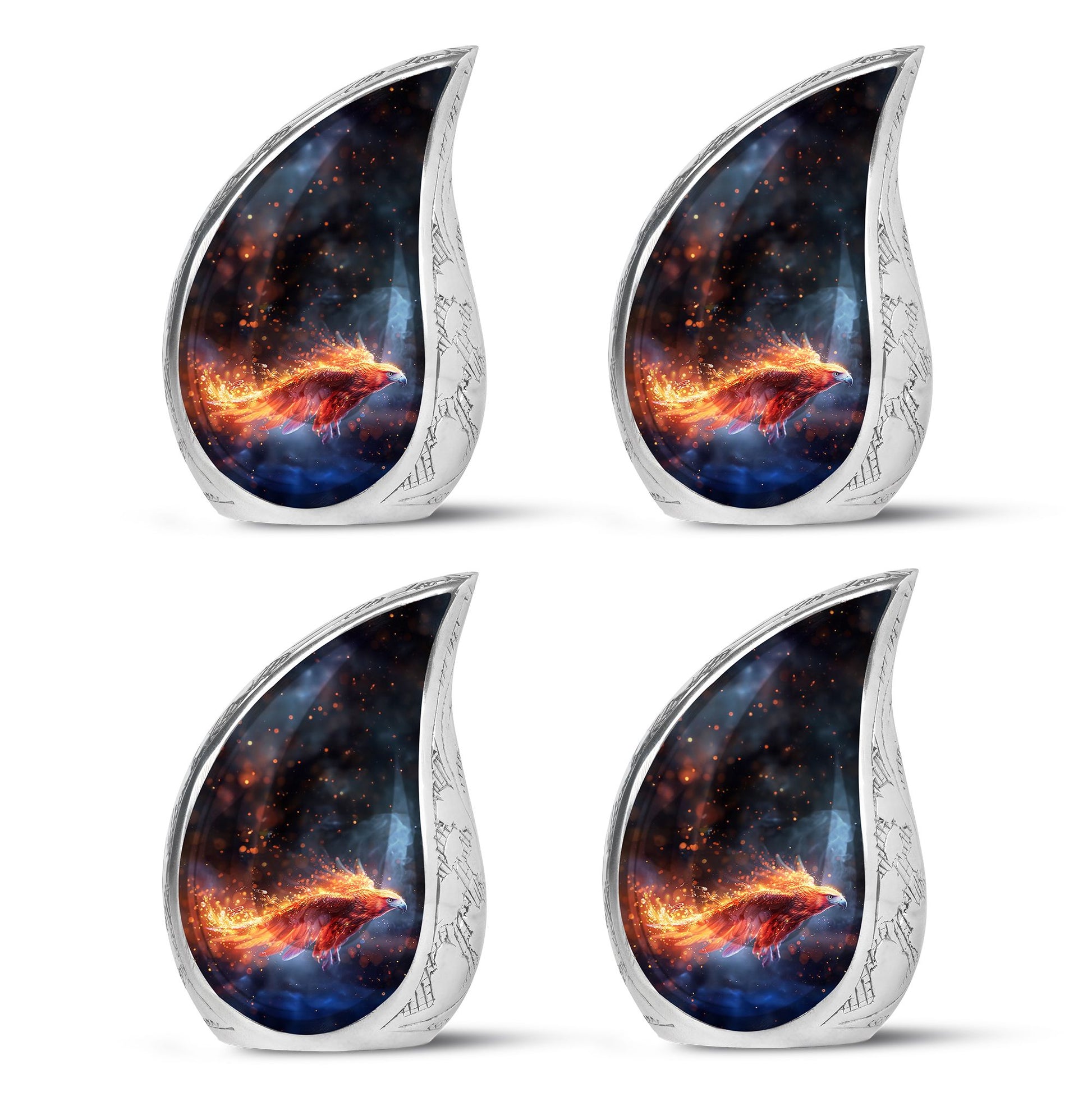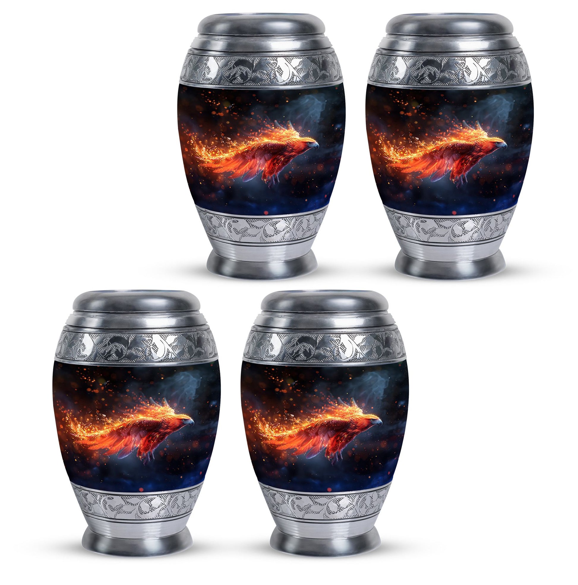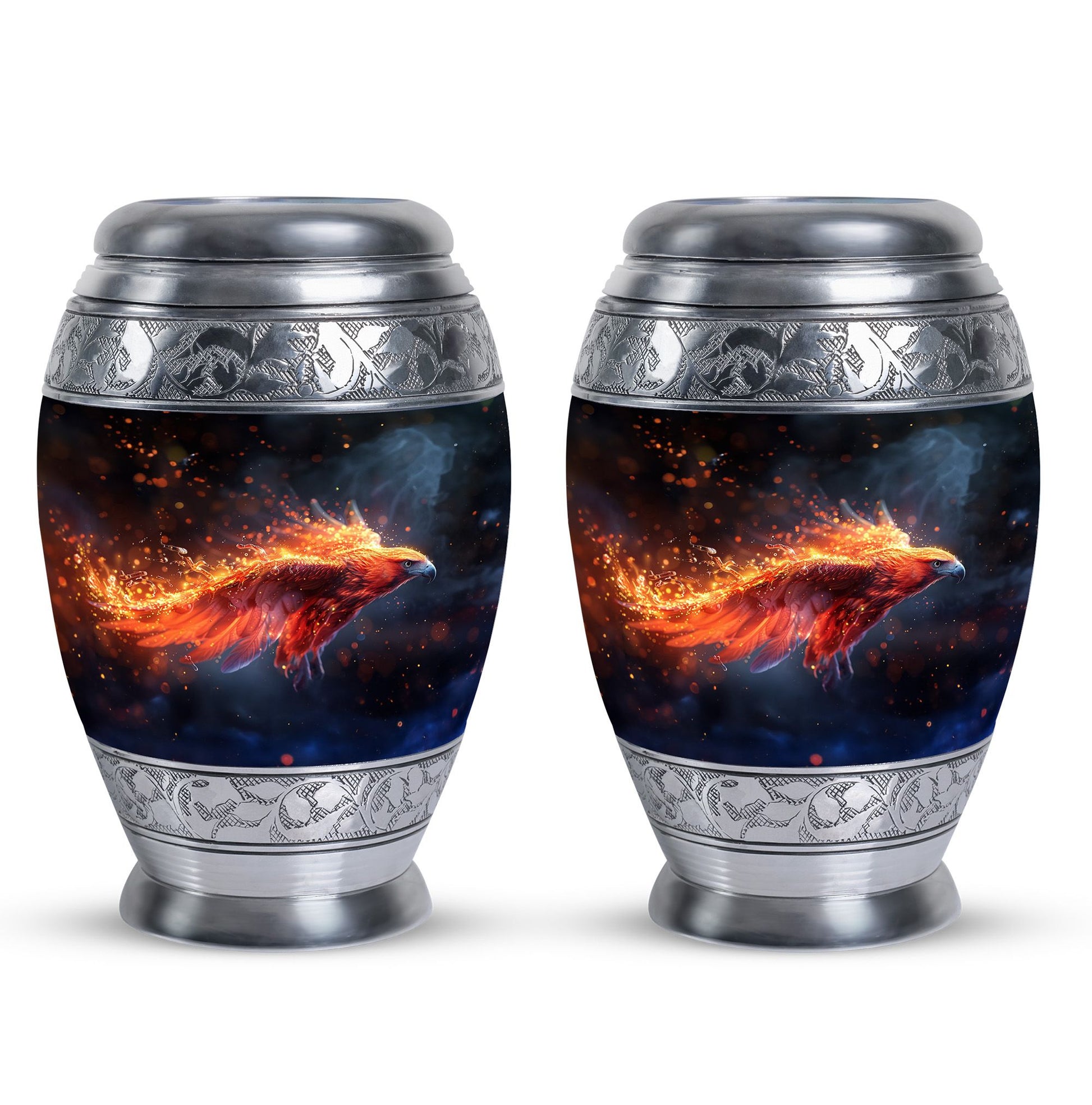 Expertly crafted from premium aluminum, this large cremation urn combines durability with refined artistry. The shimmering metallic tones and detailed phoenix motif add both visual beauty and emotional depth. Each large urn for human ashes is finished with a smooth protective coating to preserve its luster over time. A secure screw-top lid ensures ashes remain safely sealed, while the elegant silhouette makes it ideal for home display or burial. Perfect among large urns for human ashes adult female and male memorials alike, this urn brings comfort through its timeless design.