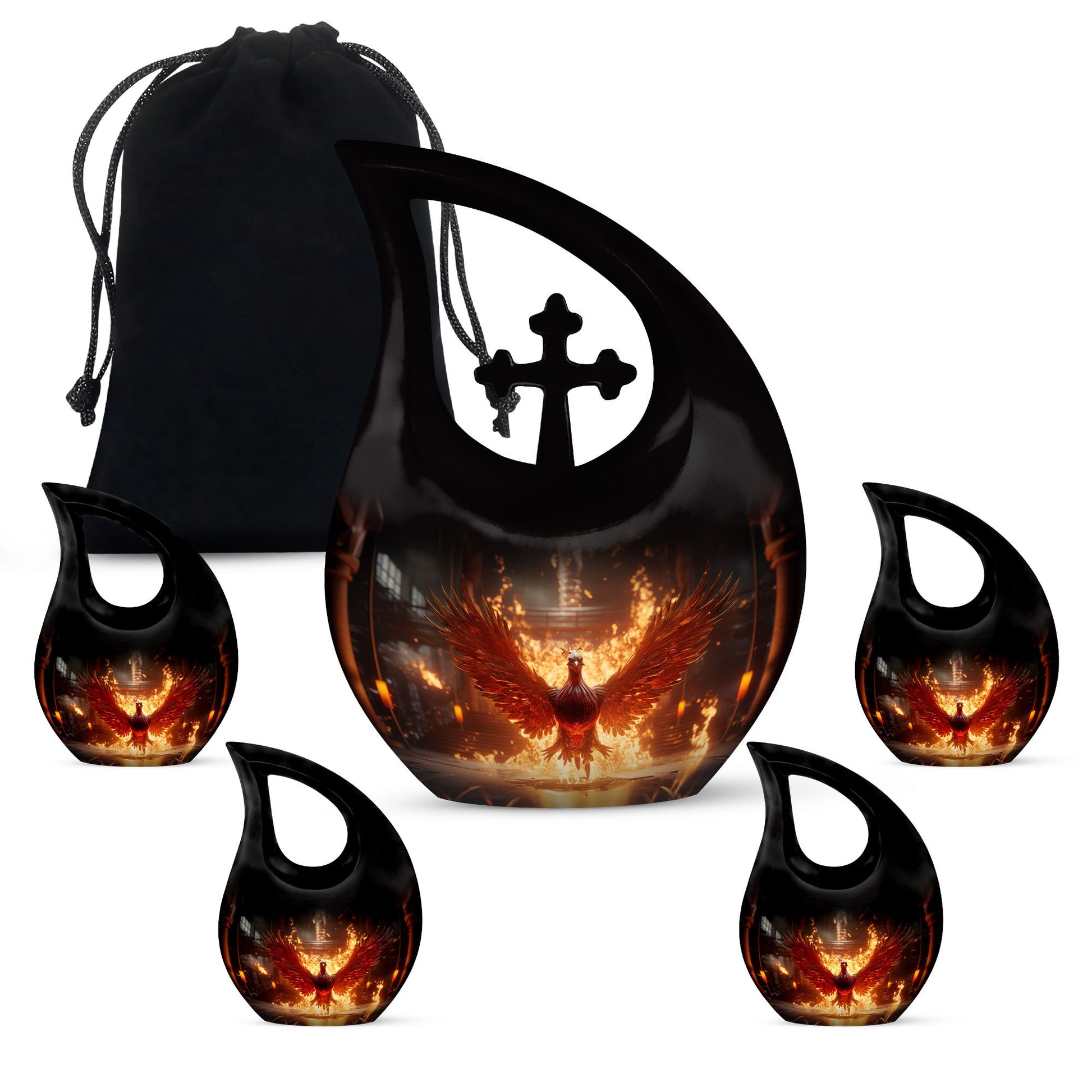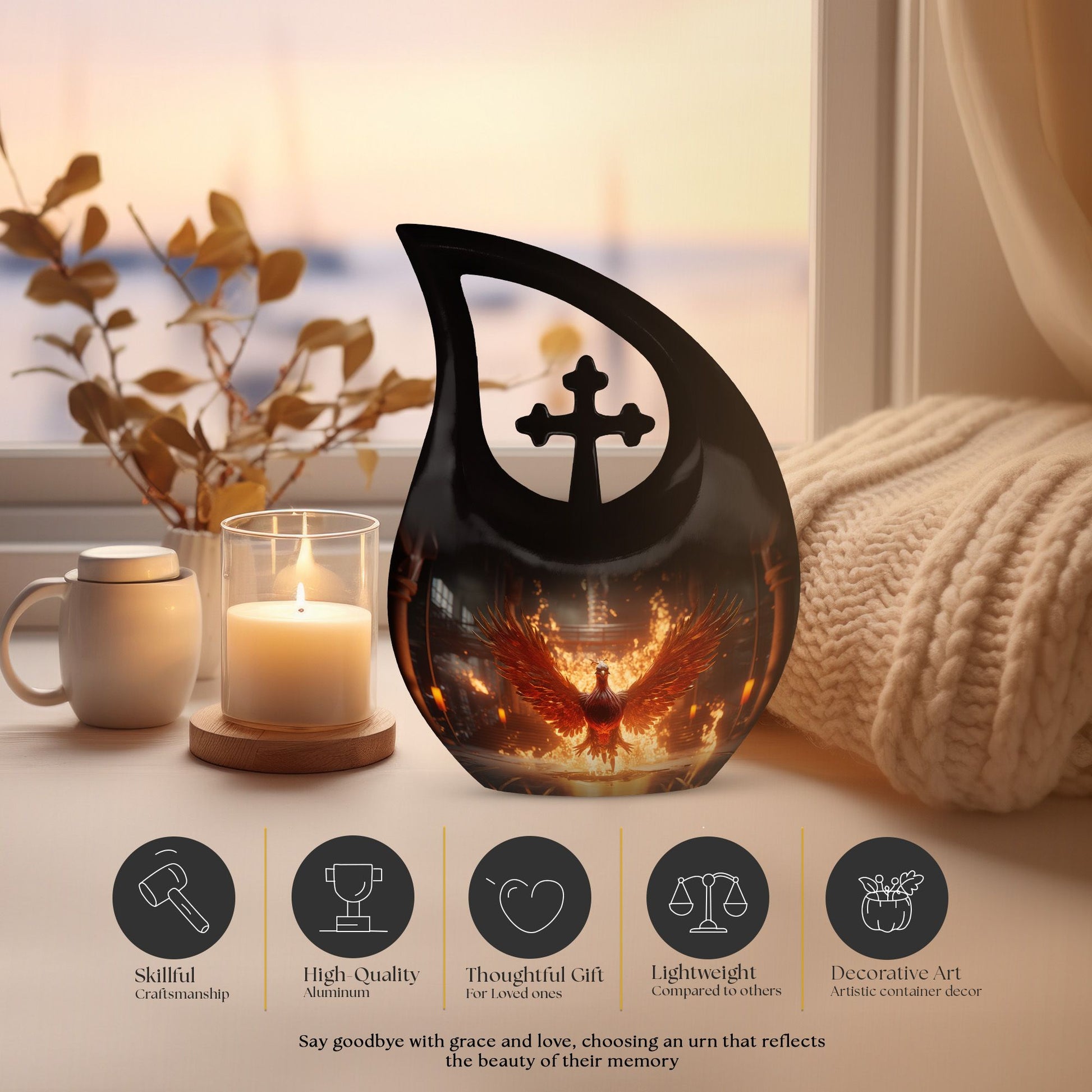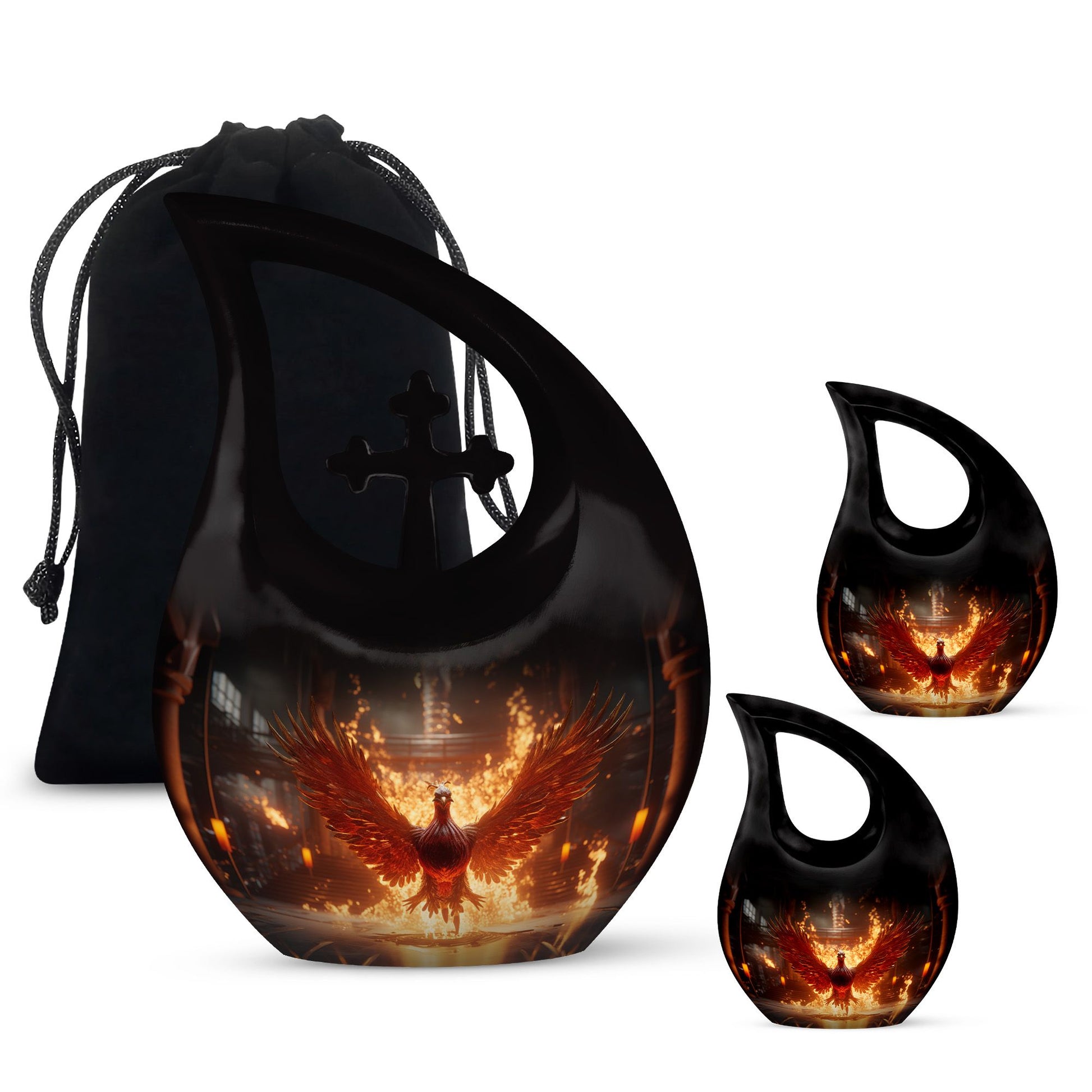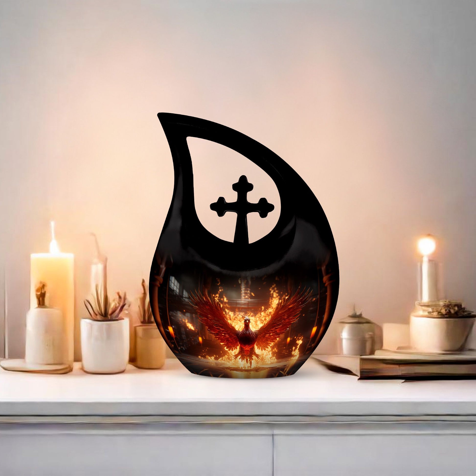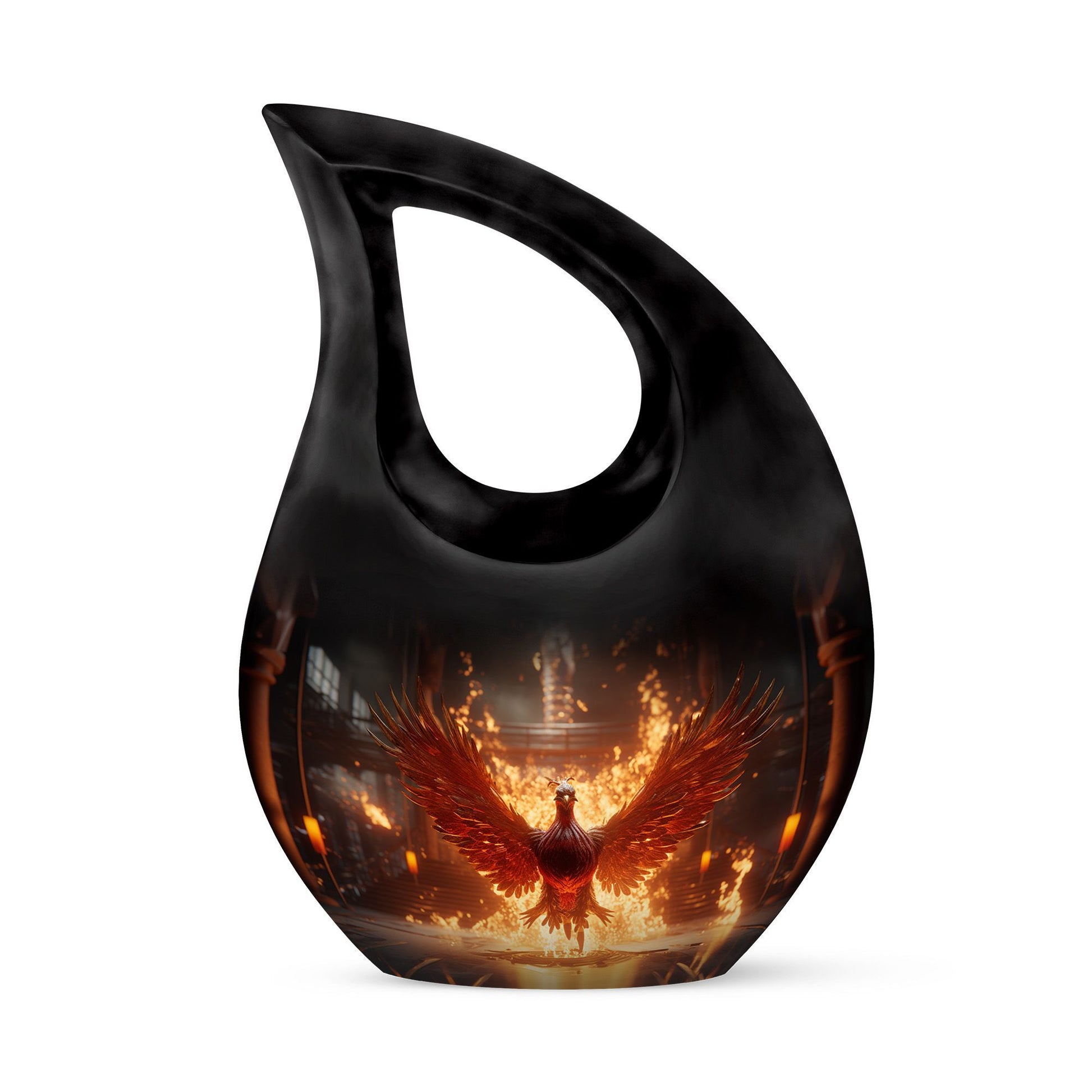 Expertly crafted from durable aluminum, this urn for cremations features a radiant teardrop silhouette with fiery hues of gold and crimson, reflecting the symbolic rebirth of the phoenix. Designed for elegance and durability, it’s suitable for display or keepsake use. Families looking for cremation urns ashes, cremation urns adults, or cremation urns small will find this a perfect balance of artistry and meaning.