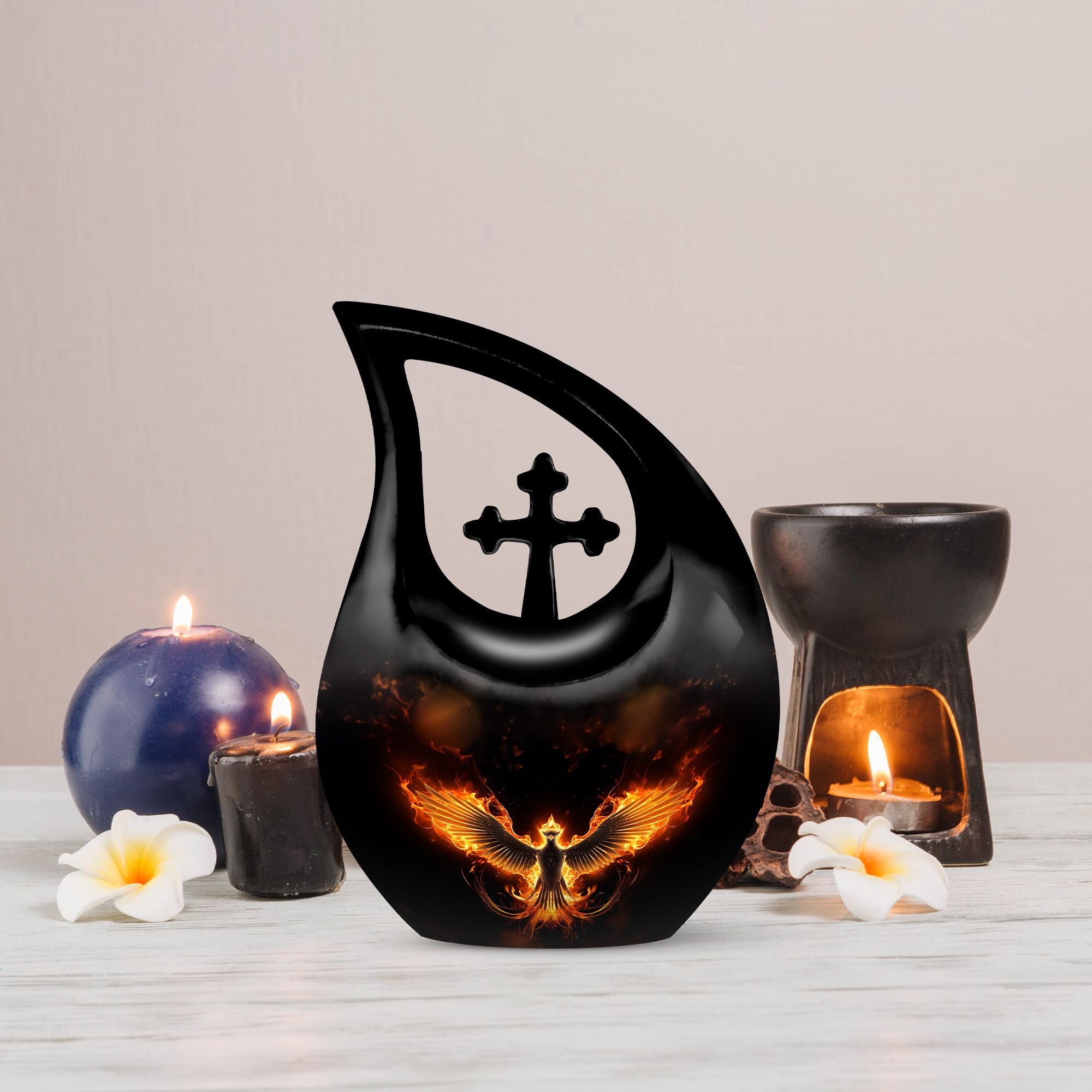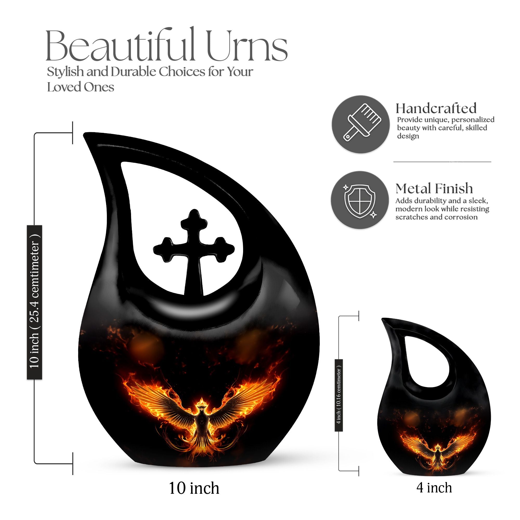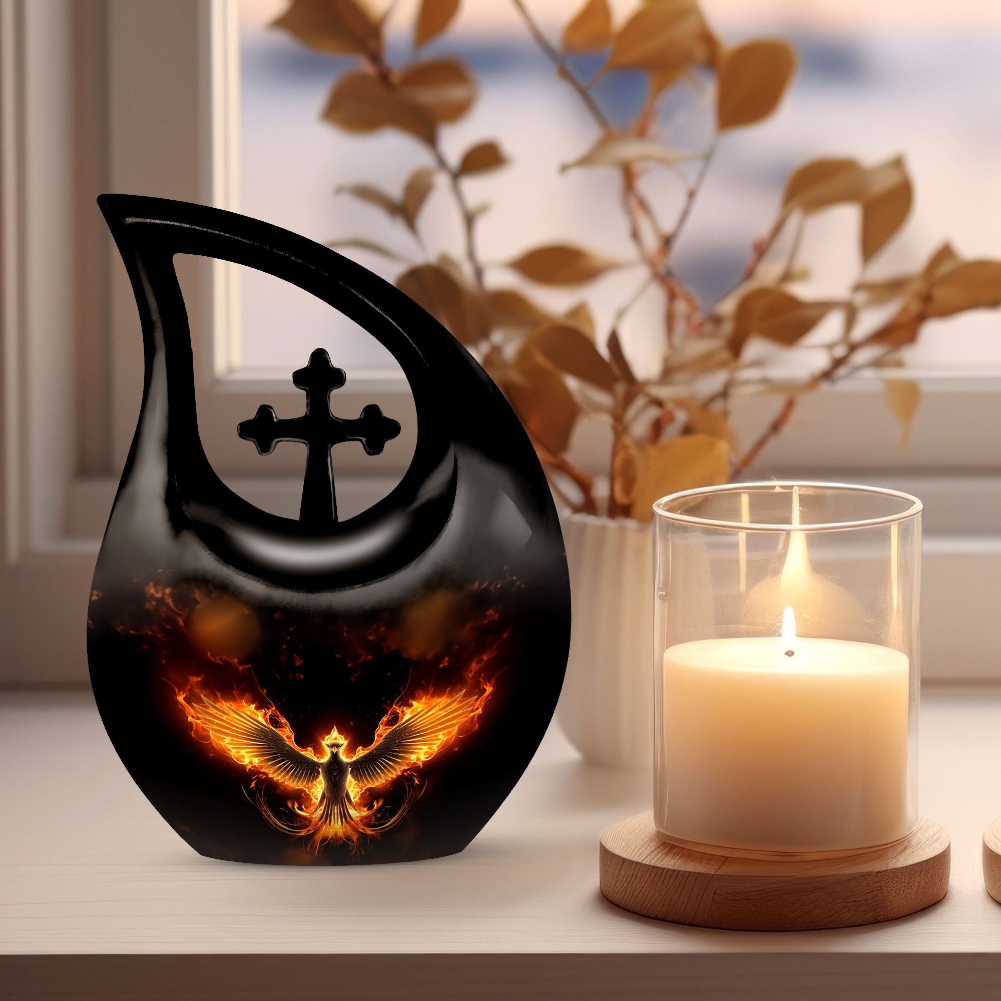 Celebrate everlasting love and strength with this Black Teardrop Funeral Urn, beautifully adorned with a fiery phoenix — a timeless emblem of renewal and the unbreakable bond between hearts. Designed with compassion and grace, this piece offers a dignified resting place for loved ones, making it a meaningful choice among cremation urns for human and cremation urns for adults seeking both beauty and purpose.