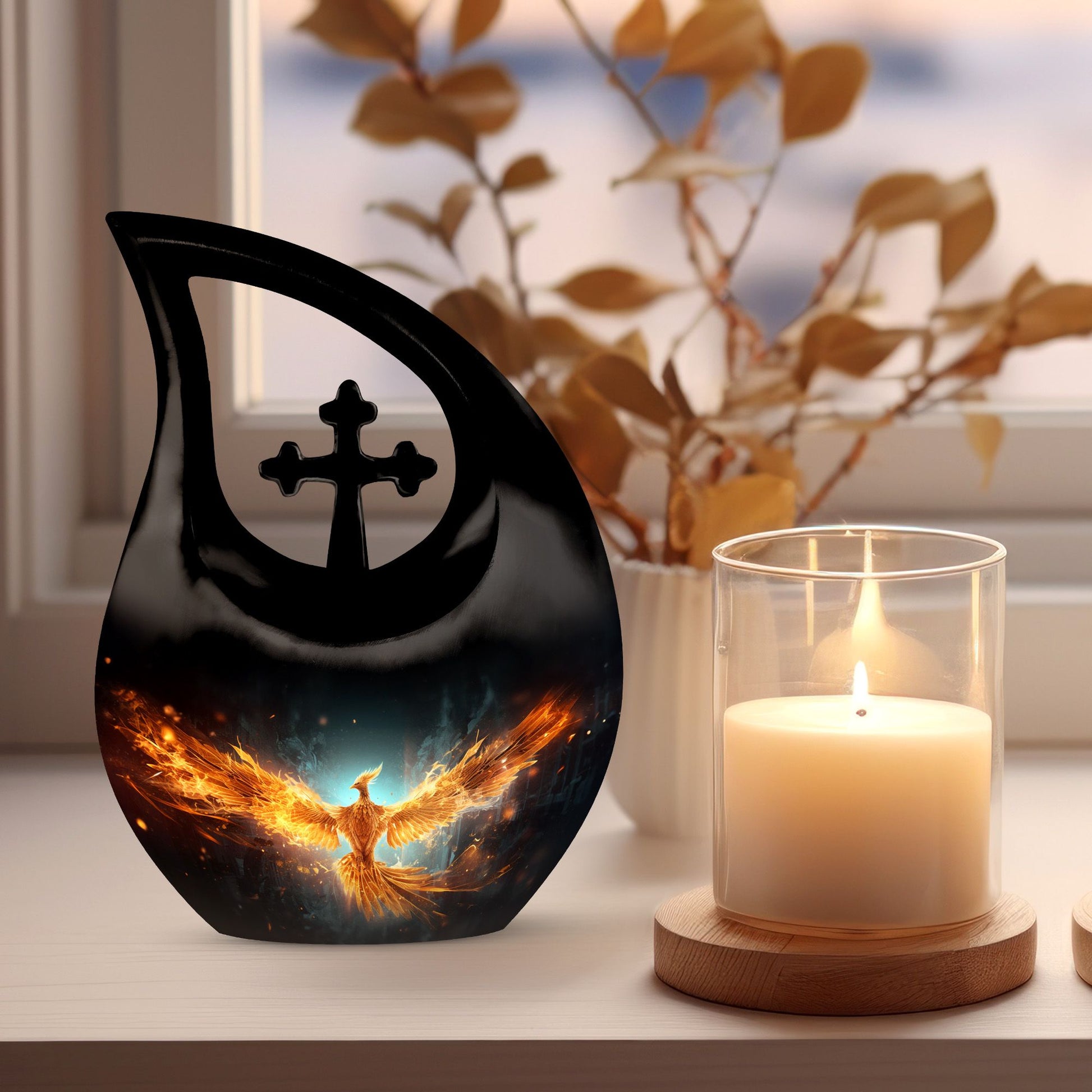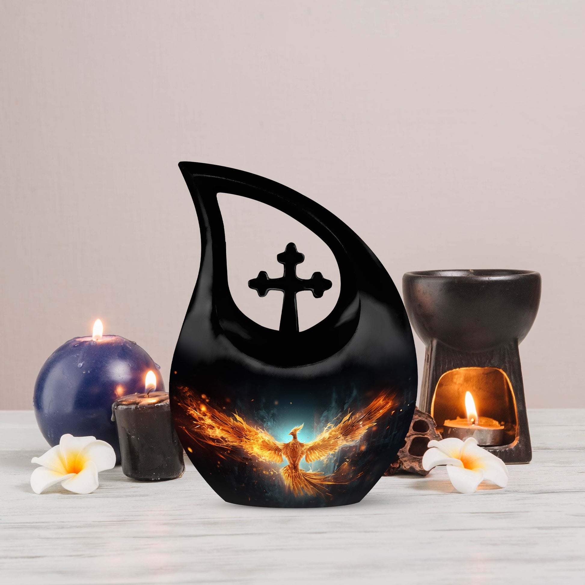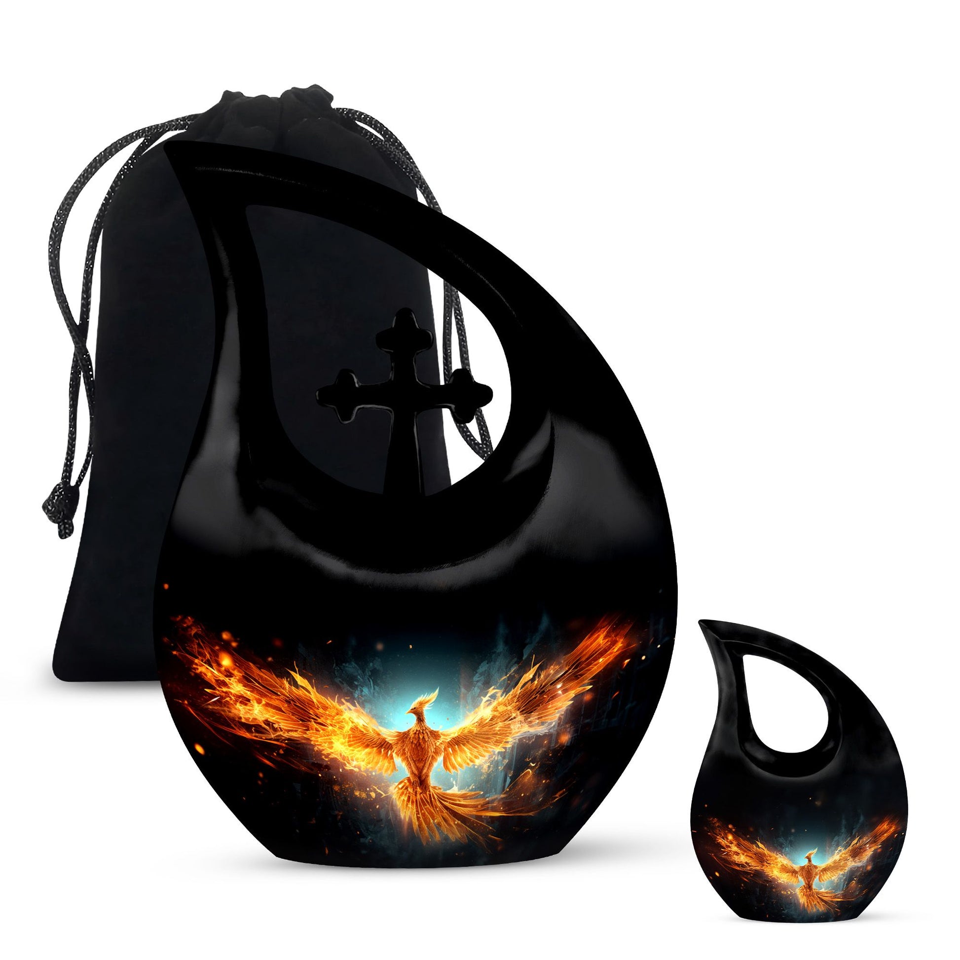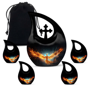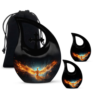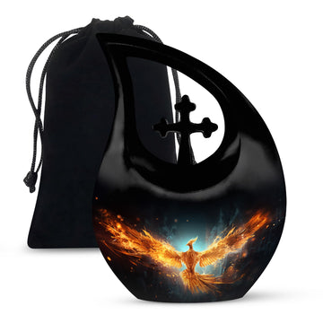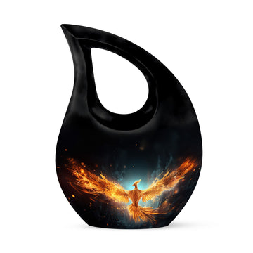 Celebrate the radiant spirit of your loved one with this Black Teardrop Cremation Urn, beautifully enhanced with a bright golden phoenix — a timeless symbol of rebirth, strength, and everlasting love. Crafted with compassion and artistry, this urn offers a dignified tribute, making it a meaningful choice among cremation urns for human ashes adult small and cremation urns for human ashes adult black.