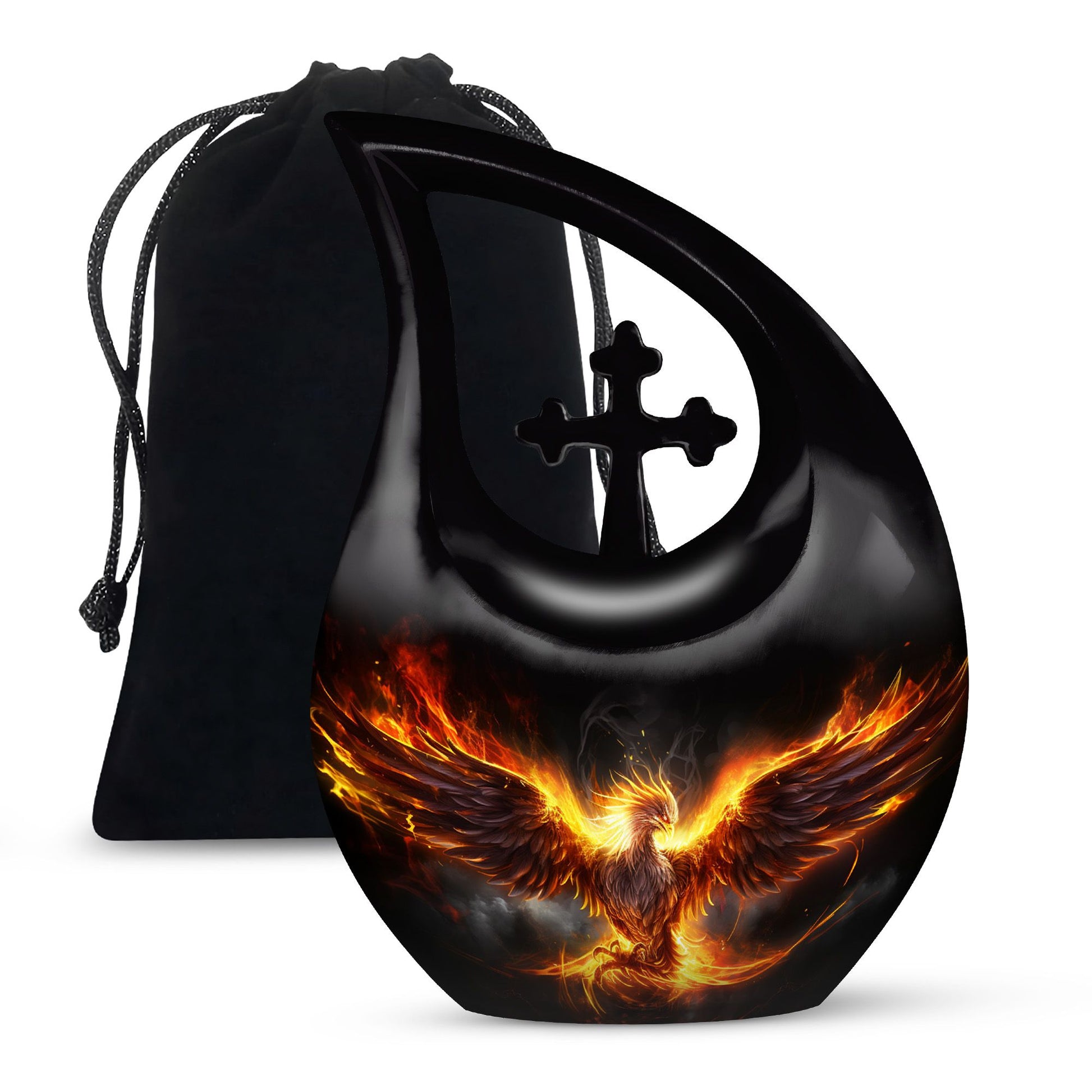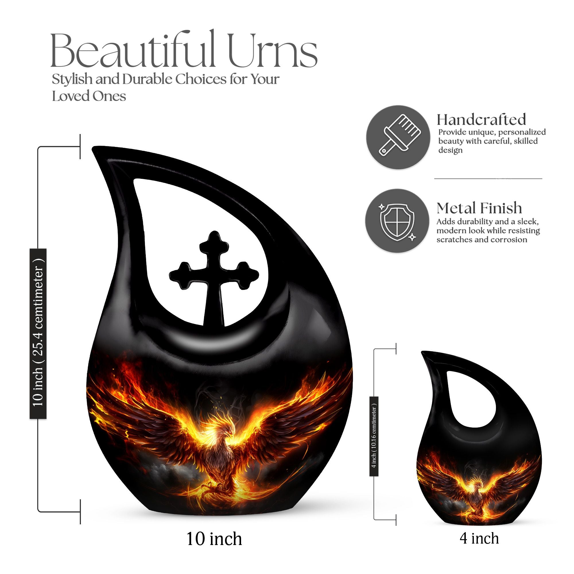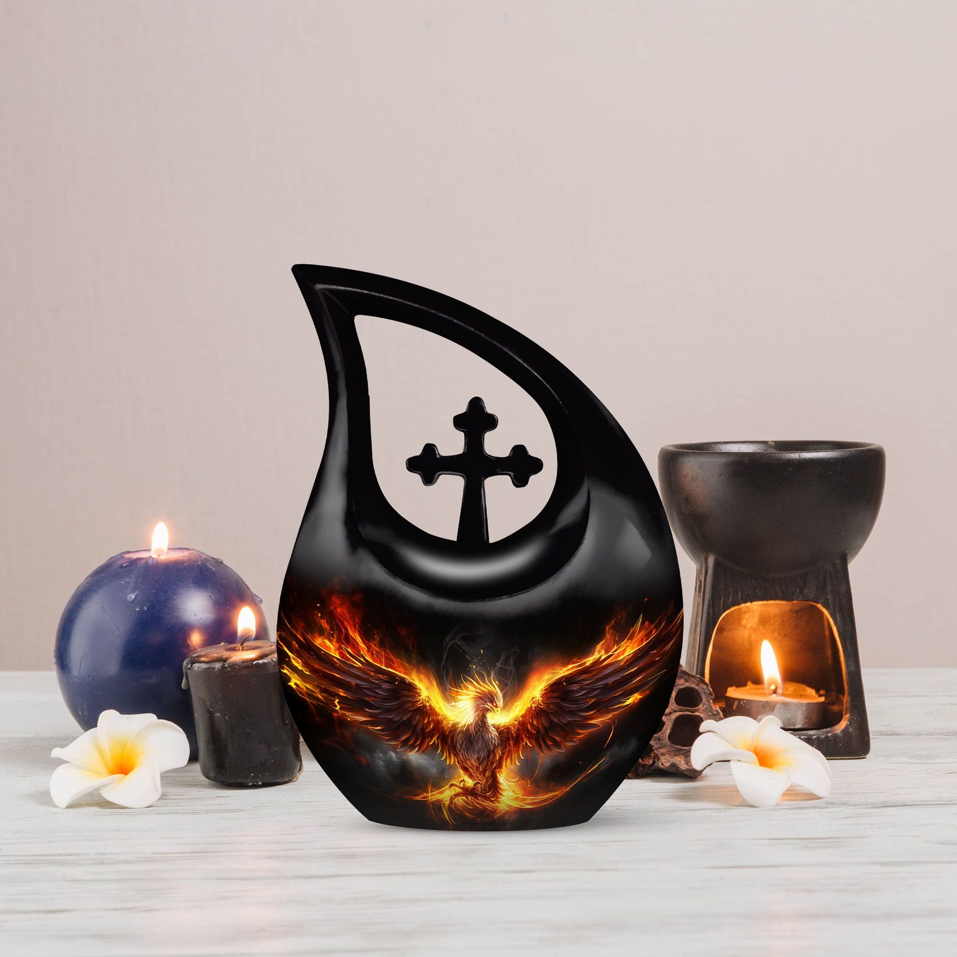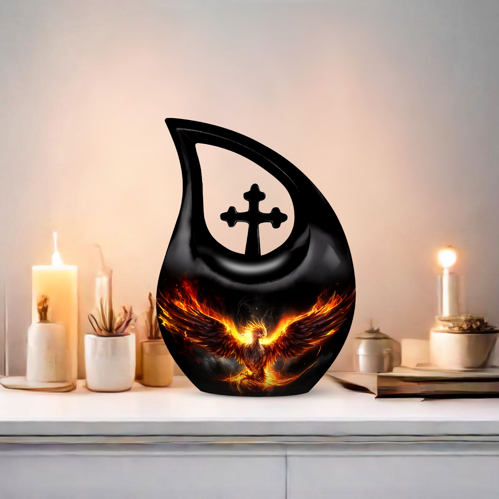 Honor the enduring spirit of your loved one with this Phoenix Burial Urn, a powerful symbol of rebirth and eternal love. Featuring a radiant flaming phoenix, this piece serves as a heartfelt tribute for those seeking large cremation urns for human ashes that combine beauty, strength, and significance. Perfect as a memorial for Mom or Dad, this urn offers a lasting reminder that love rises beyond loss.