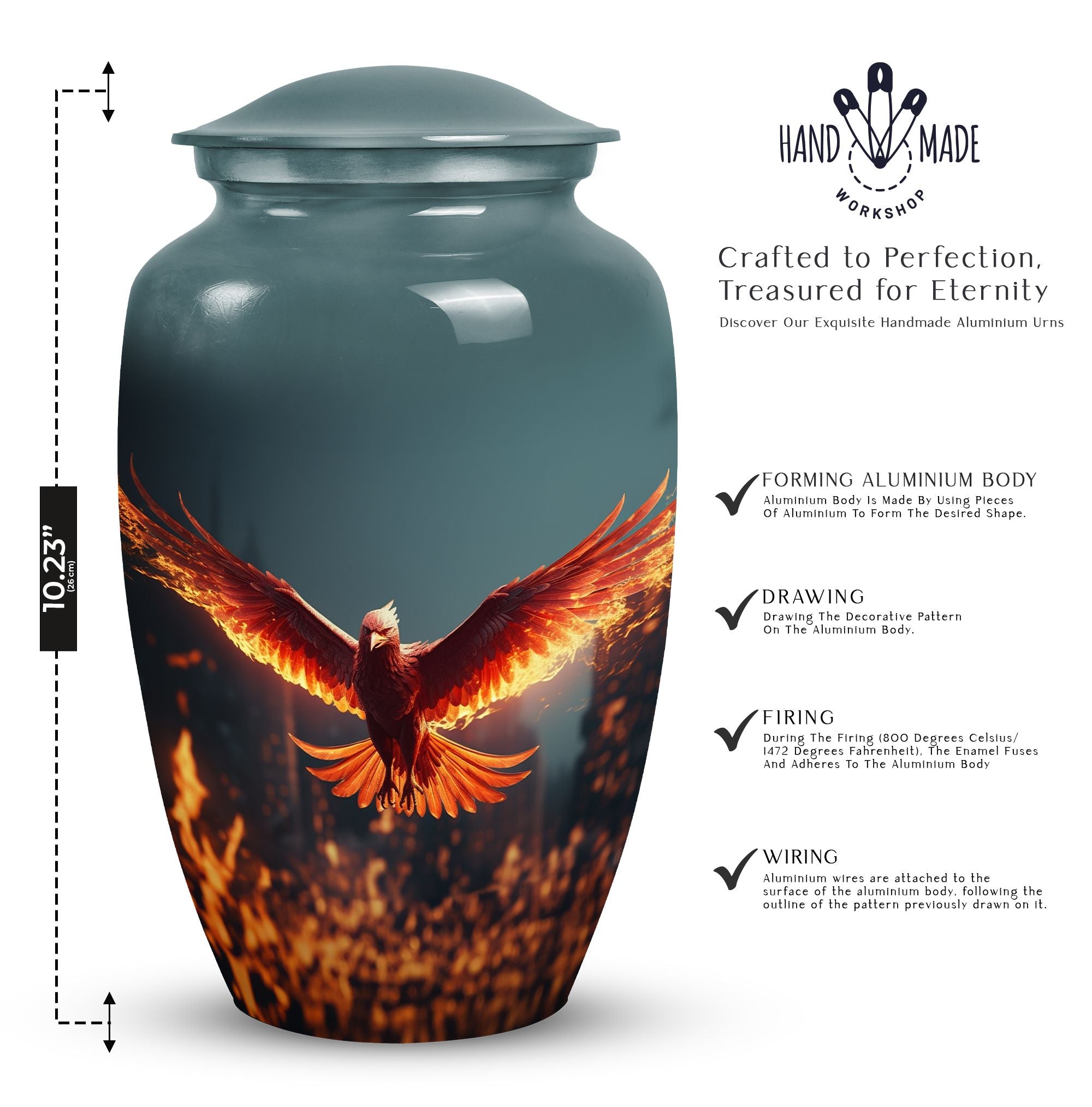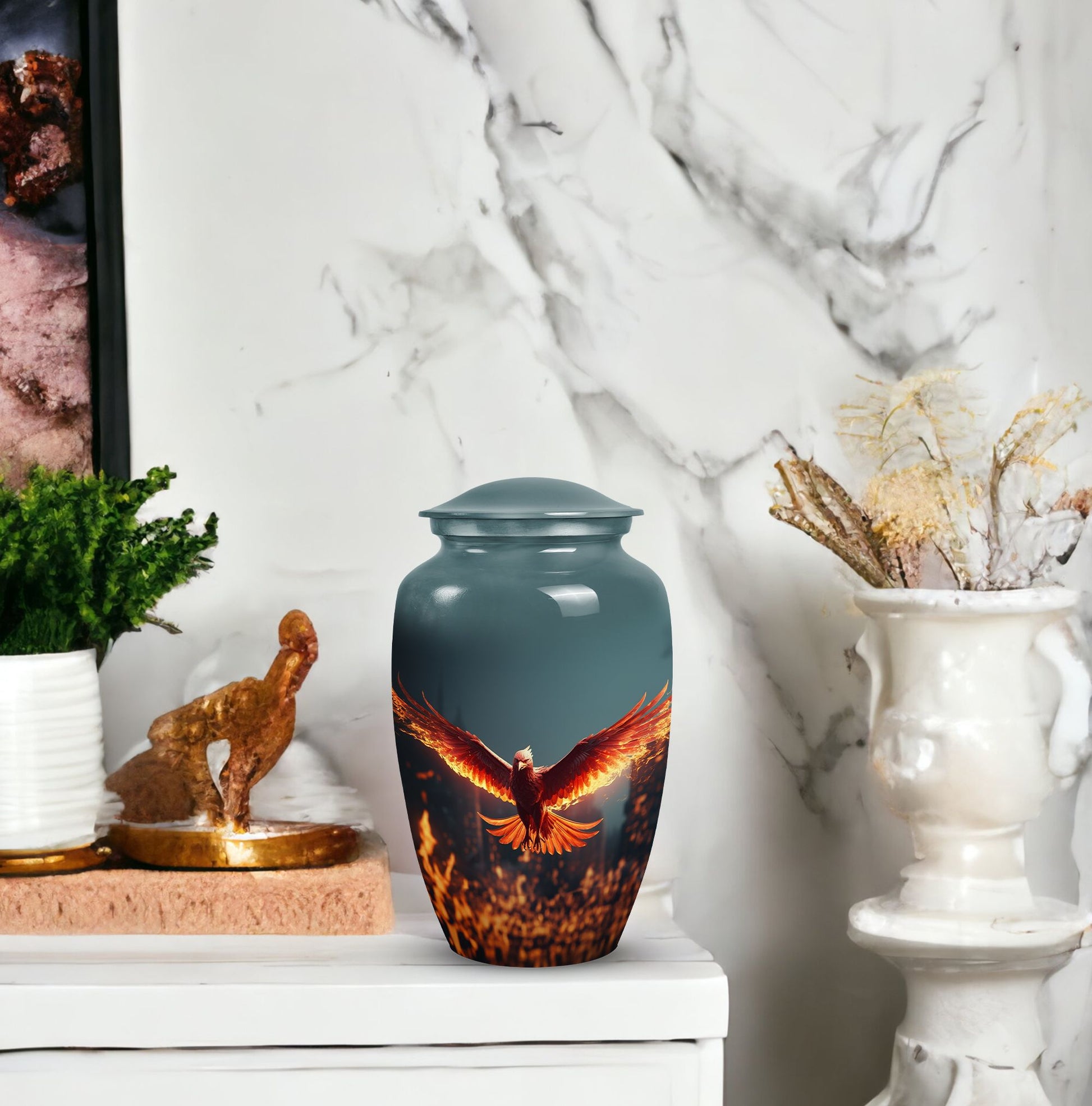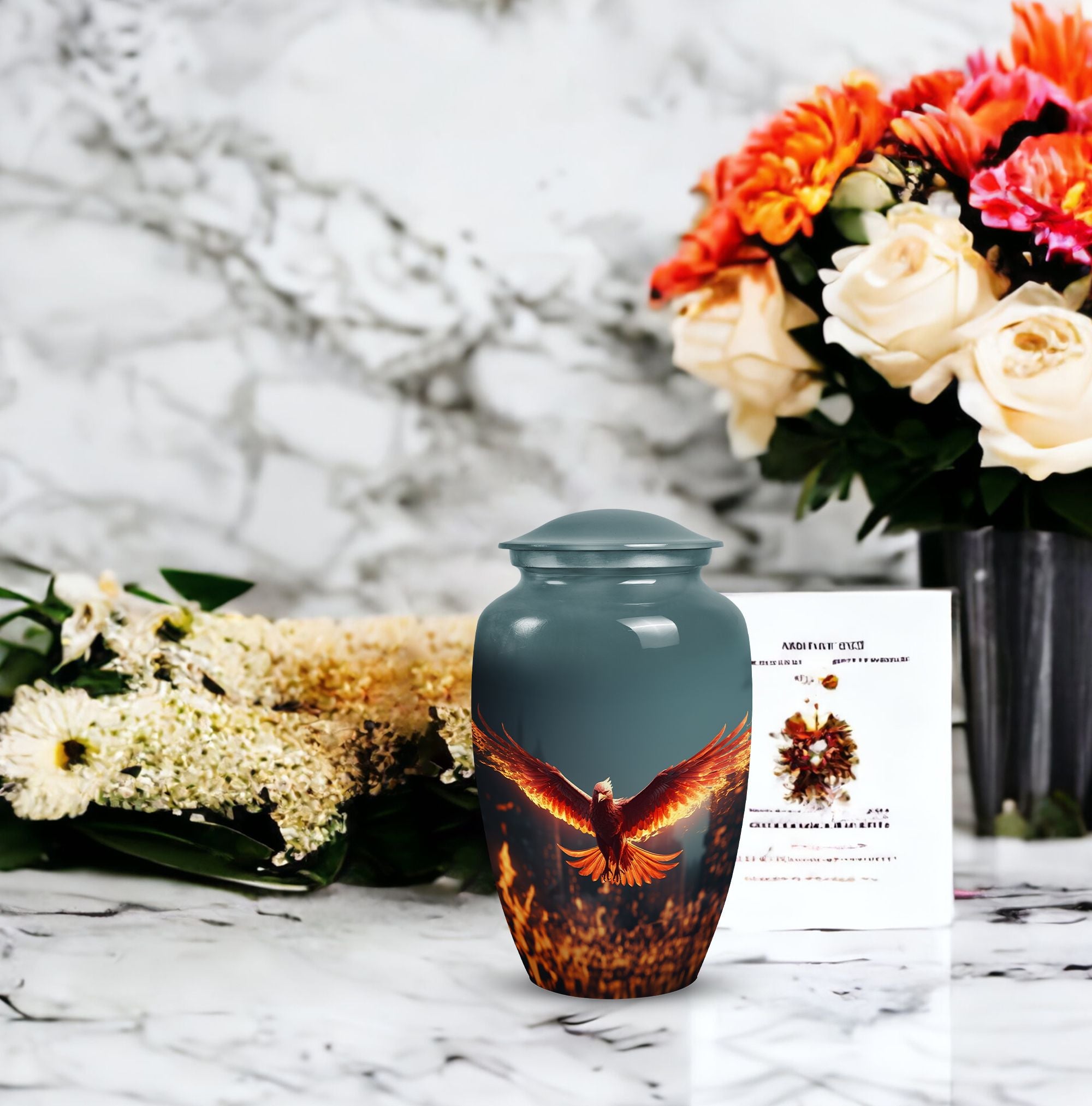 Honor your loved ones with our unique Phoenix Urn, a welcoming resting place designed with respect and dignity in mind. This laborsome artifact is meticulously crafted for human remains, providing a heartfelt homage to the departed. As a superior example of metal urns for adult ashes, the stature of these urns radiates a sense of resilience, symbolizing the undying spirit of our loved ones. Standing the test of time, these urns become adored heirlooms, preserving cherished memories within. Uniquely suited for adult ashes, these urns melt seamlessly into any space, bestowing a soothing presence amidst the hustle of daily life. Our Phoenix urinal urns incorporate a blend of tradition with a modern twist and are the perfect funerary urn fitting for a heartfelt farewell. They stand out in the crowd of common funeral urns for adult ashes, offering a tangible keepsake to immortalize your loved one's memory. These urns bring a sense of closure, enabling you to keep your lost ones close, reflecting on the bond that death couldn't shatter. Revere the circle of life with our Phoenix urn, uniquely designed for that ceremonious keepsake.
