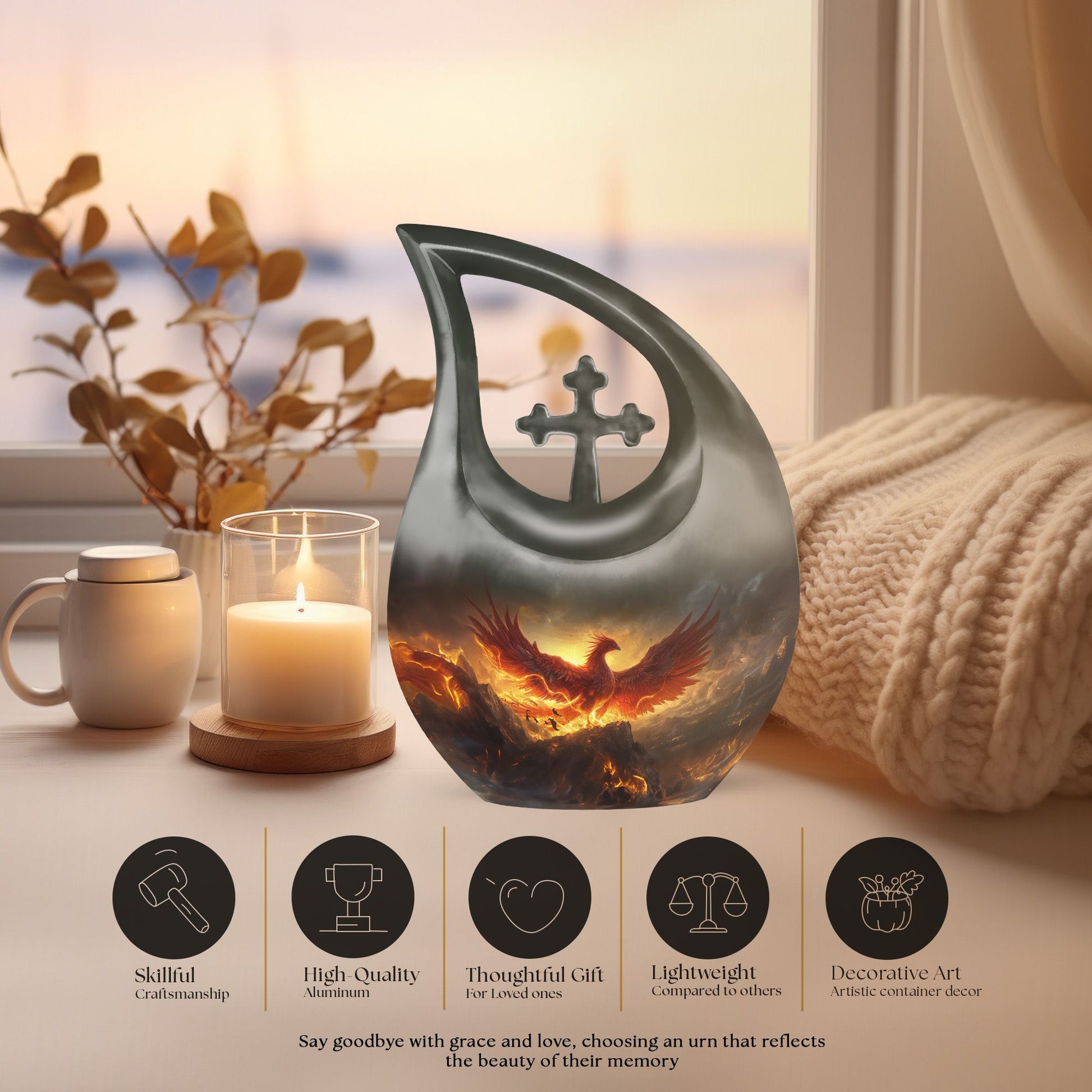 This Phoenix Memorial Urn offers a powerful and uplifting way to honor a loved one, symbolizing renewal, strength, and eternal love. Thoughtfully crafted, it is ideal for families seeking adult urns for human ashes for men and women, providing comfort and beauty in times of remembrance.