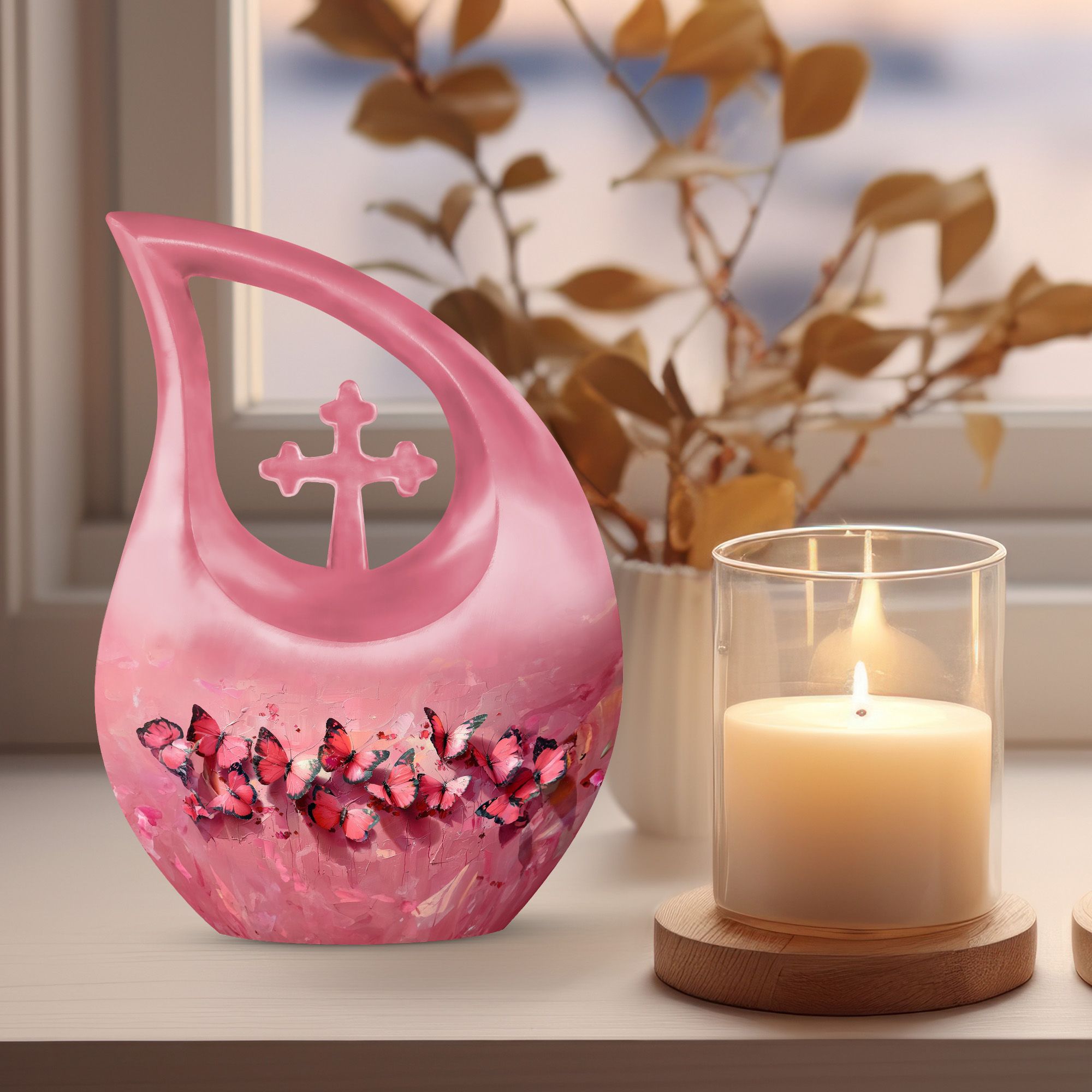 This pink butterfly memorial urn is more than a resting place—it is a symbol of transformation, love, and cherished memories. Its artistic design makes it a timeless tribute to a life well lived.