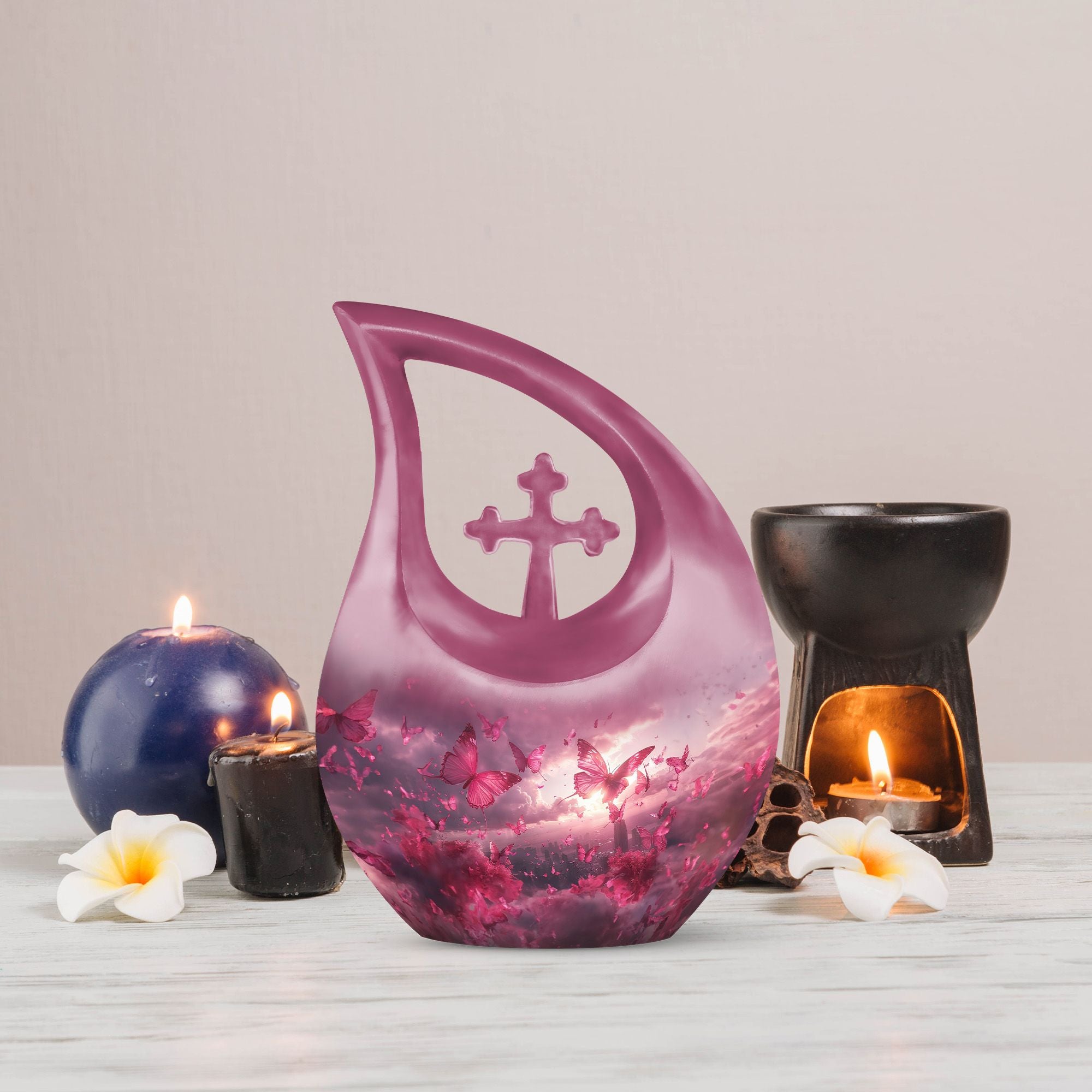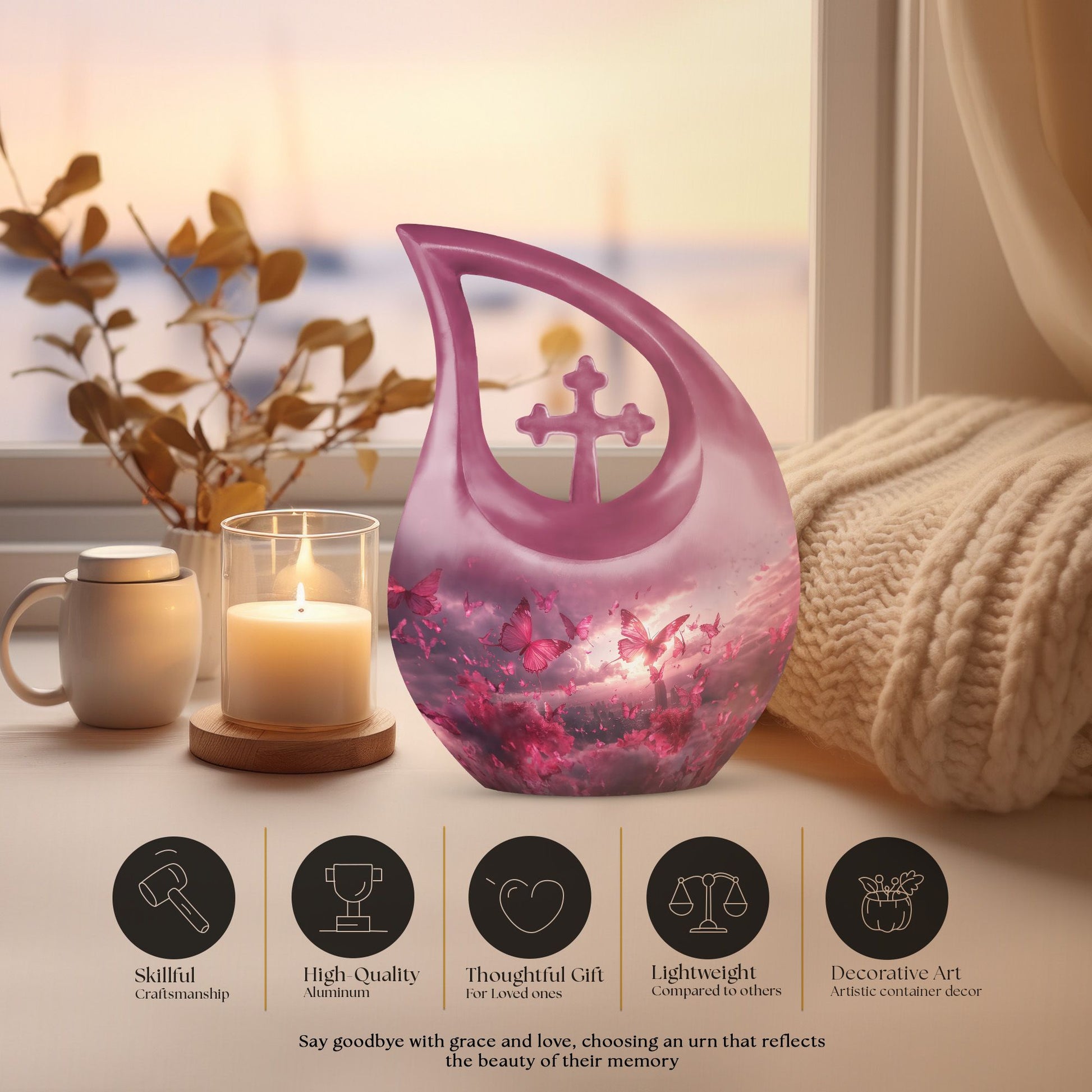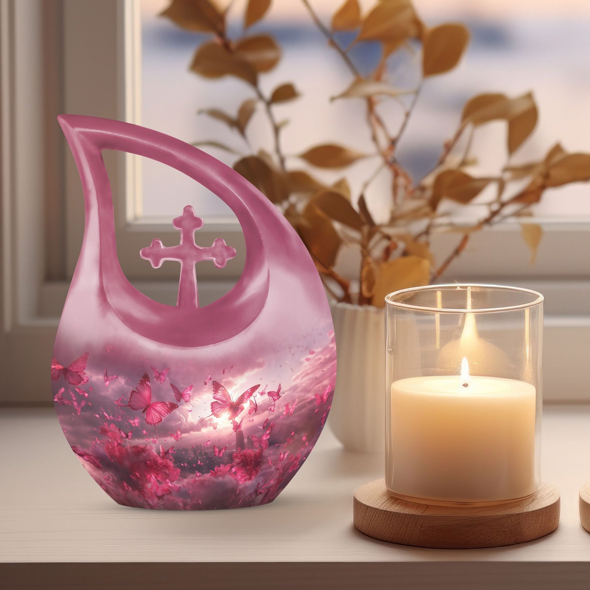 The Pink Butterfly Urn beautifully balances compassion, artistry, and symbolism — a perfect choice for those who wish to celebrate a woman whose life was filled with grace and light.