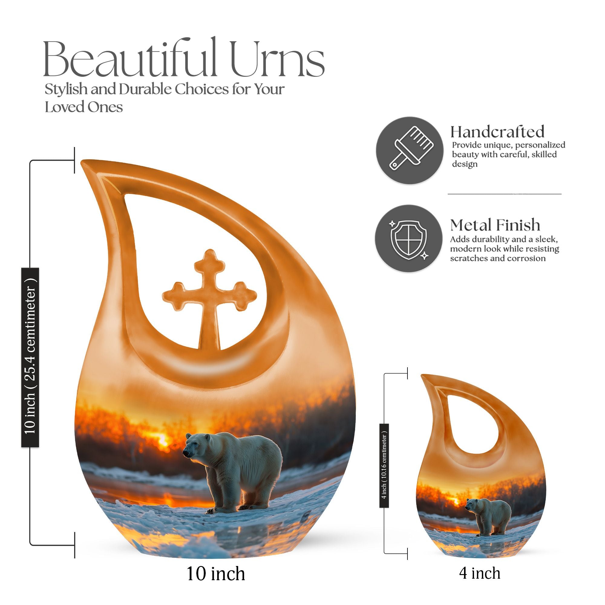 Crafted from durable aluminium, this 10-inch urn features a striking polar bear design representing strength, purity, and enduring love. Its polished finish and quality construction make it ideal for cremation urn adult male needs as well as an elegant urn female adult choice. Whether you are honoring a father, mother, husband, or wife, this urn provides secure and lasting protection for their ashes. Families seeking urn female ashes or a dependable urn human ash adult female will appreciate its beauty and durability.