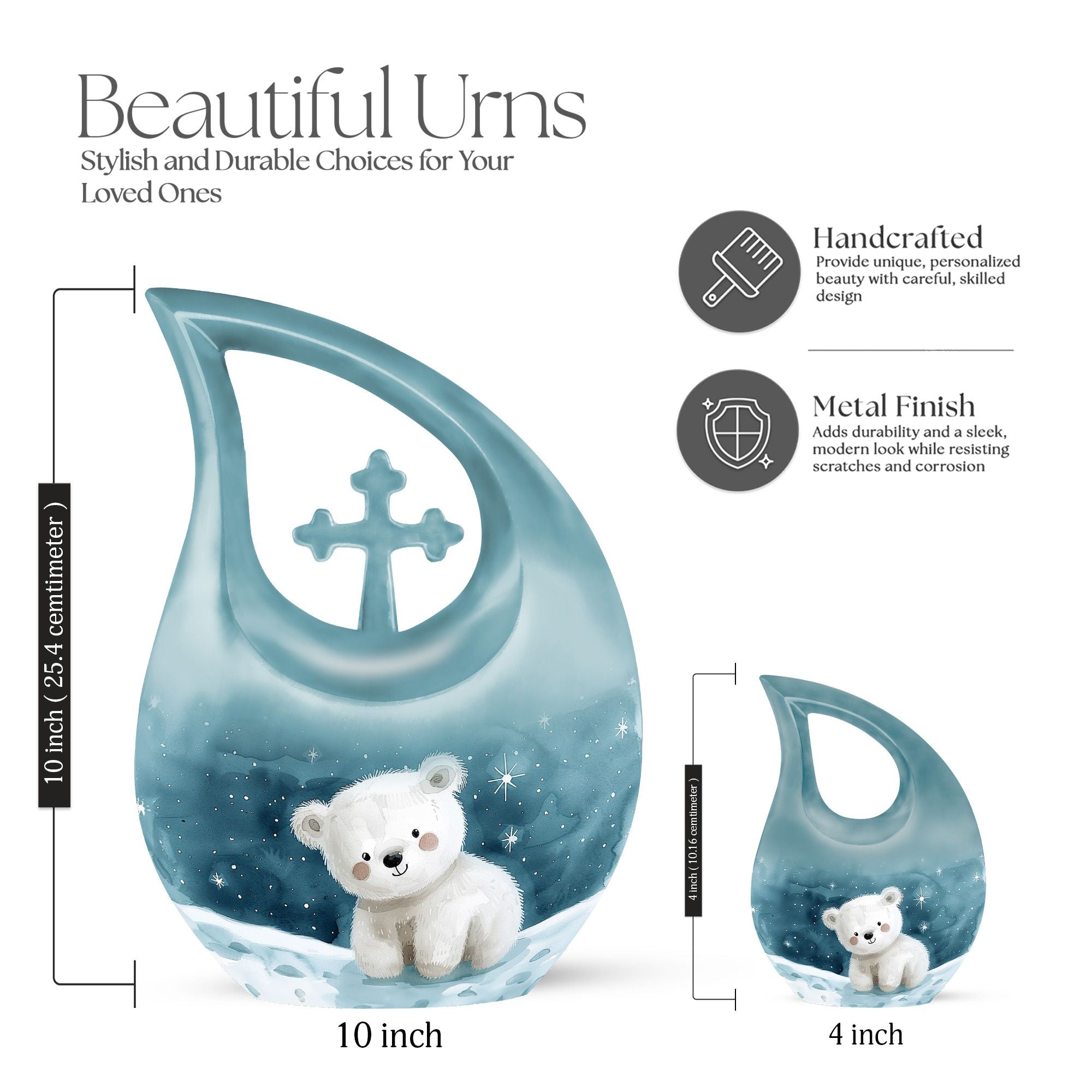 Crafted from durable aluminum, this urn features a calming blue finish paired with a beautifully detailed polar bear motif. Its secure screw-top lid ensures ashes remain safe, making it an excellent choice for small urns for ashes adult male, urns for adult female small, or a reliable mini urn for ashes adult male. Whether honoring Mom or Dad, it serves with dignity and care. Families seeking urns for adult male ashes, small urns for human ashes adult male, or a touching urn for ashes adult male dad will appreciate its thoughtful craftsmanship and symbolic beauty.