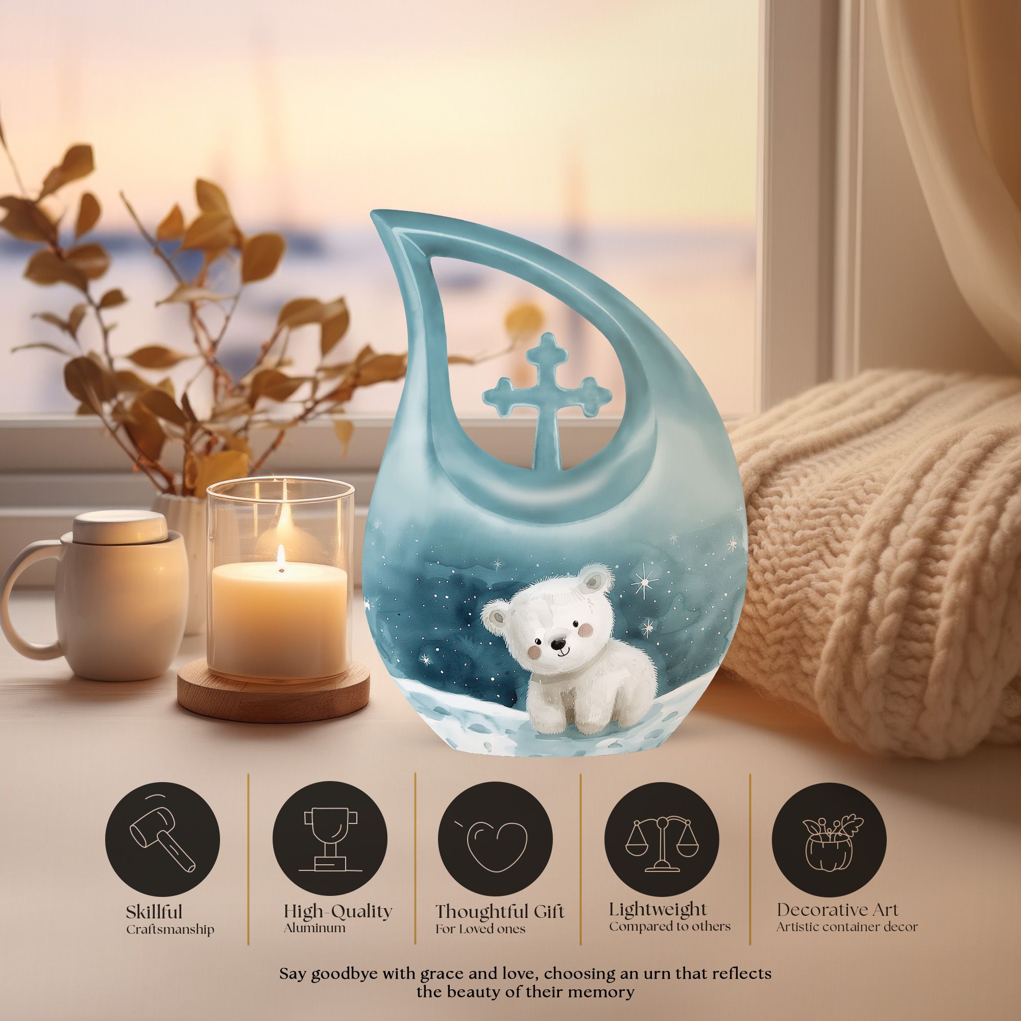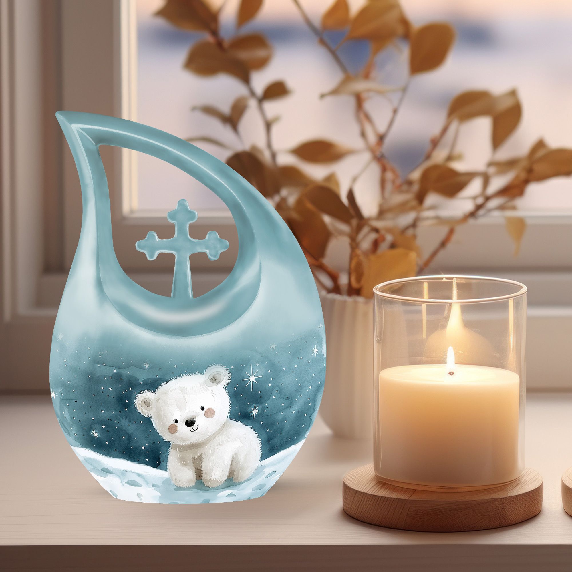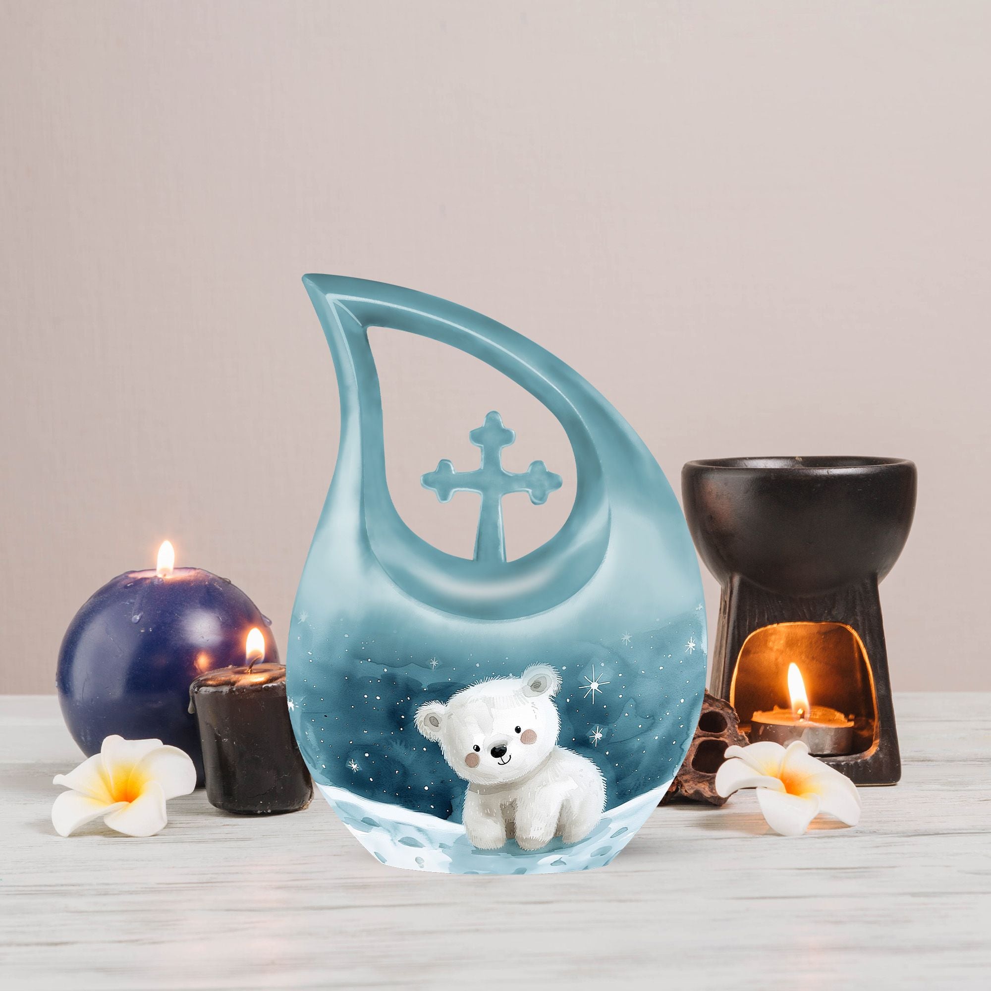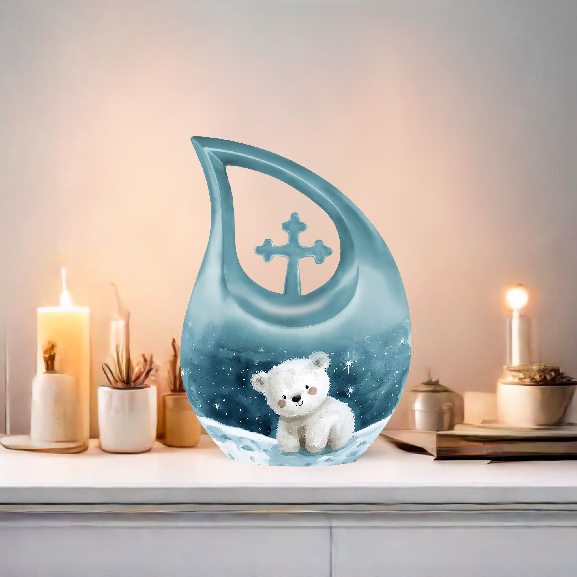 Honor cherished memories with this Polar Bear Memorial Urn, a heartfelt tribute designed to bring comfort and serenity. Ideal for families needing urns for human ashes adult male burial, a gentle option for urns for human ashes adult female mom, or a meaningful piece for urns for adult male dad, this small blue urn symbolizes protection, strength, and enduring love.