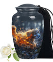 This beautifully handcrafted urn is designed to honor the memory of your cherished Poodle. The dynamic and colorful design captures the playful and lively spirit of your pet. The artistic elements and vibrant tones evoke feelings of warmth and joy, making this urn a perfect tribute to your furry companion.