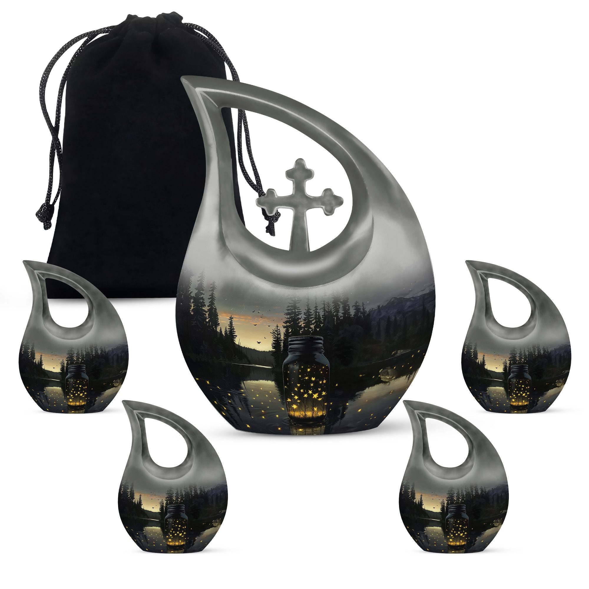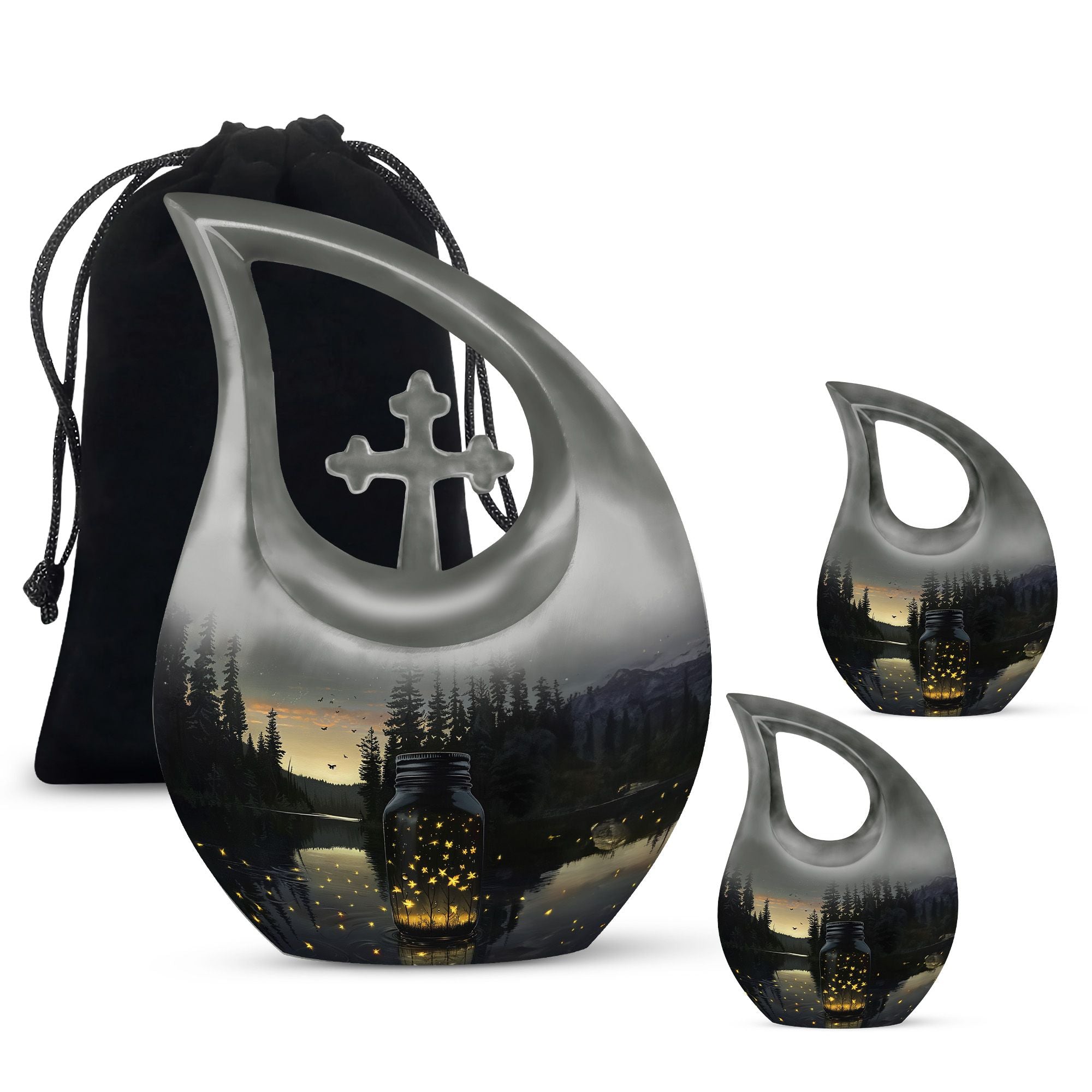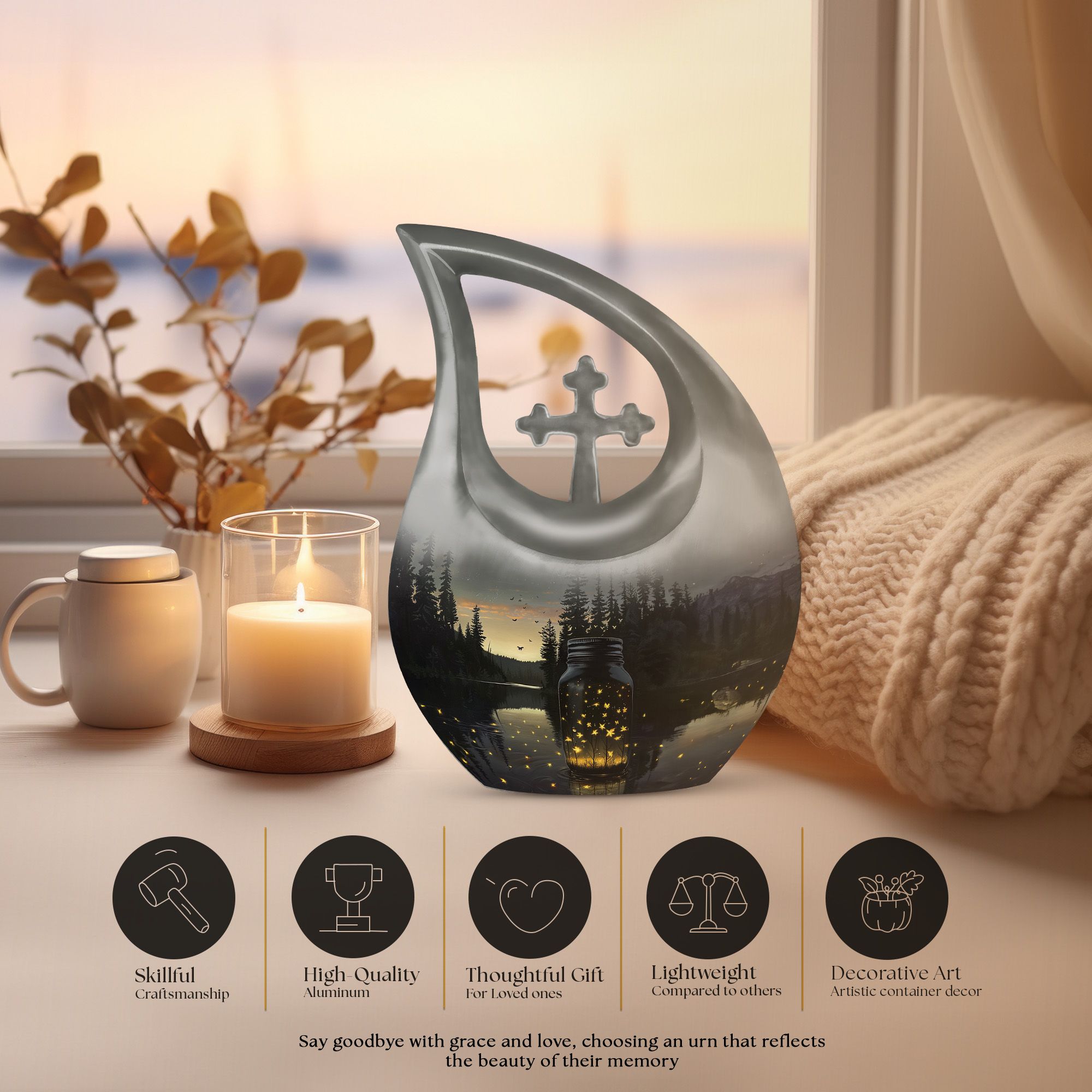Crafted in a unique flame-teardrop shape with a cross cutout, this Whispering Lights Large Adult Urn For Human Ashes is ideal for those who cherished nature, twilight walks, or the magic of quiet moments. The fireflies symbolize the light we carry, even in darkness—making this urn a powerful tribute for either a Large Urn For Mom, dad, spouse, or friend.
