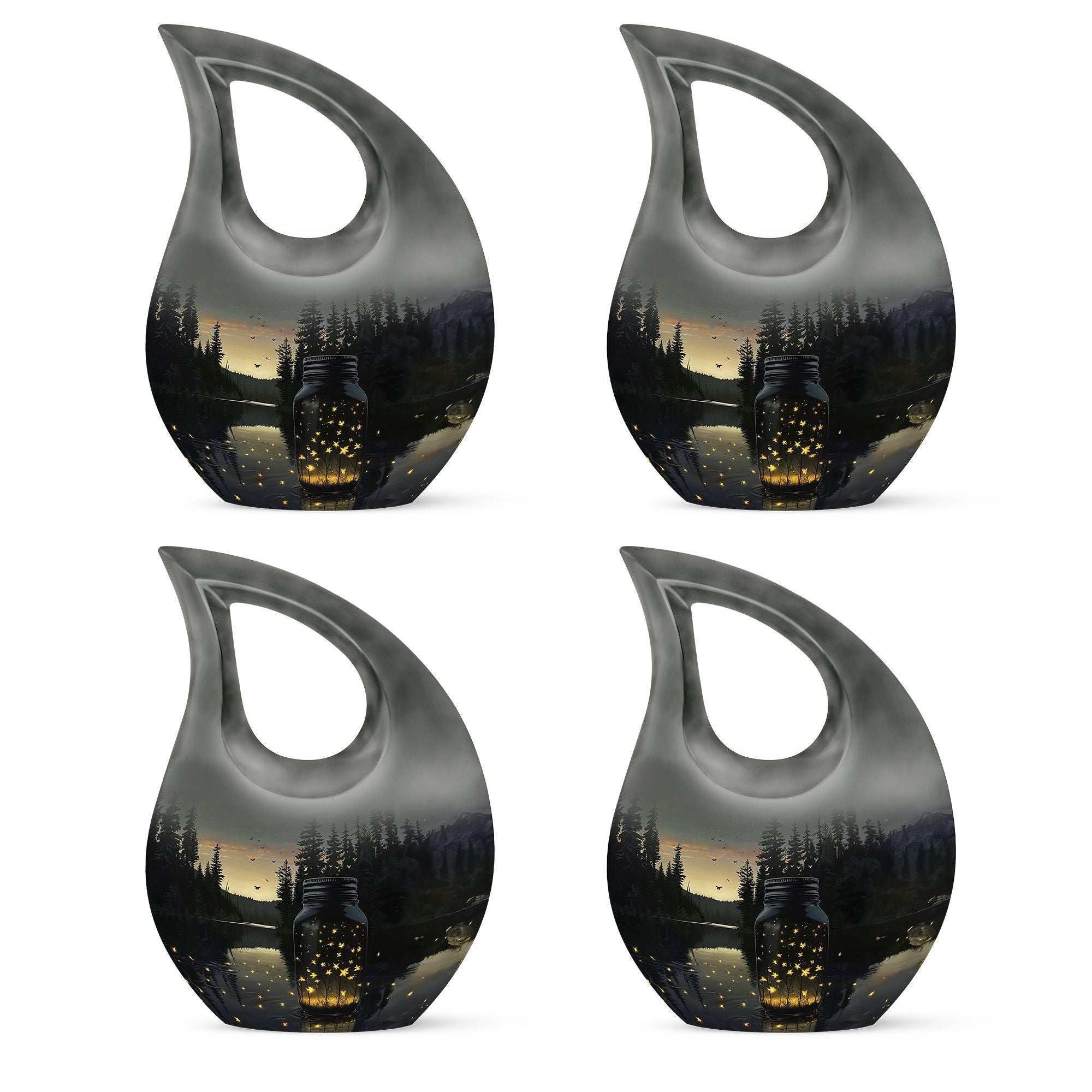 Let their light shine on with the Whispering Lights Memorial Jar Urn, a stunning and symbolic Large Cremation Urn designed to celebrate the calm, peaceful essence of your loved one. With an enchanting forest landscape, soft sunset sky, and a glowing jar filled with fireflies, this urn captures the gentle beauty of memory and the eternal nature of the soul.