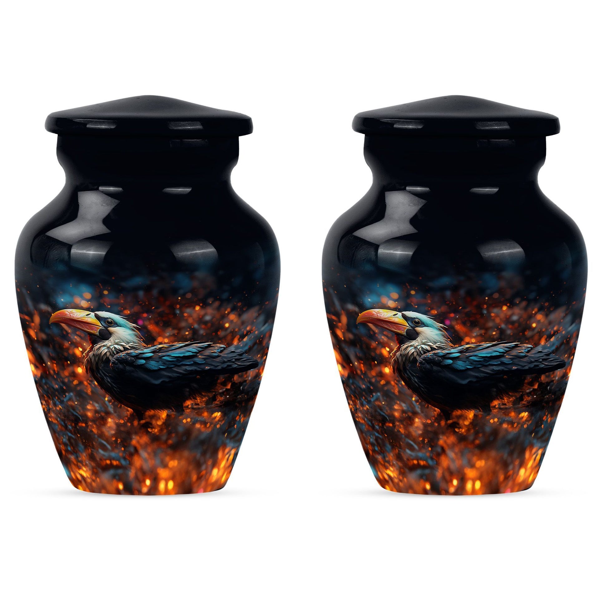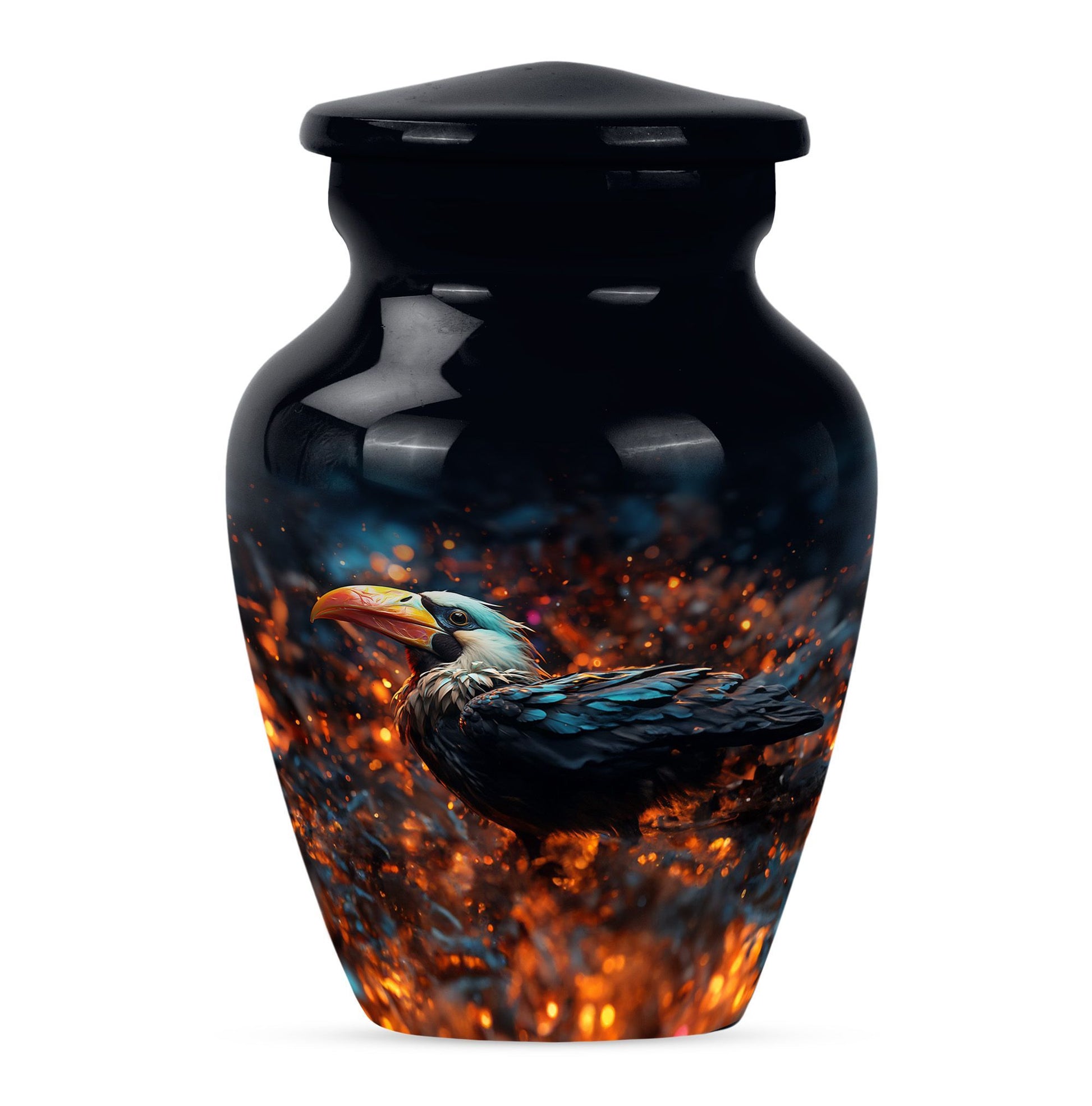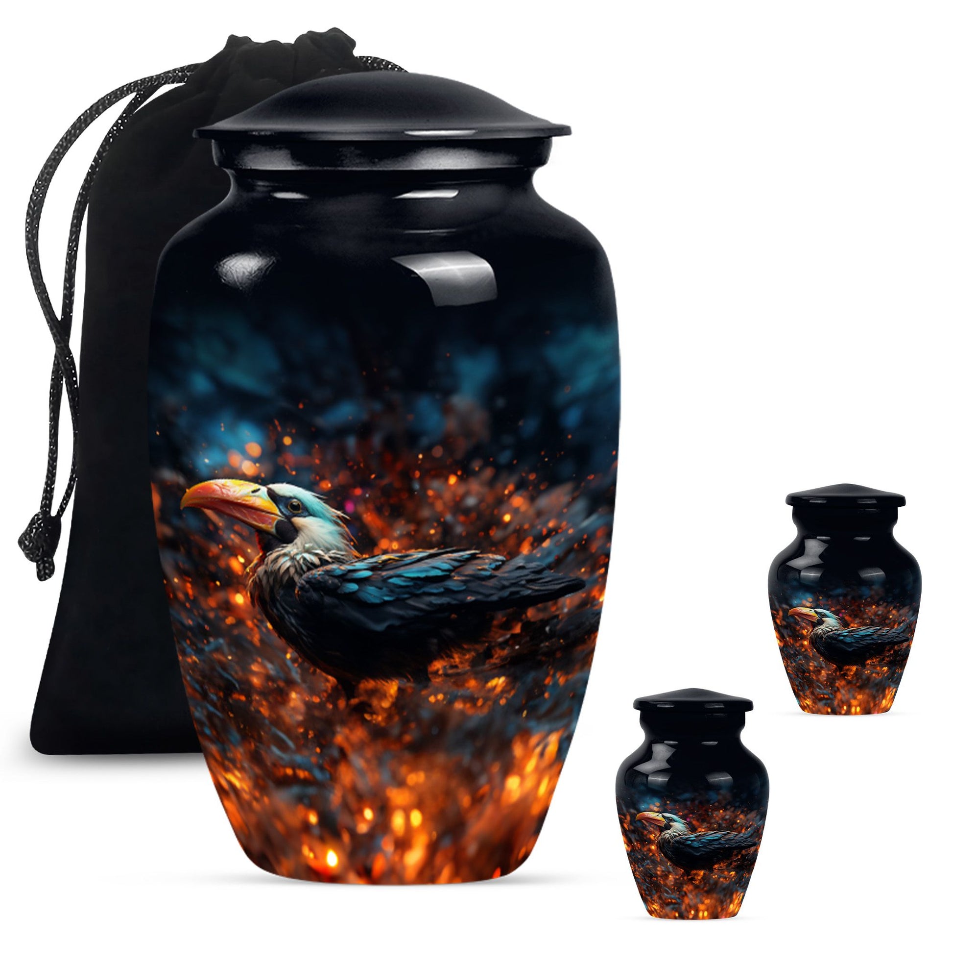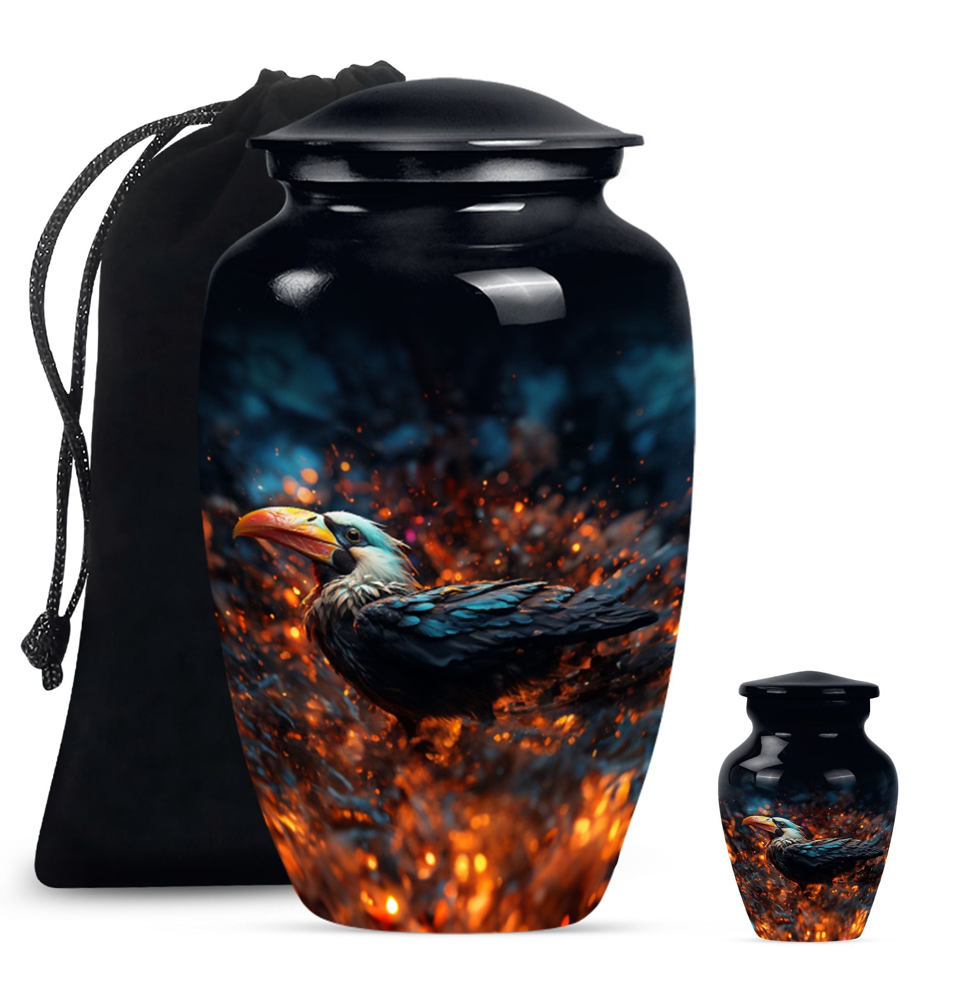 Introducing our remarkable Puffin Bird Urn, an essential addition for the dignified ceremonial requirements. Serving as an elegant container for burial ashes, this large urn is designed with an abstract theme that conveys the abstractness of departure and memories. It is made of premium aluminium, boasting a weight of 3.3 pounds and a height of 10 inches. This urn comfortably holds up to 200 cubic inches, making it suitable for both adult male and female ashes. Personalize this eternal memory keeper by engraving names on it, adding a special, individual touch to this memento. Padding your love and memories, it comes with a velvet pouch for containing the ashes securely. Keywords including 'cremation urns for adult ashes men', 'urn human ash ash adult male' and 'cremation urn for adult female ashes', help you find this product easily. A perfect embodiment of love and memory, our Puffin Bird Urn gracefully represents the indelible presence of your loved ones.
