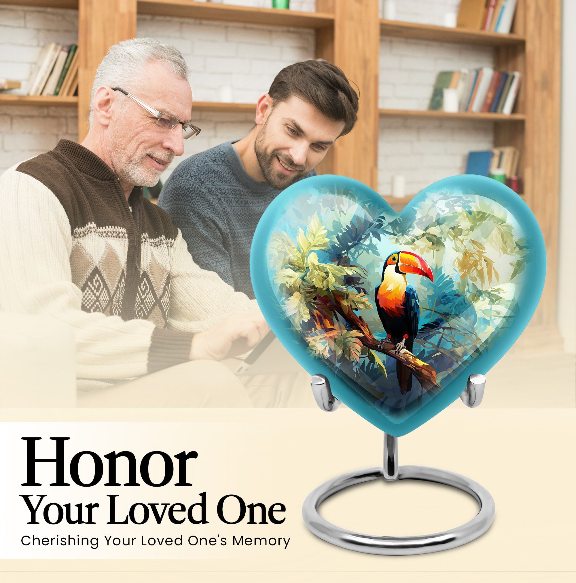 Introducing the exquisite Puffin Bird Urn, a unique cremation urn that serves as a heartwarming tribute to beloved seniors. Specifically designed with an abstract theme, it reflects heartfelt compassion for the departed souls, symbolizing eternal love. Skillfully crafted from resilient aluminium, this large urn measures 10 inches in height, speaking volumes about its substantial capacity of 200 cubic inches. Its durable construction can effortlessly hold mom's ashes, weighing approximately 3.3 pounds, securely packed inside the plush velvet pouch included in the package. Unlike ordinary urns, this remarkable piece can be personalized with engraved names, giving it a touch of sentimentality. Ideal for funeral ceremonies or as a delicate remembrance centerpiece, the Puffin Bird Urn combines functional necessity with emotional comfort. For those in search of memorial adult urns or custom cremation urns, this unique piece is an excellent choice.