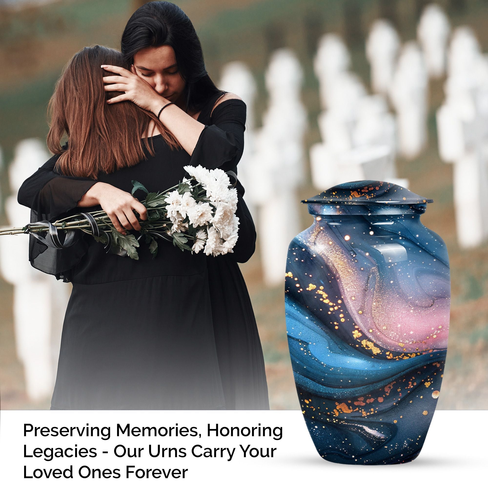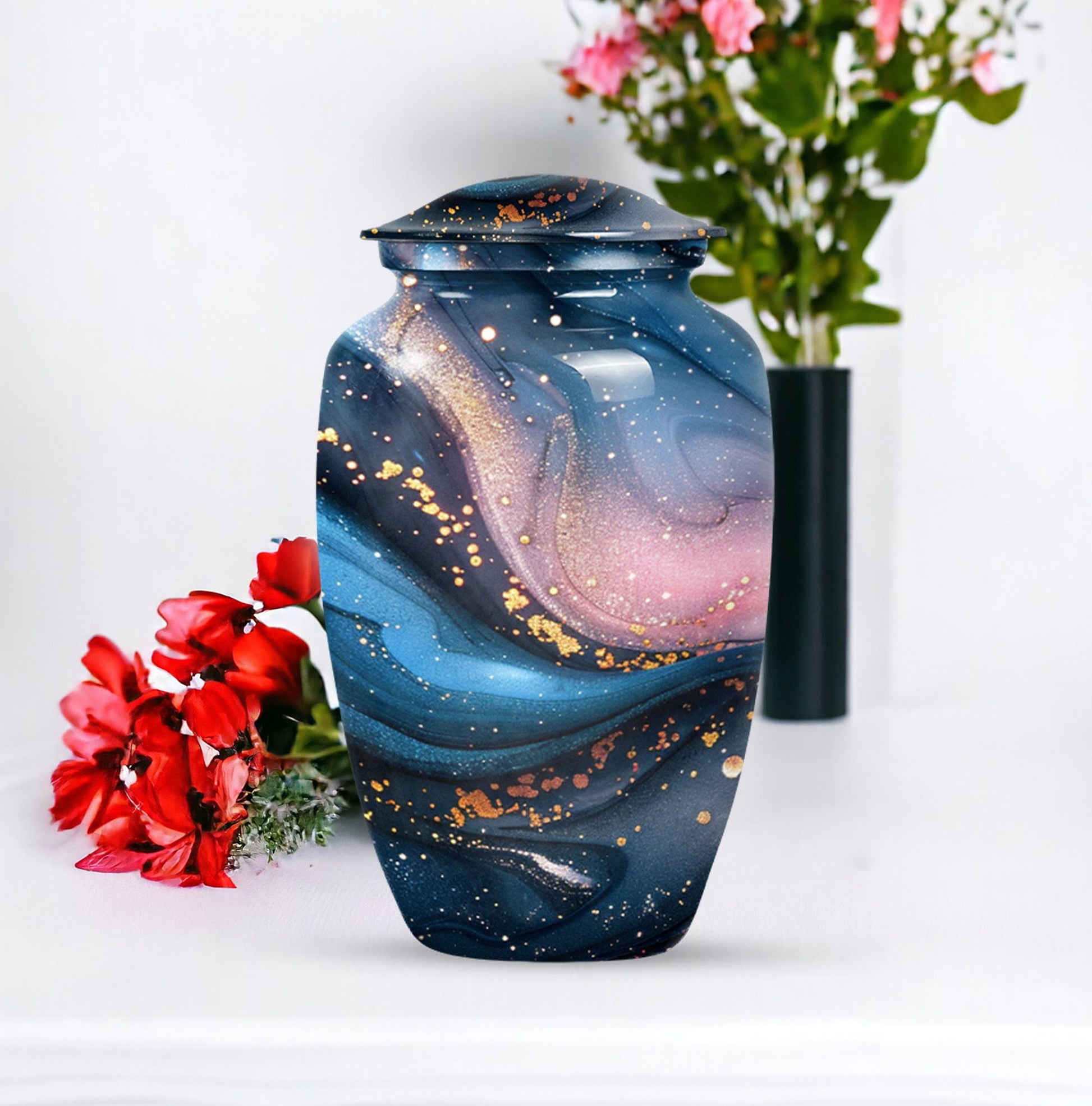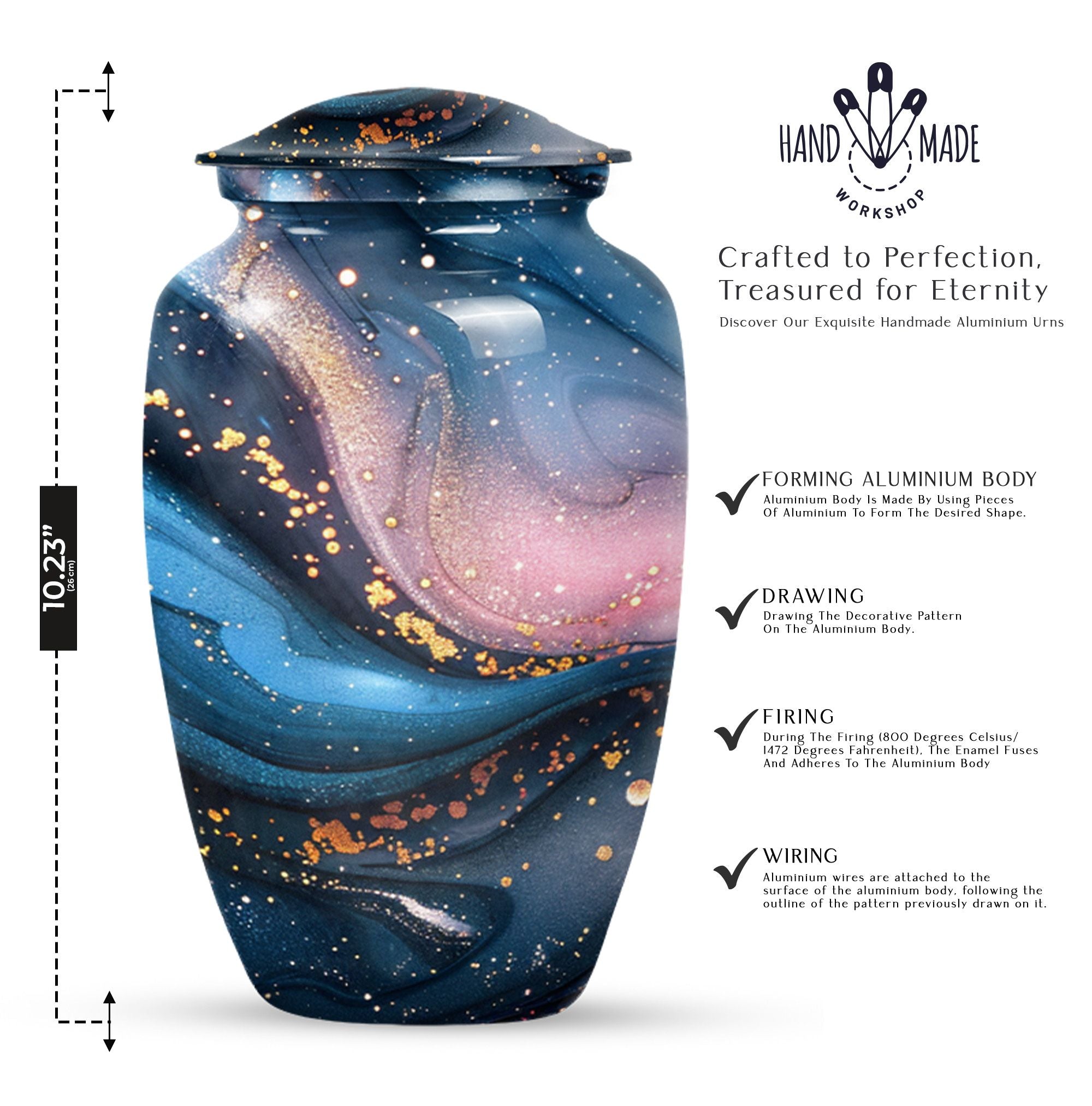 Preserve the precious memories of your departed loved ones with our exclusive Puffin Bird Urn, an ideal choice for memorial adult urn needs. Designed in an appealing 10-inch size and a weight of 3.3 pounds, this large urn is meticulously crafted from premium aluminium material, offering a sturdy and lasting memorial for your loved one. The urn's majestic Puffin Bird theme brings a touch of serenity and comfort, while the classic urn style reflects timeless elegance. This elegantly designed cremation urn features a capacity of 200 cubic inches, ensuring secure and compact containment of human ashes. For enhancing its sentimental value, it offers an option to personalize it with engraved names. The package is complemented with a velvet pouch ensuring respectful containment of the ashes. As human ash urns merge into common needs, this symbolic addition to funeral burial urns provides a touching tribute to the ones departed. Whether you're seeking for ashes urn or cremation containers for human ashes, this piece uniquely aligns with your needs, touching hearts and soul with its profound presence.