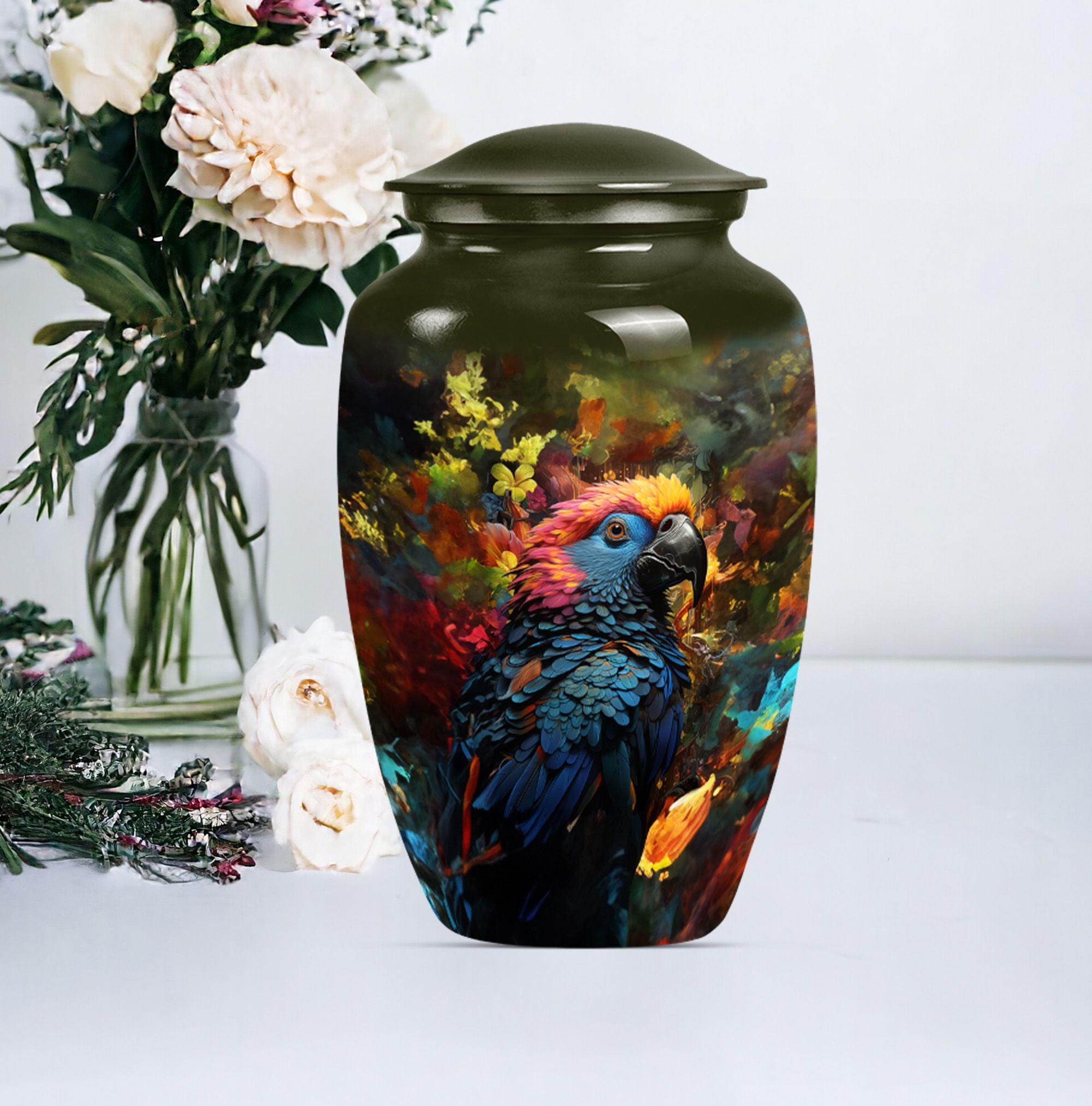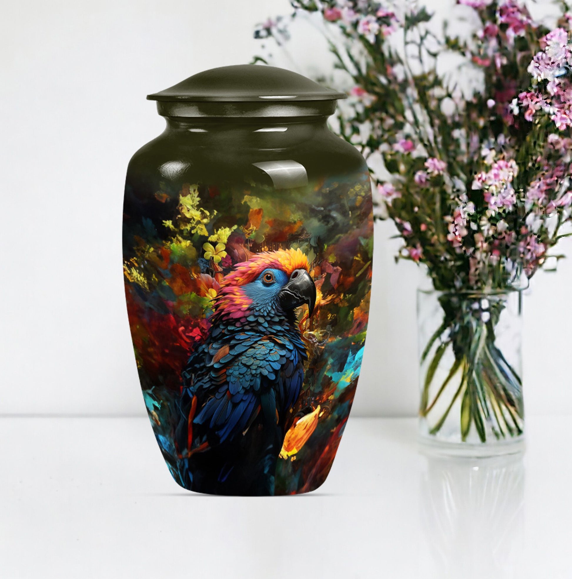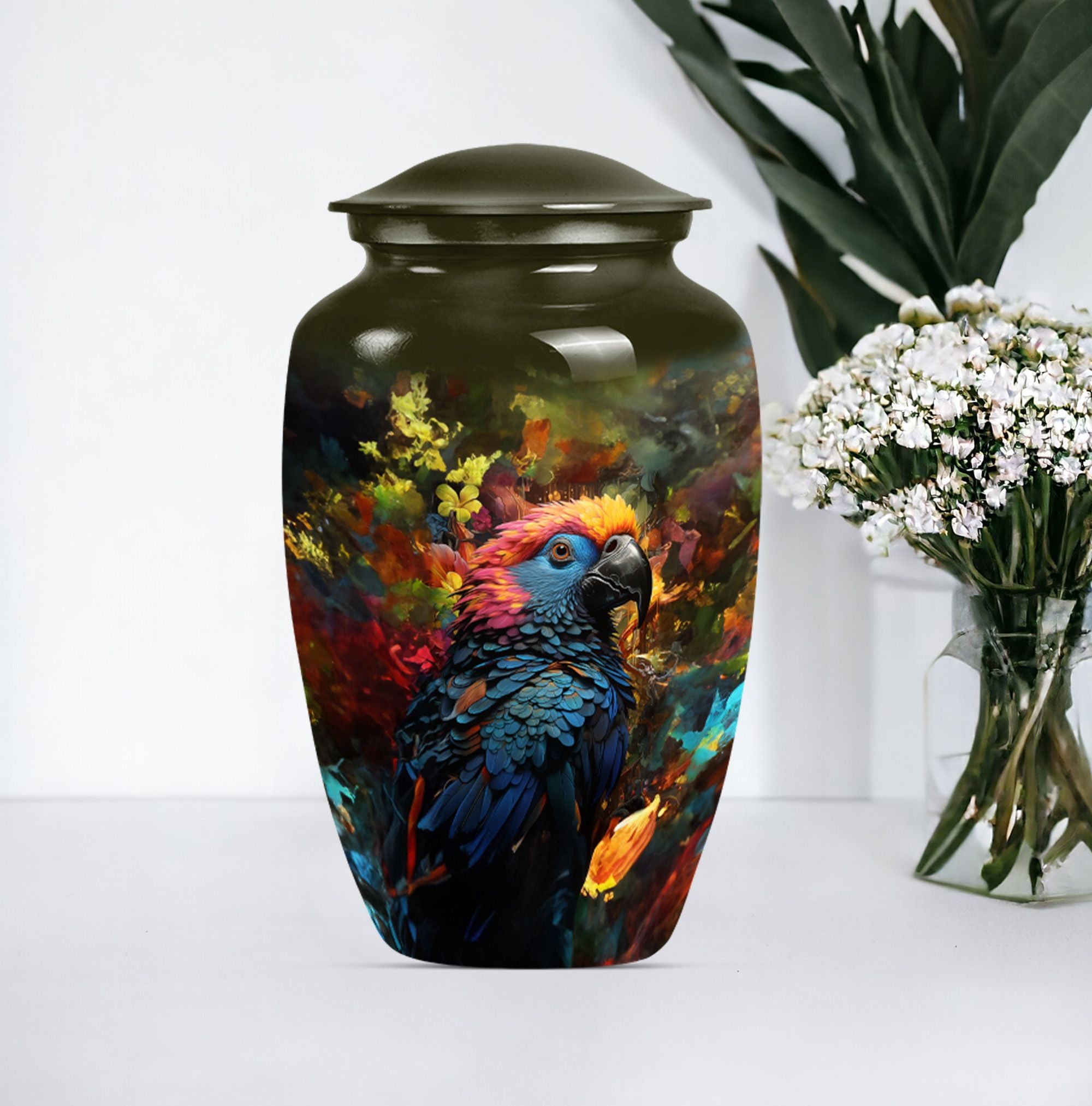 Embrace a loved one's serene memory with our Puffin Bird Urn, a remarkable selection amongst cremation personalized urns for human ashes adult. This large urn has been meticulously fashioned from premium quality Aluminium giving it lasting durability. The abstract theme confers an artistic appeal, thoughtfully designed to radiate an indelible remembrance. It's not just an urn; it's a grand heaven of peace measured at 10 inches in height with an impressive capacity of 200 cubic inches. The inclusion of a velvet pouch provides an intimate containment for the precious ashes. Weighing a solid 3.3 pounds, it exudes a substantial presence, making it a fitting memorial urns for your cherished adjunct. To make it truly distinctive, we offer customization options, letting you personalize with engraved names, adding a touch more tender to your priceless remembrance. Explore how our urn ash burial urn can resonate with you, perfectly suitable for seniors or adults seeking urns for cremation ashes for men or personalized urns for cremation ashes mother.