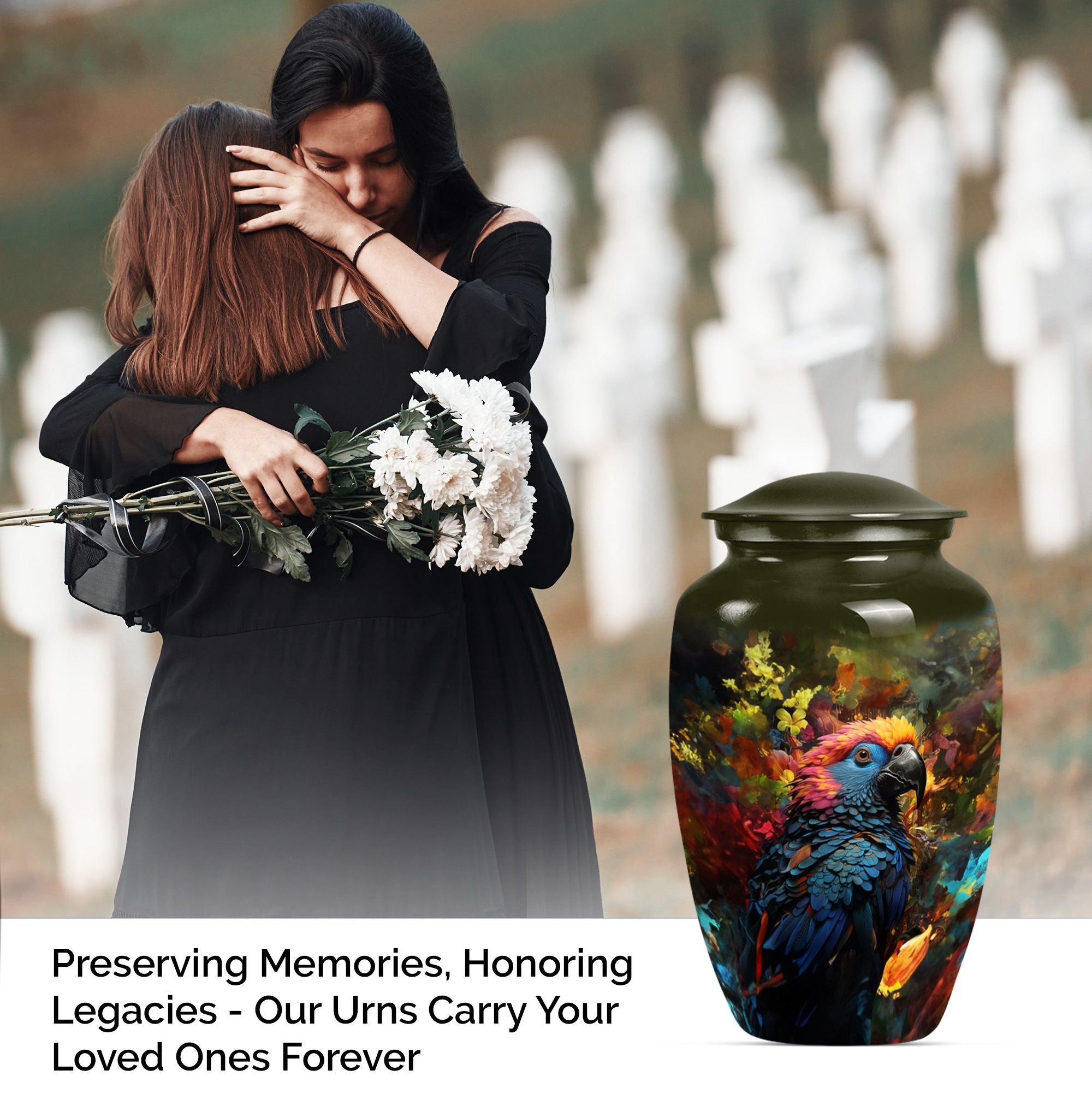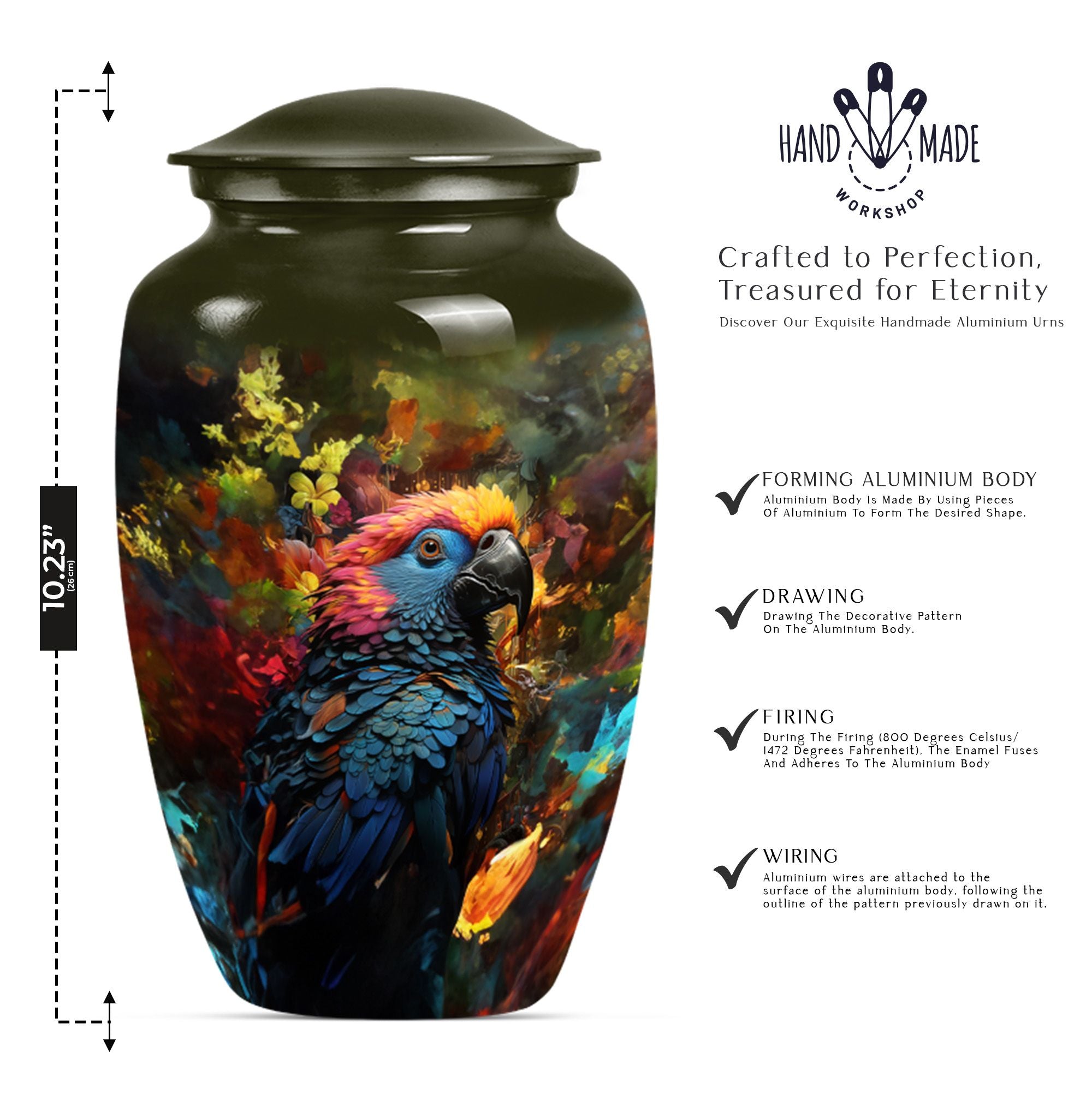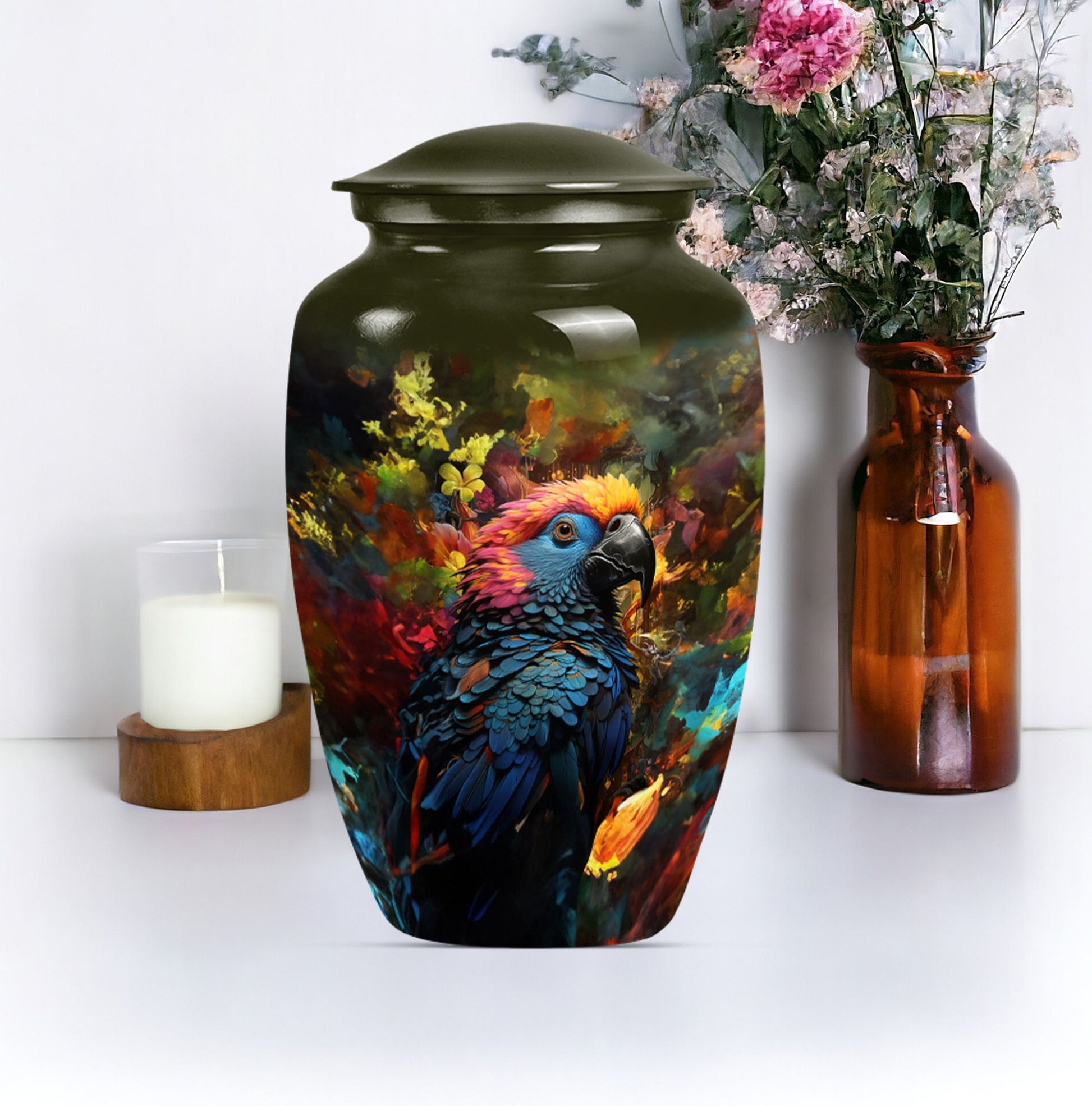 Embrace a loved one's serene memory with our Puffin Bird Urn, a remarkable selection amongst cremation personalized urns for human ashes adult. This large urn has been meticulously fashioned from premium quality Aluminium giving it lasting durability. The abstract theme confers an artistic appeal, thoughtfully designed to radiate an indelible remembrance. It's not just an urn; it's a grand heaven of peace measured at 10 inches in height with an impressive capacity of 200 cubic inches. The inclusion of a velvet pouch provides an intimate containment for the precious ashes. Weighing a solid 3.3 pounds, it exudes a substantial presence, making it a fitting memorial urns for your cherished adjunct. To make it truly distinctive, we offer customization options, letting you personalize with engraved names, adding a touch more tender to your priceless remembrance. Explore how our urn ash burial urn can resonate with you, perfectly suitable for seniors or adults seeking urns for cremation ashes for men or personalized urns for cremation ashes mother.
