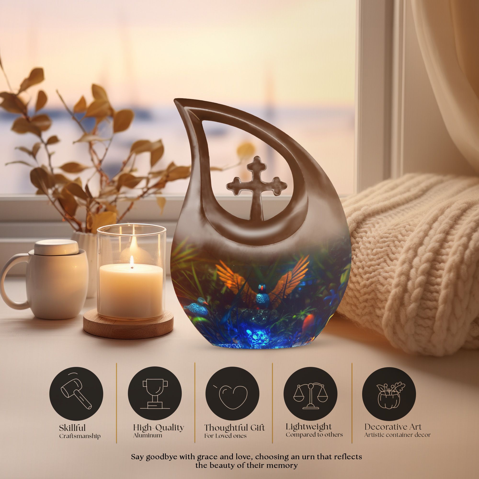 Made from durable aluminium, this urn features a gentle puffin bird artwork symbolizing guidance, tranquility, and eternal connection. Its compact size and secure screw-top lid make it a reliable choice for those needing Cremation Urns for Ashes for Men, Urns for Cremation Ashes Small, or traditional Urns for Cremation. Though small, its craftsmanship and meaningful design make it perfect for home memorial spaces or gifting to family members wishing to share in remembrance. This urn also supports the needs of families looking for Cremation Keepsakes Urns, high-quality Urns for Cremation Ashes, or elegant Cremation Urns for Ashes.