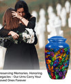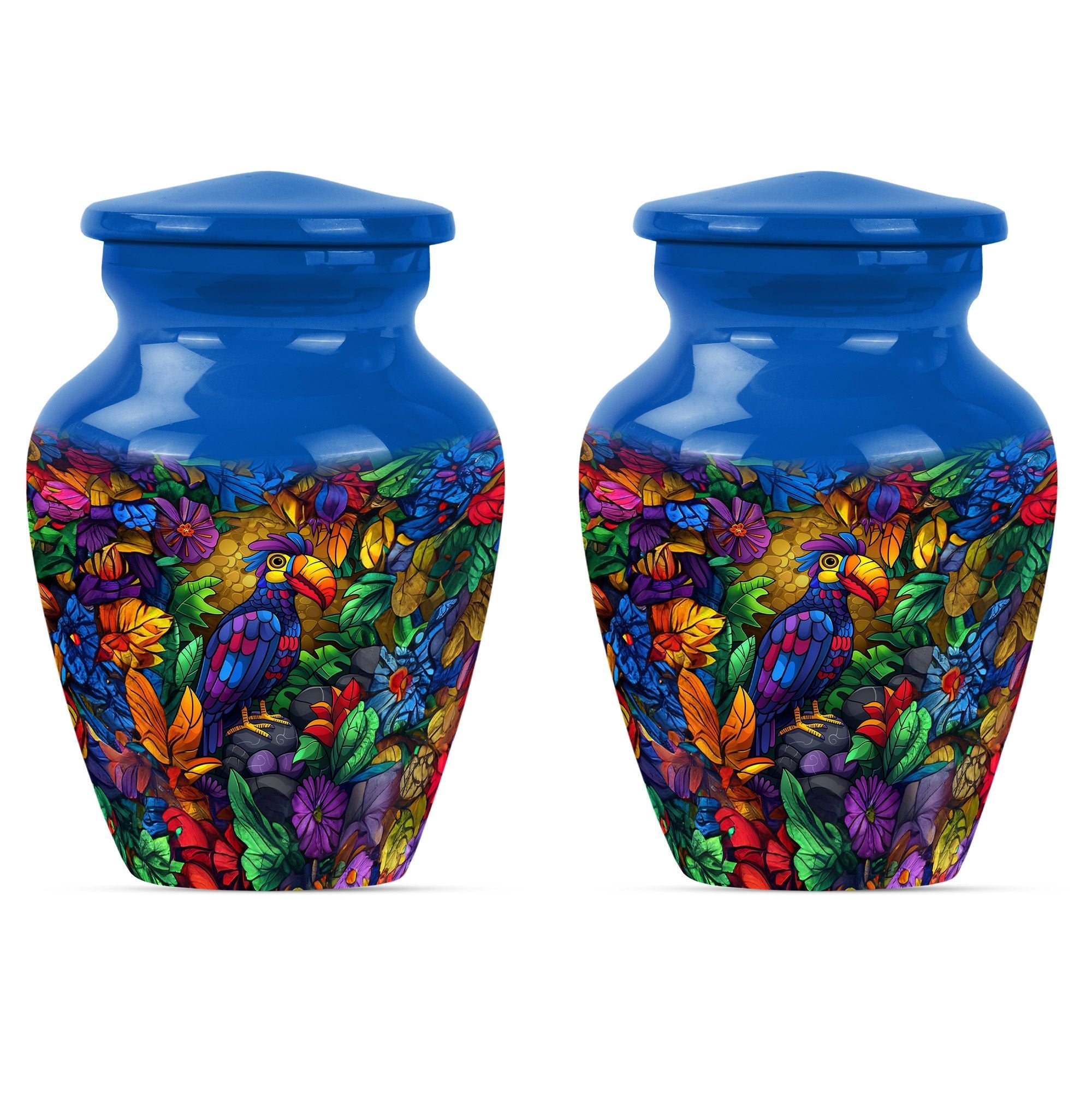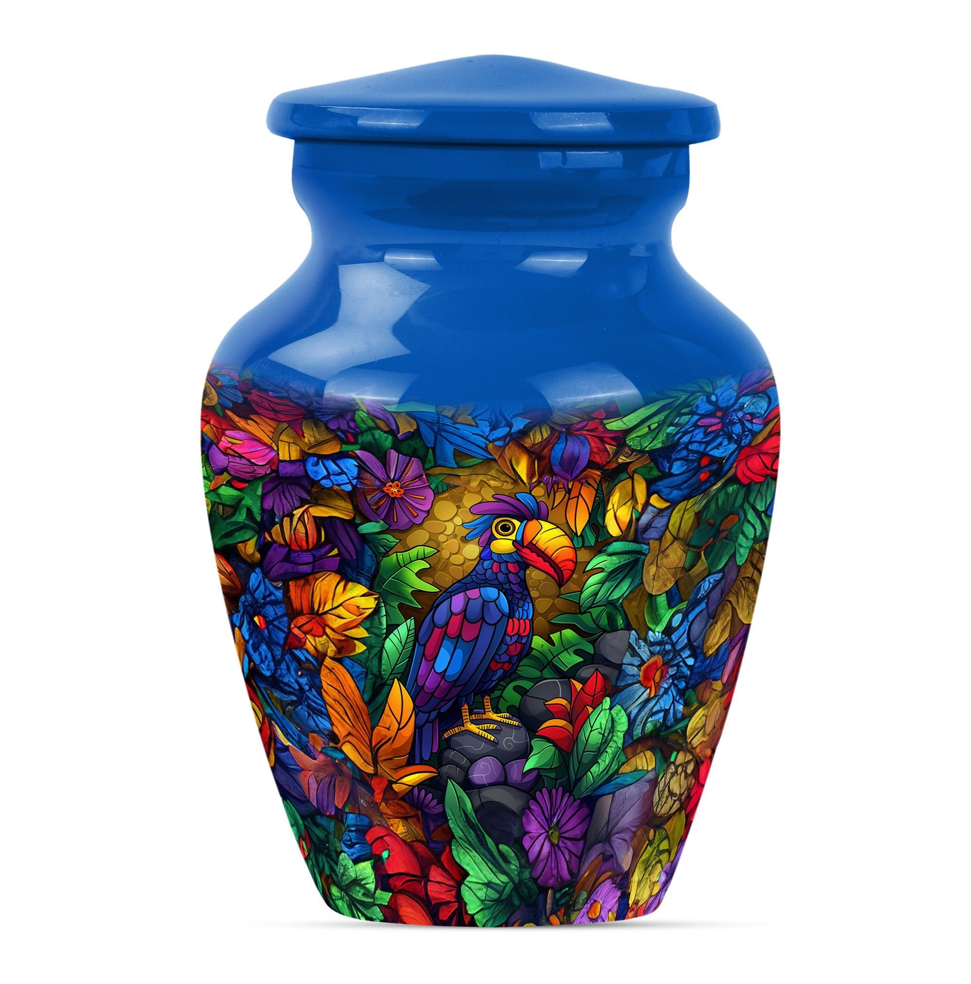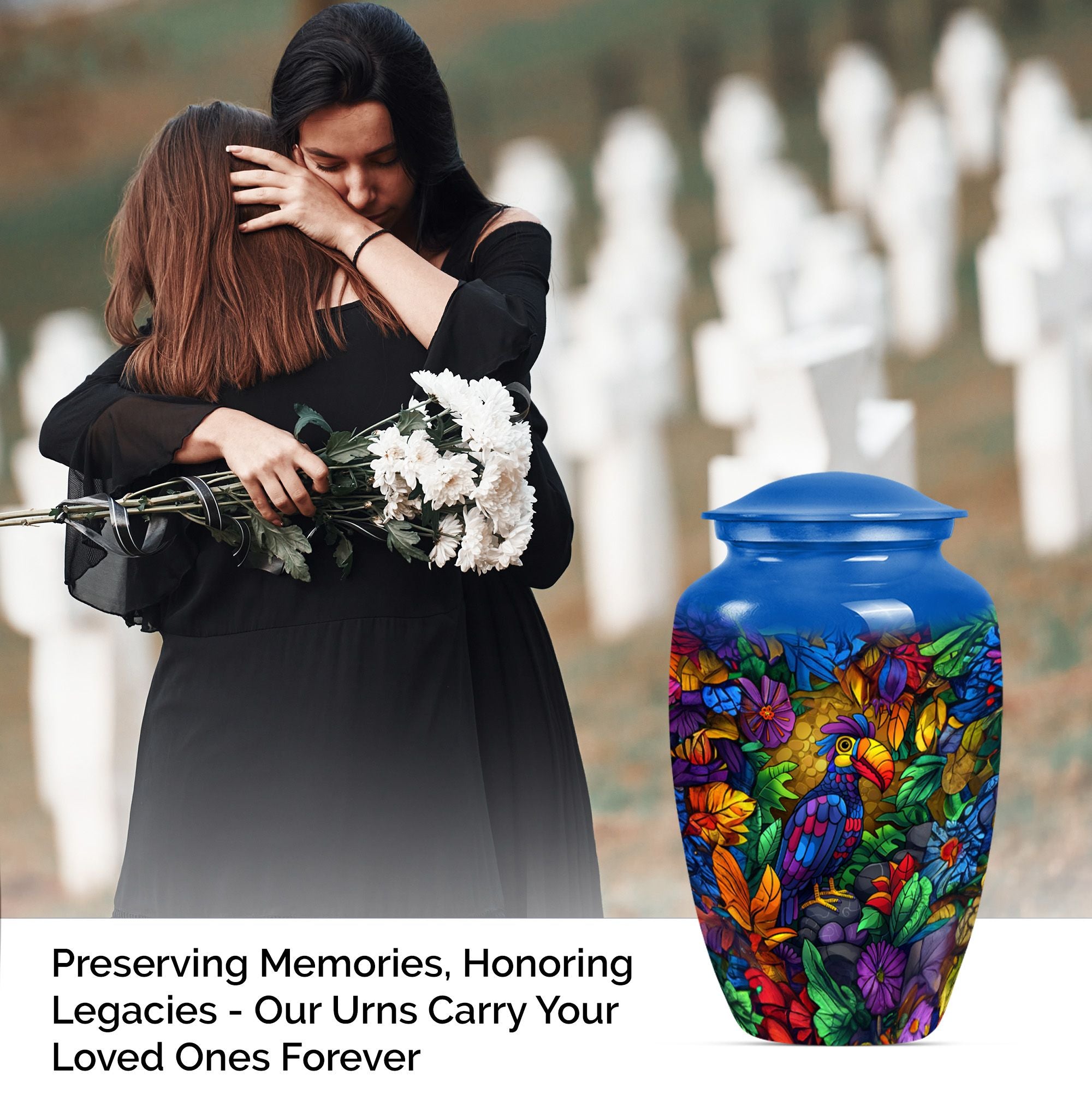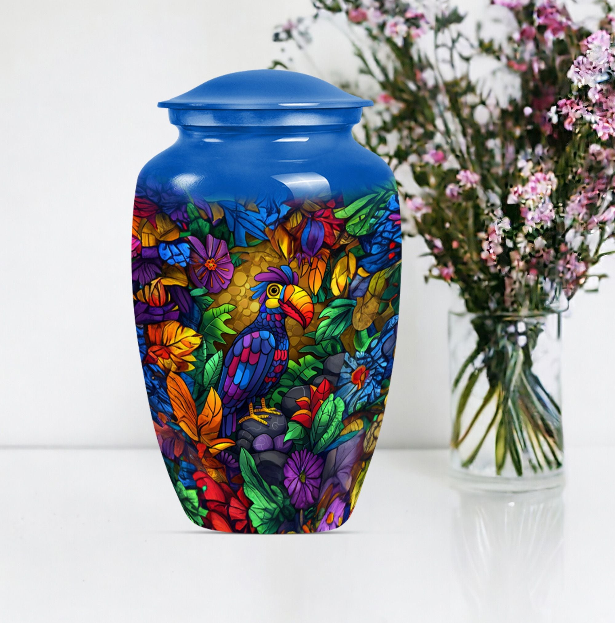 Pay your respects and honor the memory of your lost loved one with the Puffin Bird Urn, a memorial urn for an adult male. Standing at a sizable 10 inches in height and capable of containing up to 200 cubic inches, this large urn is a dignified final resting place. Despite its significant capacity, it weighs a manageable 3.3 pounds thanks to its aluminium construction. This large urn features a time-honored abstract theme and arrives with a velvet pouch for respectful containment and easy transportation of ashes. Additionally, you have the opportunity to personalize the urn with engraved names, adding a special, intimate touch to an already unique memorial piece. It's more than just funeral medium-sized urns for human ashes, it's a symbol of a life worth remembering. Ideal for those seeking urns for human ashes adult sized and companion cremation urns for 2 adults, the Puffin Bird Urn represents a soothing semblance of peace and respect.