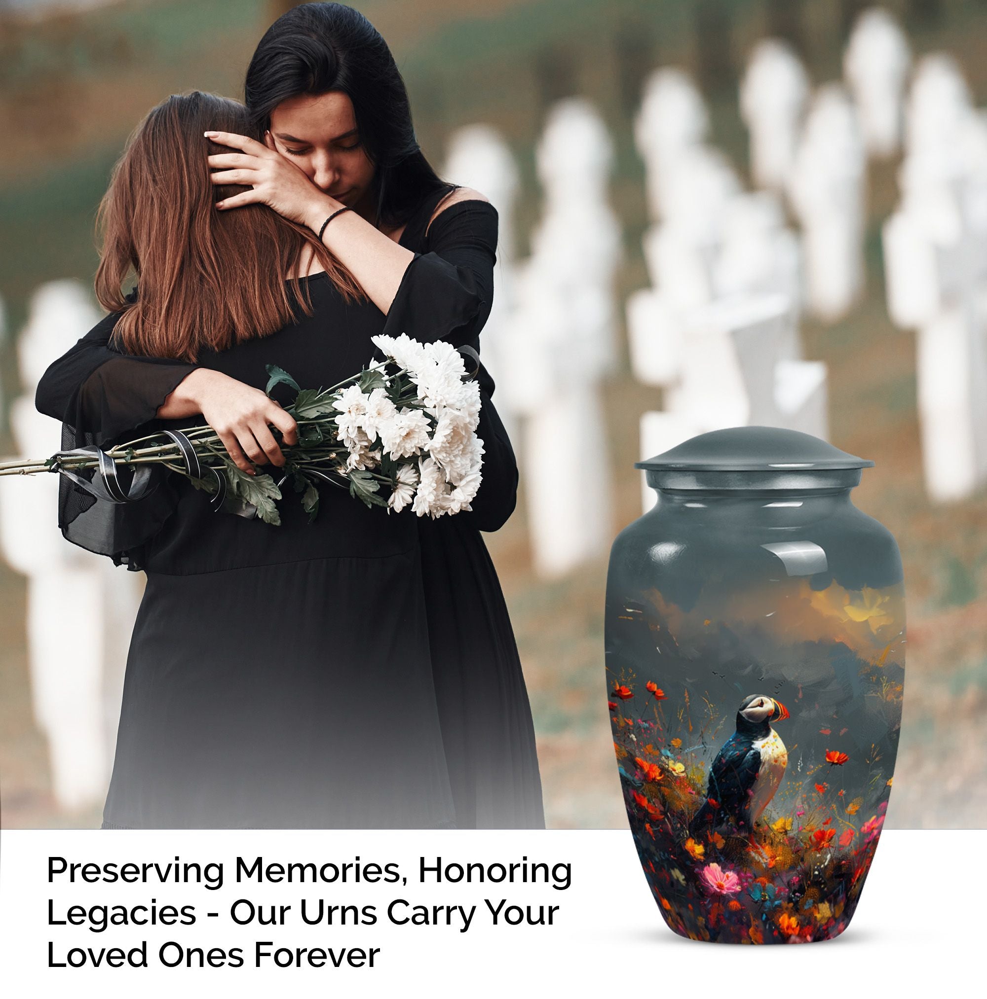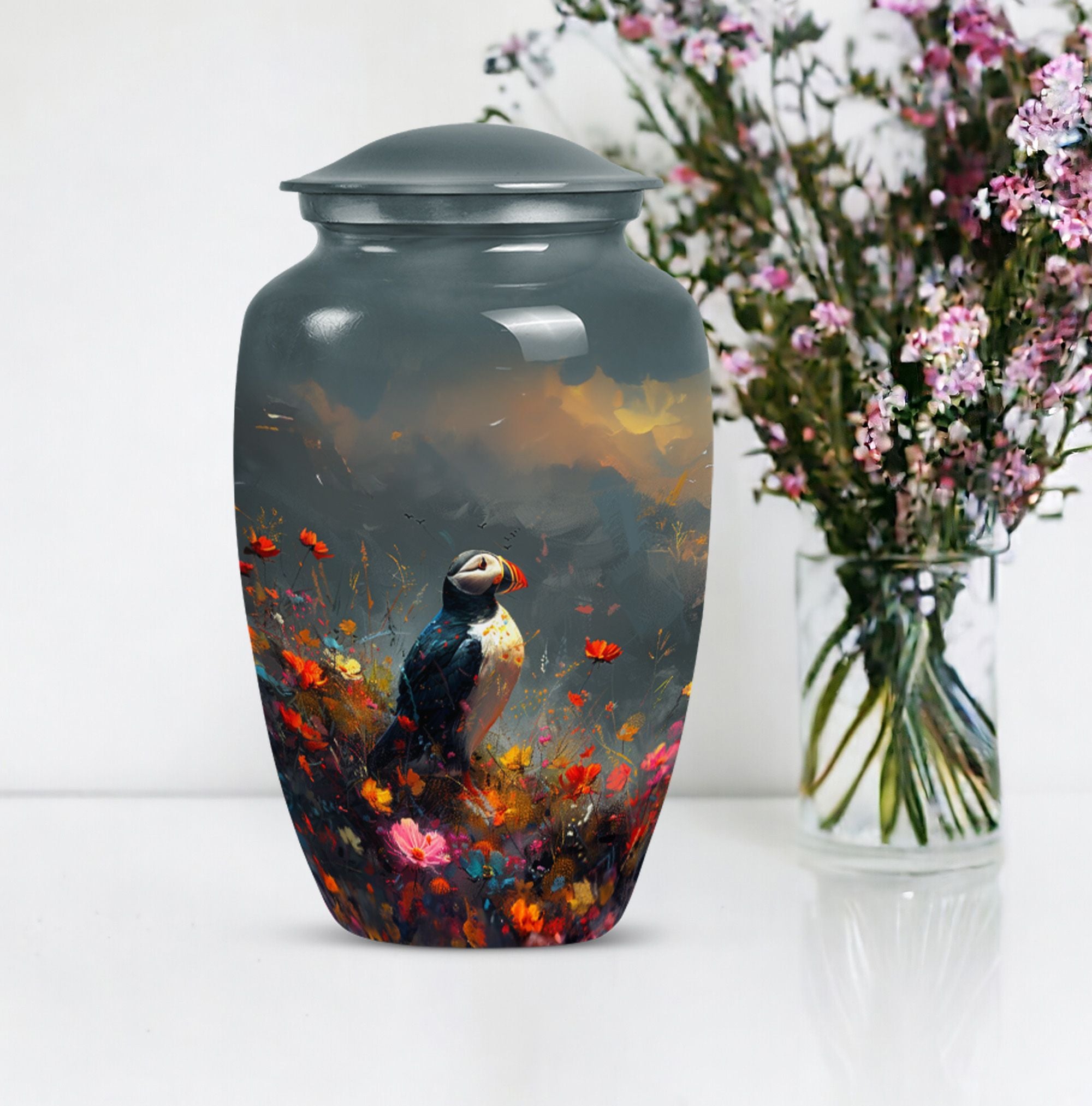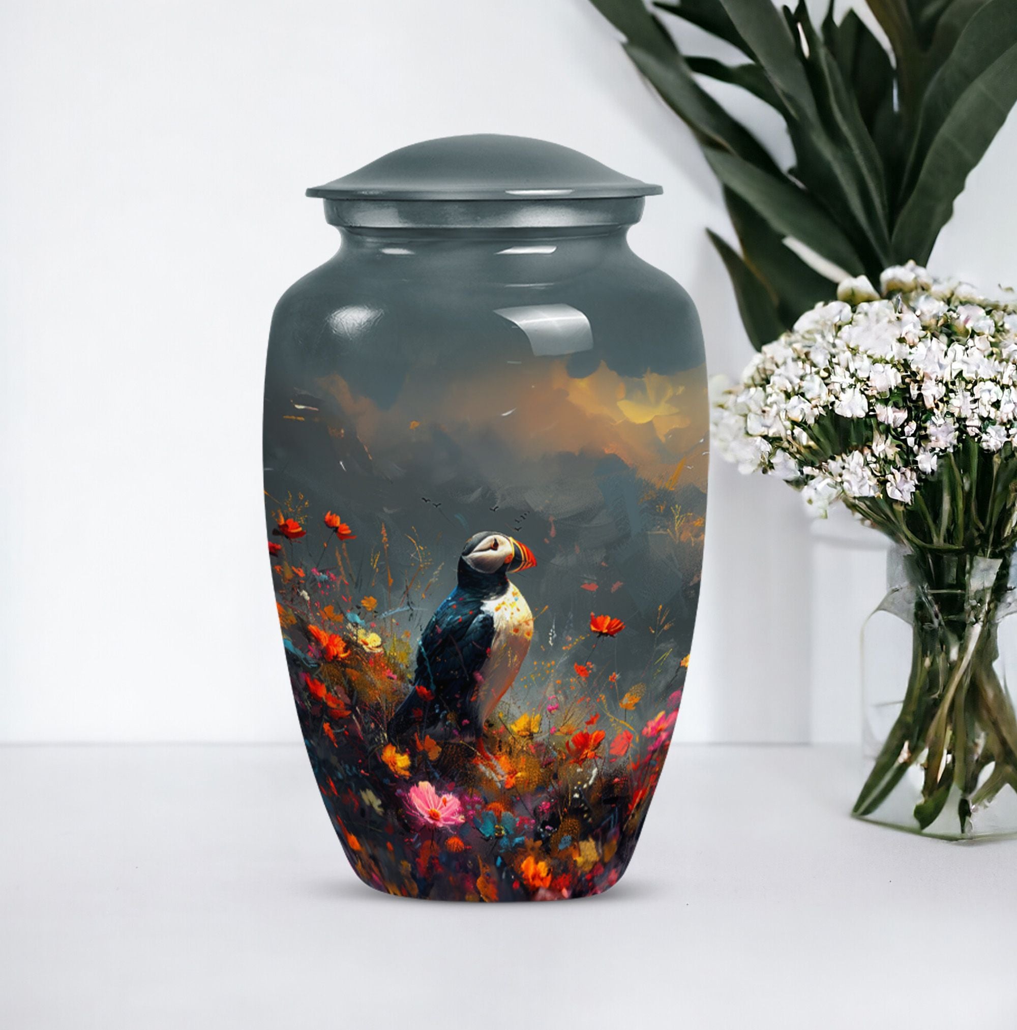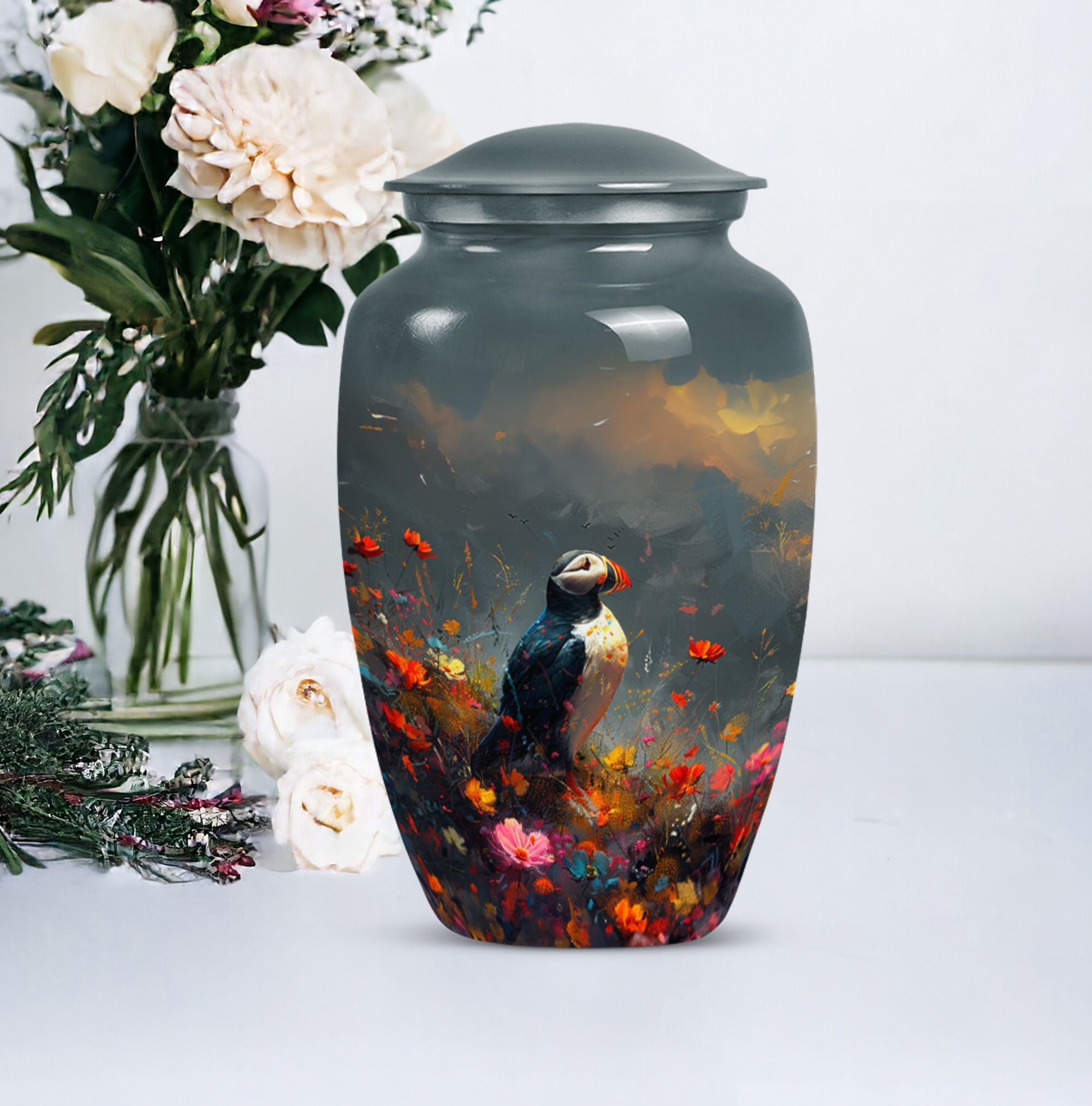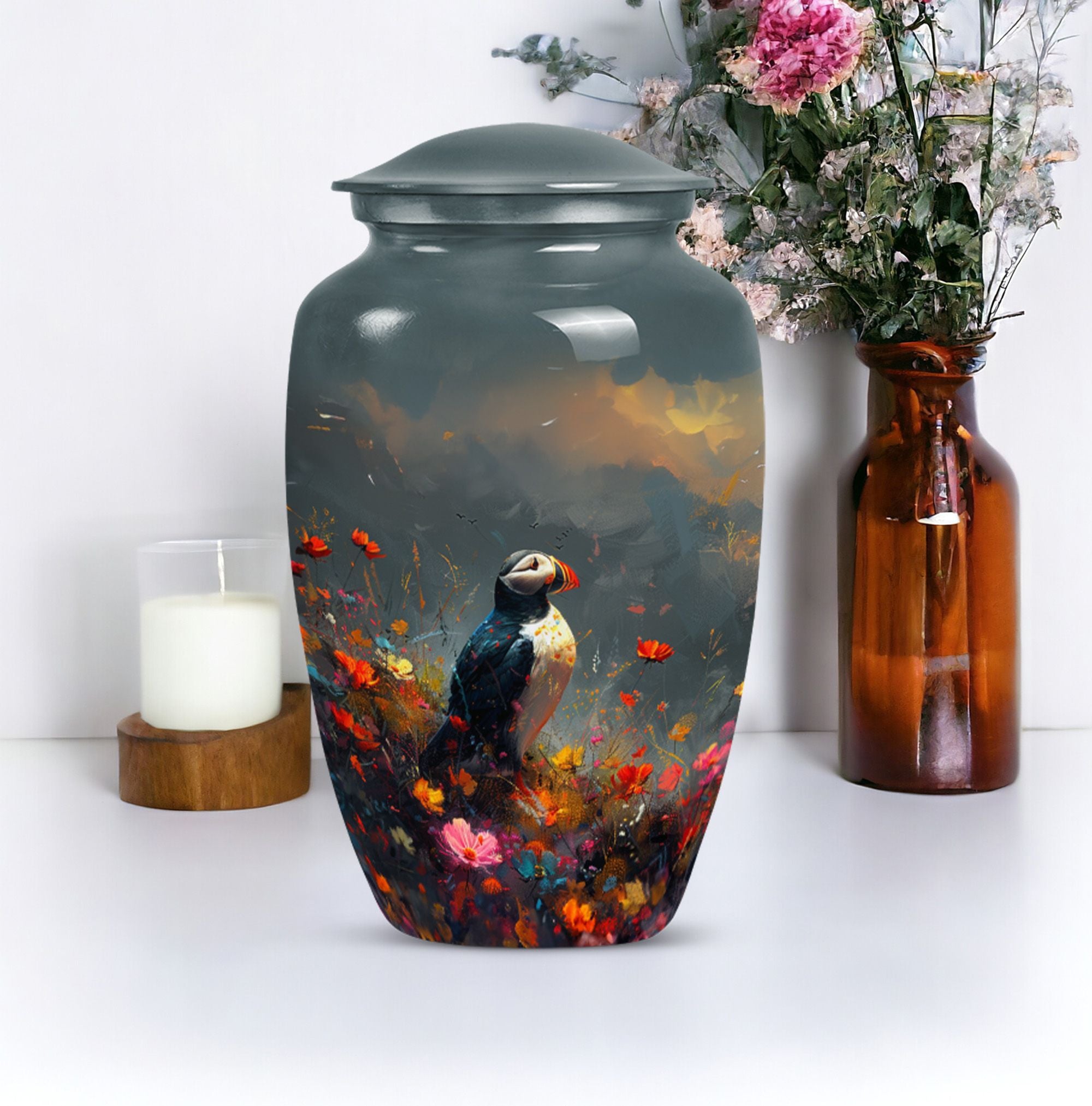 Puffin Bird Tribute: Admiring cremation urn for adult ashes