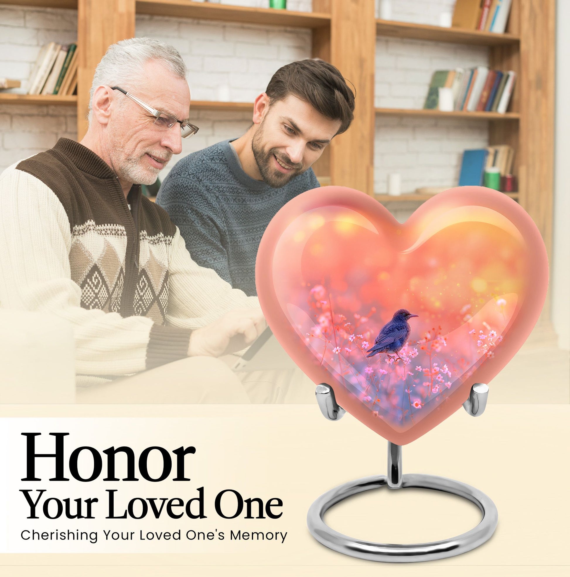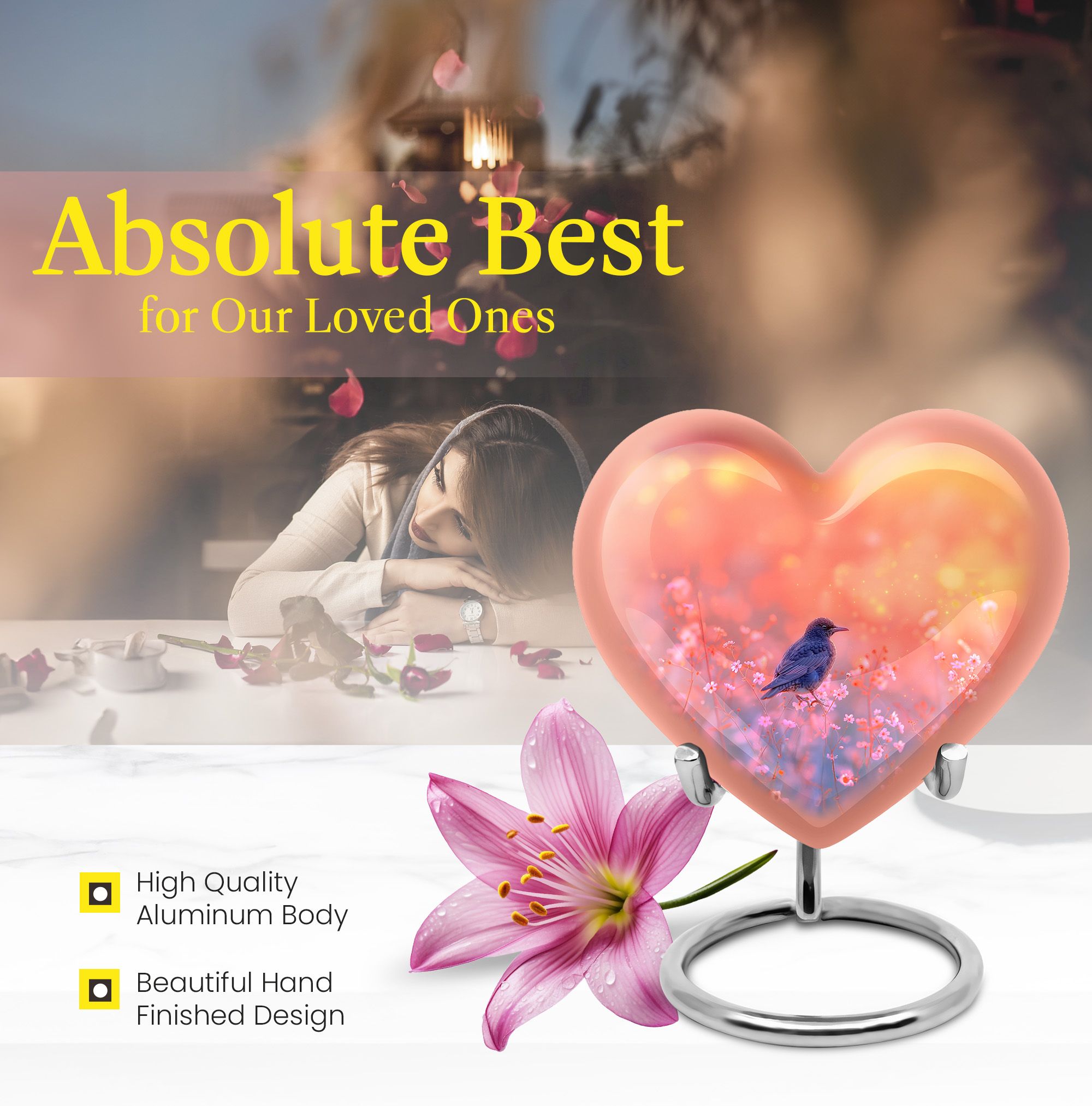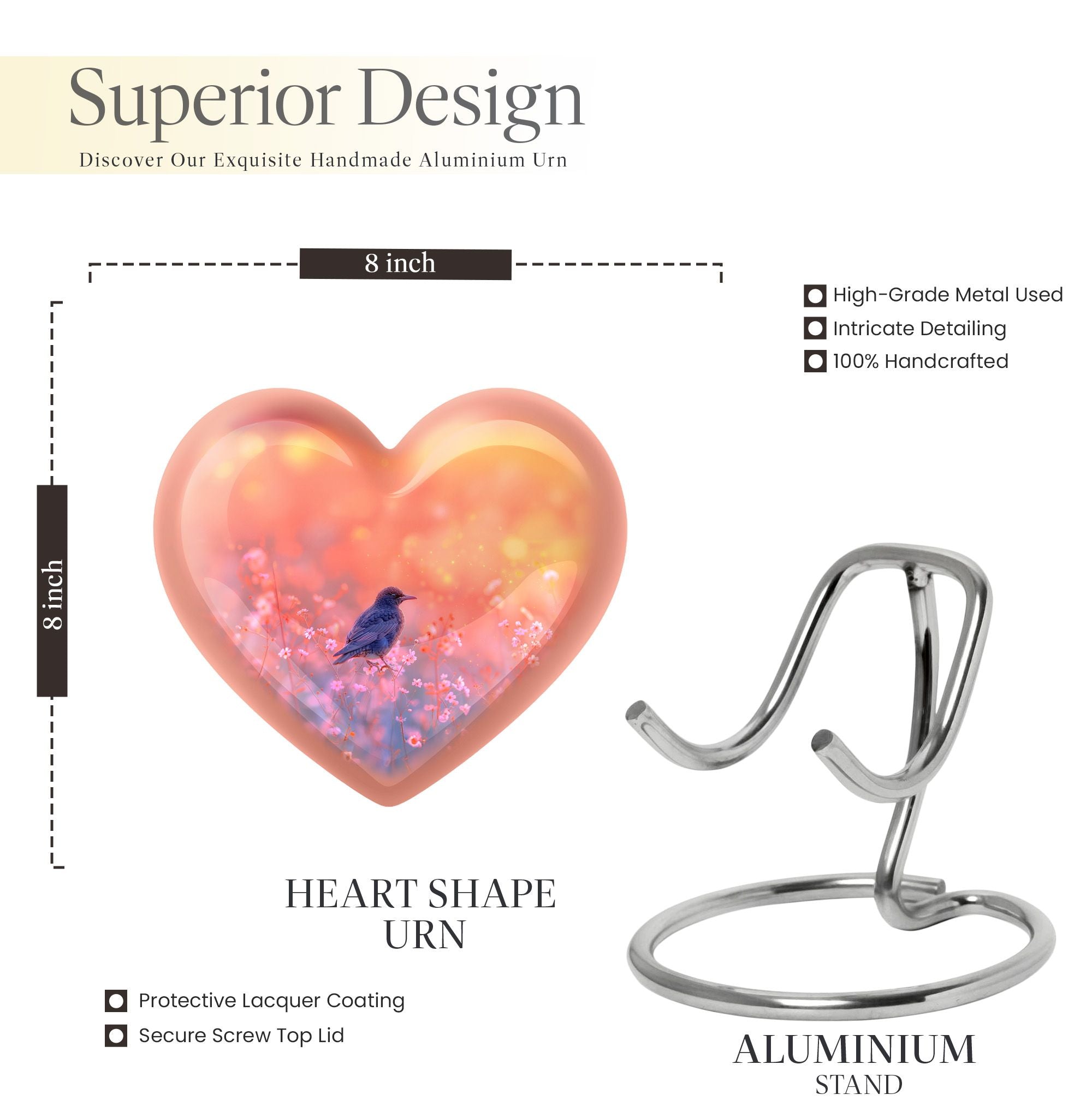 Honor your loved one with our Puffin Bird Urn, a memorial tribute that blends spirituality and aesthetics. Tailored as a Large Urn, it stands at 10 inches tall and embodies a heart-touching silhouette, resonating with the theme of love and remembrance. Crafted from sturdy and durable aluminium, it offers substantial capacity to house 200 cubic inches of ash, ideal for adult memorial requirements. Each urn weighs approximately 3.3 pounds, exuding a substantial feel, yet light enough for easy handling. We present a complimentary velvet pouch with each purchase to conveniently contain and safe-keep the remains. For a memorable touch, we provide customization options where you can personalize the urn with engraved names. Designed beyond average cremation containers for human ashes, this Puffin Bird Urn stands out in beautiful contrast, making it a suitable addition to your collection of funeral burial urns.