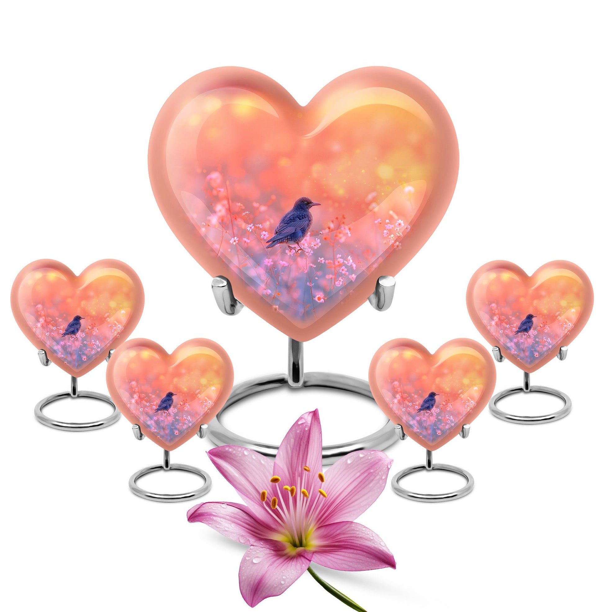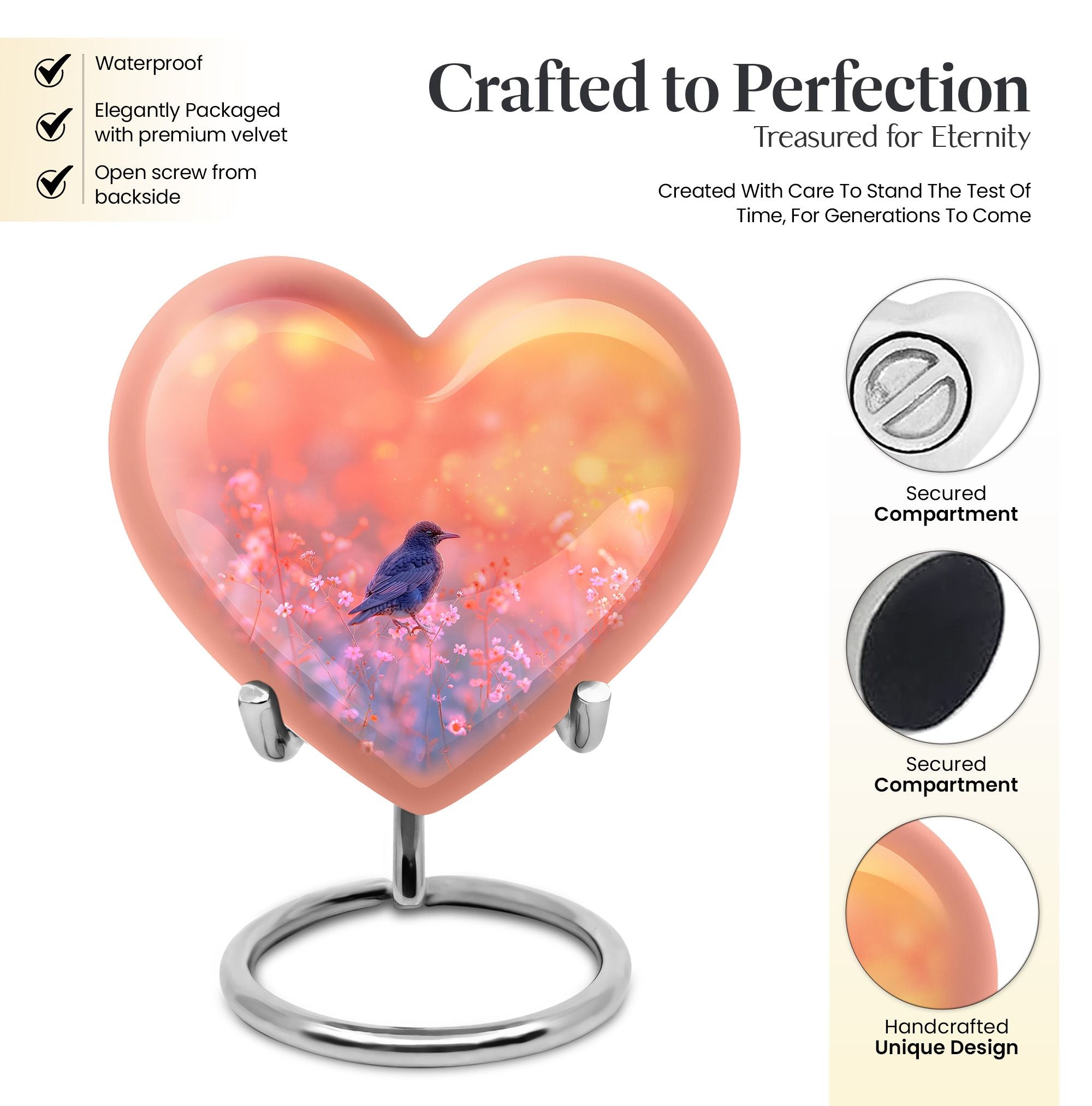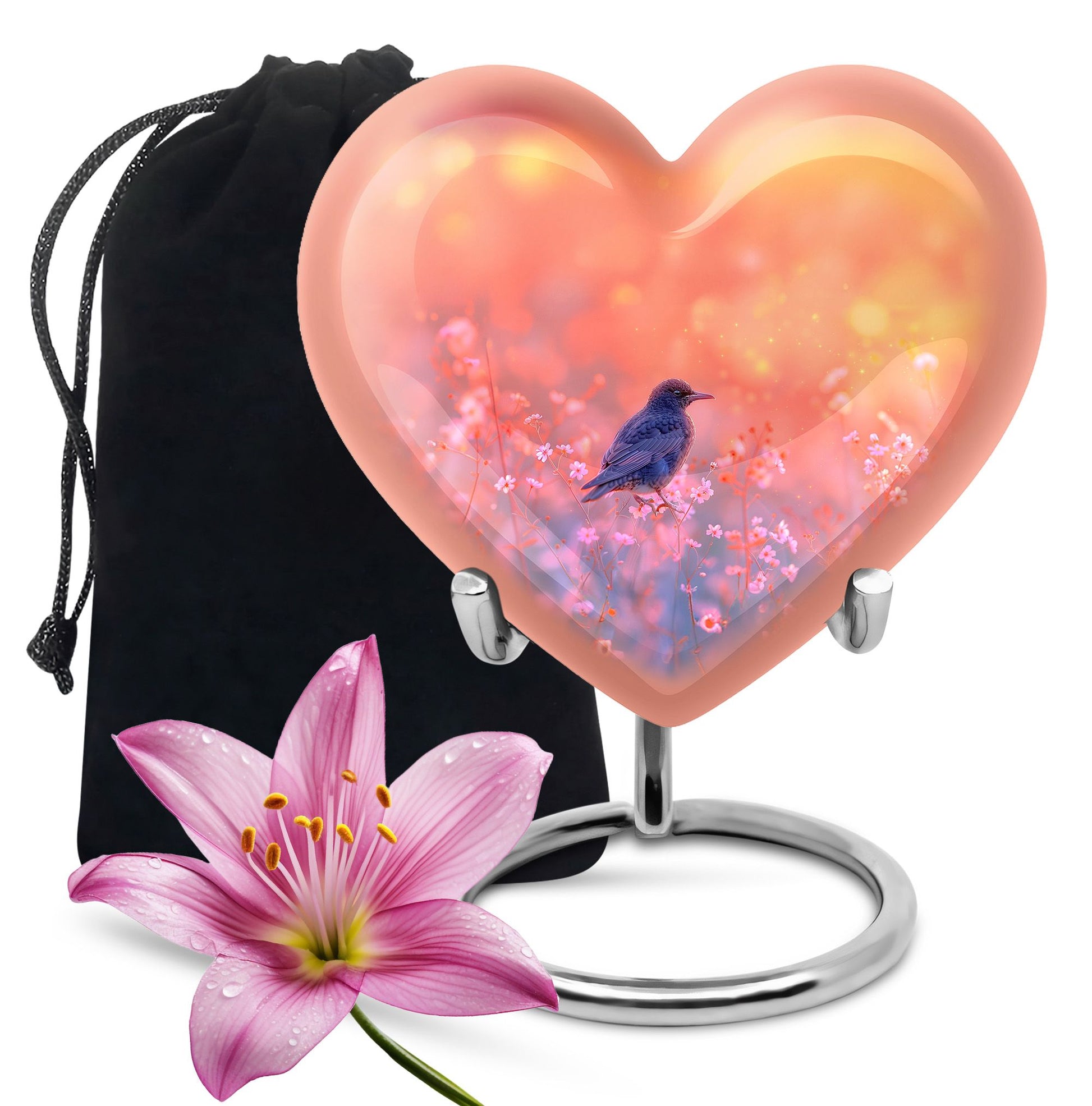 Honor your loved one with our Puffin Bird Urn, a memorial tribute that blends spirituality and aesthetics. Tailored as a Large Urn, it stands at 10 inches tall and embodies a heart-touching silhouette, resonating with the theme of love and remembrance. Crafted from sturdy and durable aluminium, it offers substantial capacity to house 200 cubic inches of ash, ideal for adult memorial requirements. Each urn weighs approximately 3.3 pounds, exuding a substantial feel, yet light enough for easy handling. We present a complimentary velvet pouch with each purchase to conveniently contain and safe-keep the remains. For a memorable touch, we provide customization options where you can personalize the urn with engraved names. Designed beyond average cremation containers for human ashes, this Puffin Bird Urn stands out in beautiful contrast, making it a suitable addition to your collection of funeral burial urns.