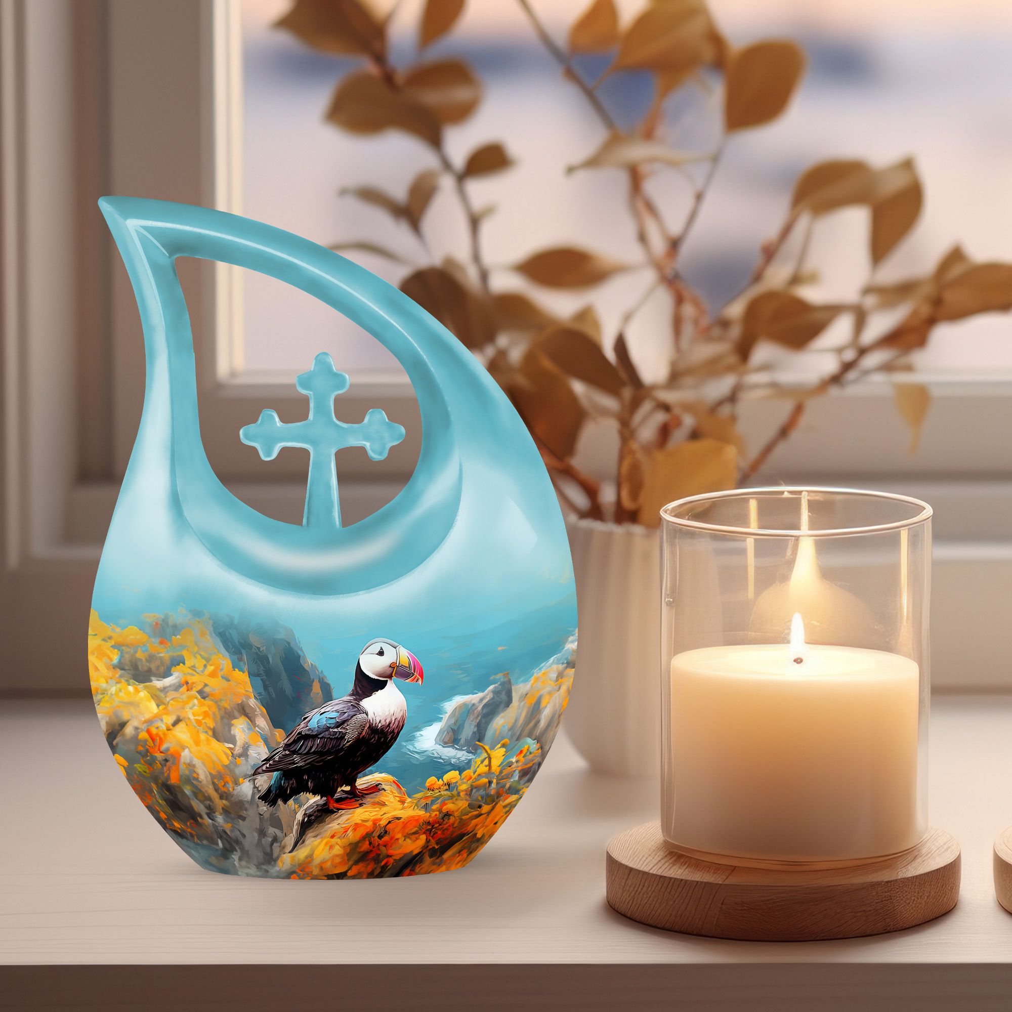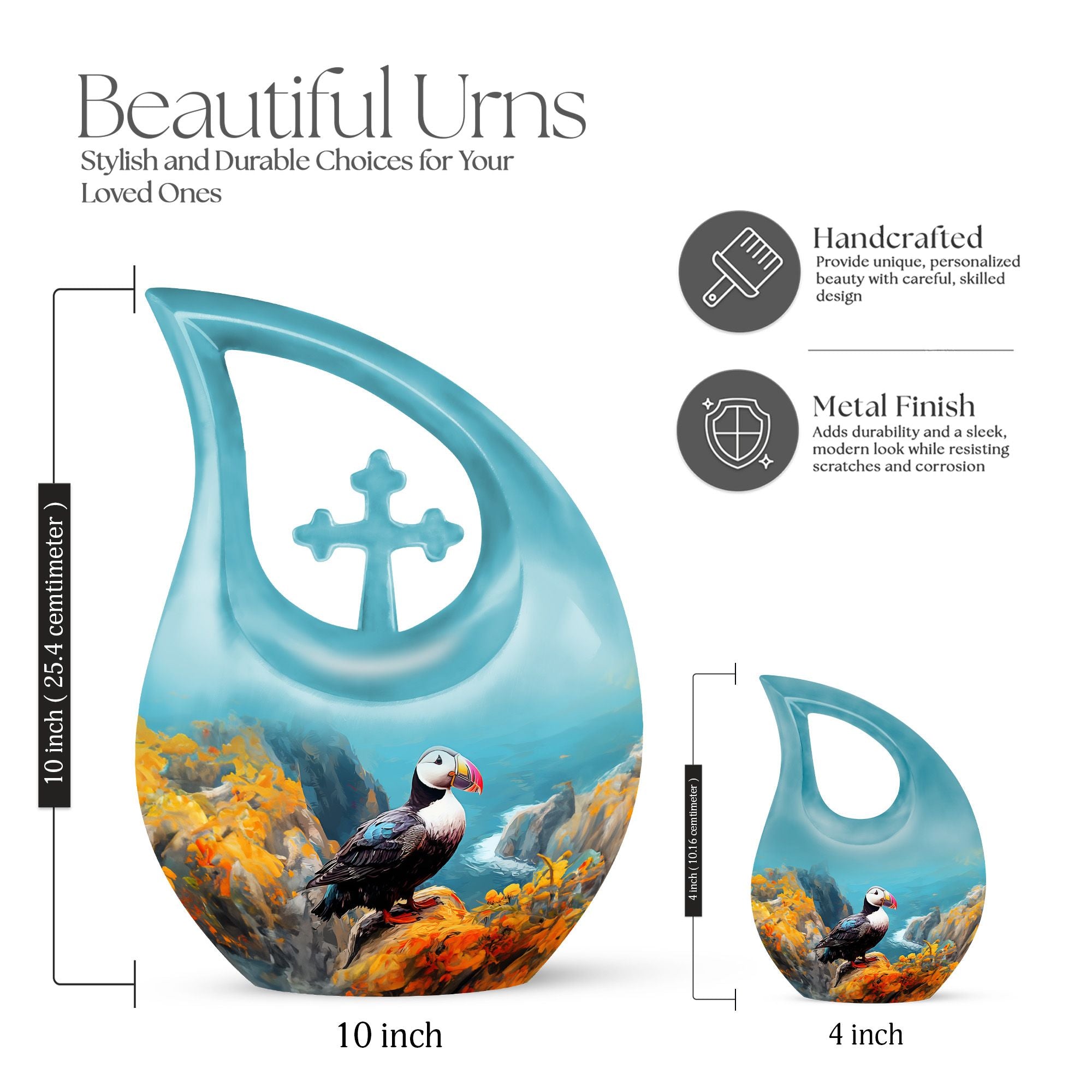 Honor cherished memories with this Puffin Bird Cremation Urn, a beautifully crafted large urn for ashes adult male and large urn for ashes for women. Designed for those seeking a meaningful and peaceful tribute, this 10-inch memorial urn offers a comforting place to preserve your loved one’s legacy.