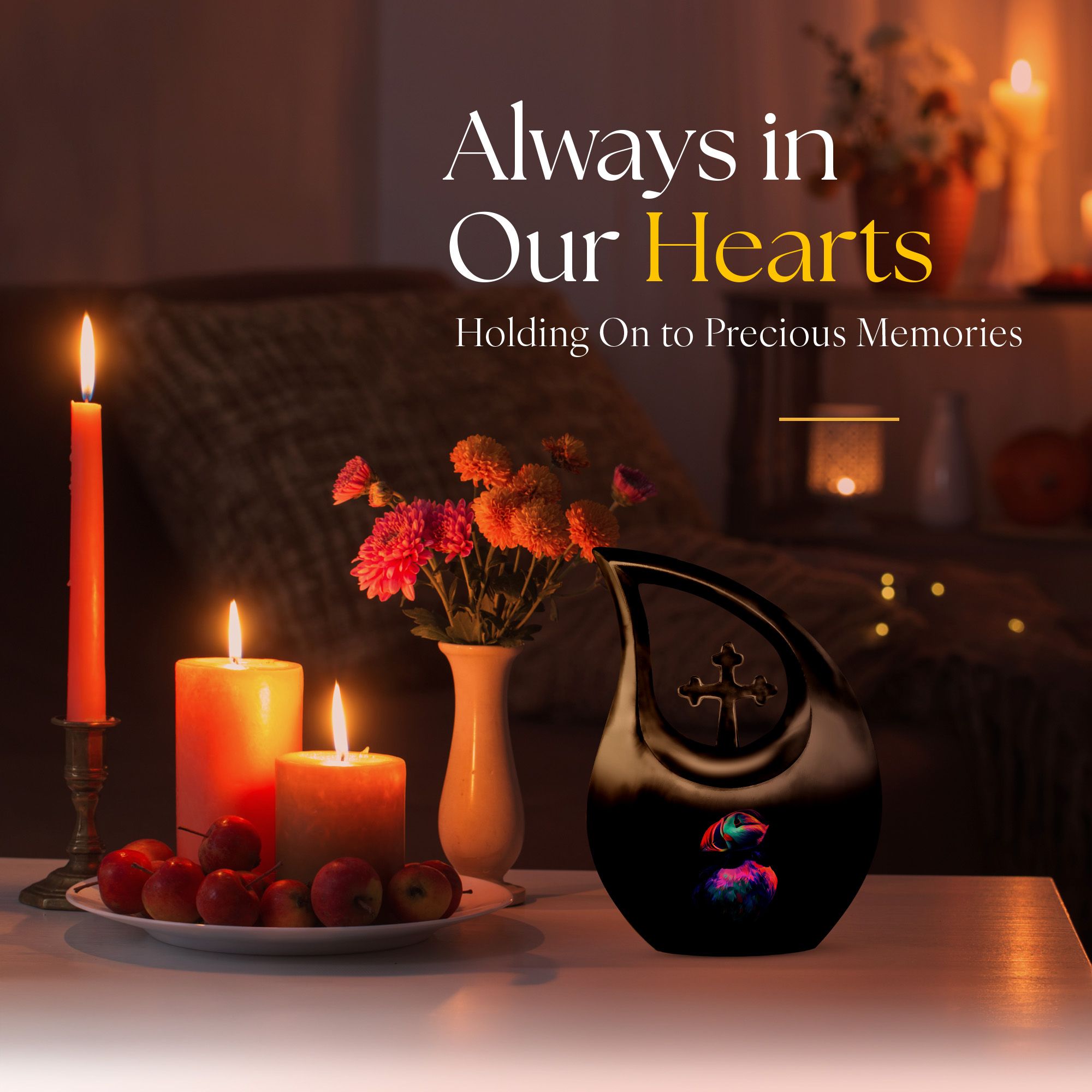 Honor your loved one with the Puffin Bird Funeral Urn, a beautifully handmade tribute crafted to provide comfort and dignity. Thoughtfully designed for families seeking urns for cremation ashes small, cremation urns for ashes, or a meaningful cremation urn for adults, this piece blends artistry with heartfelt remembrance.