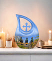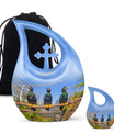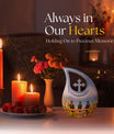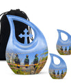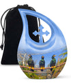 This funeral ashes urn offers comfort through its symbolism and timeless artistry, fitting seamlessly into collections of small funeral urns or funeral keepsake urns. Its serene presence helps families cherish memories with love and dignity.