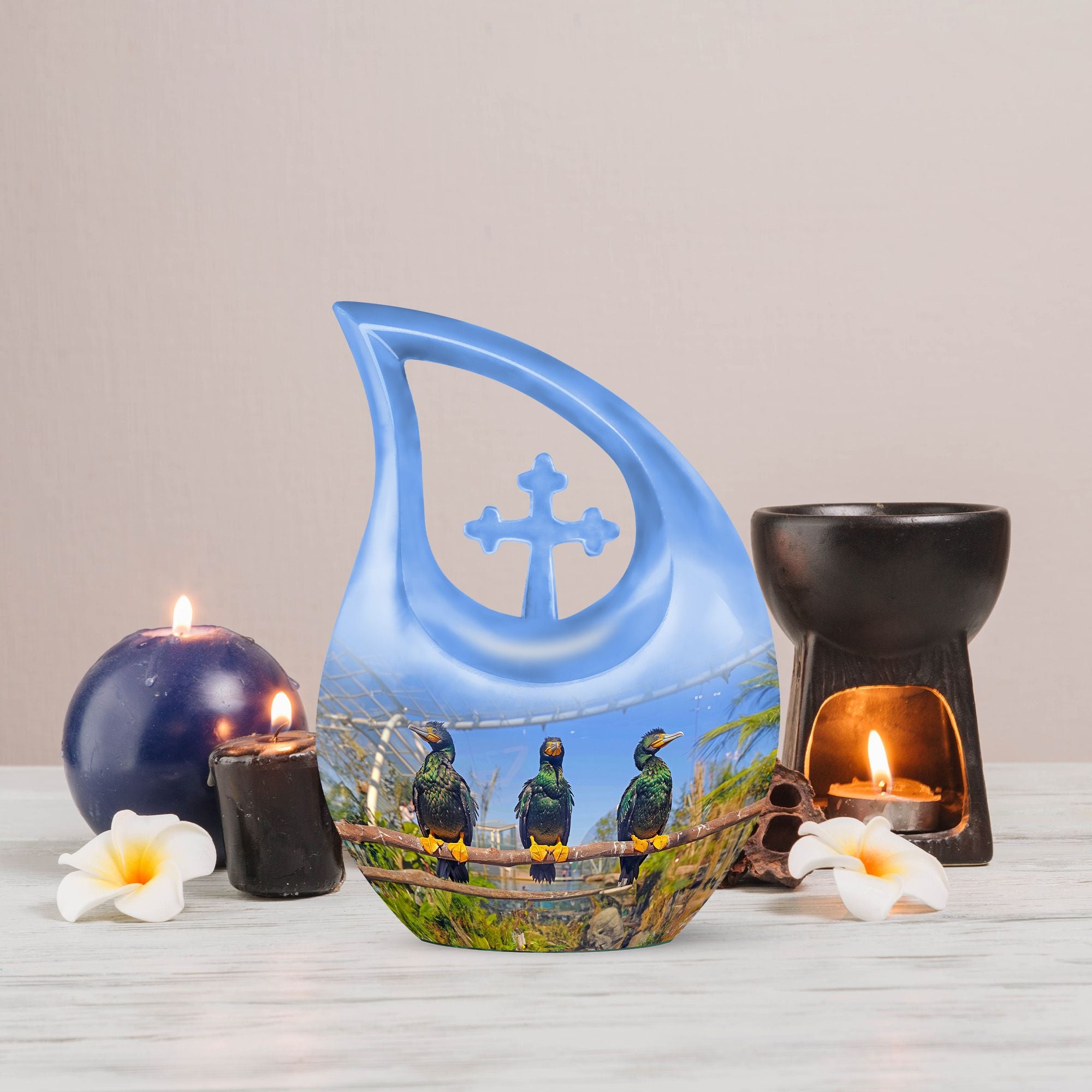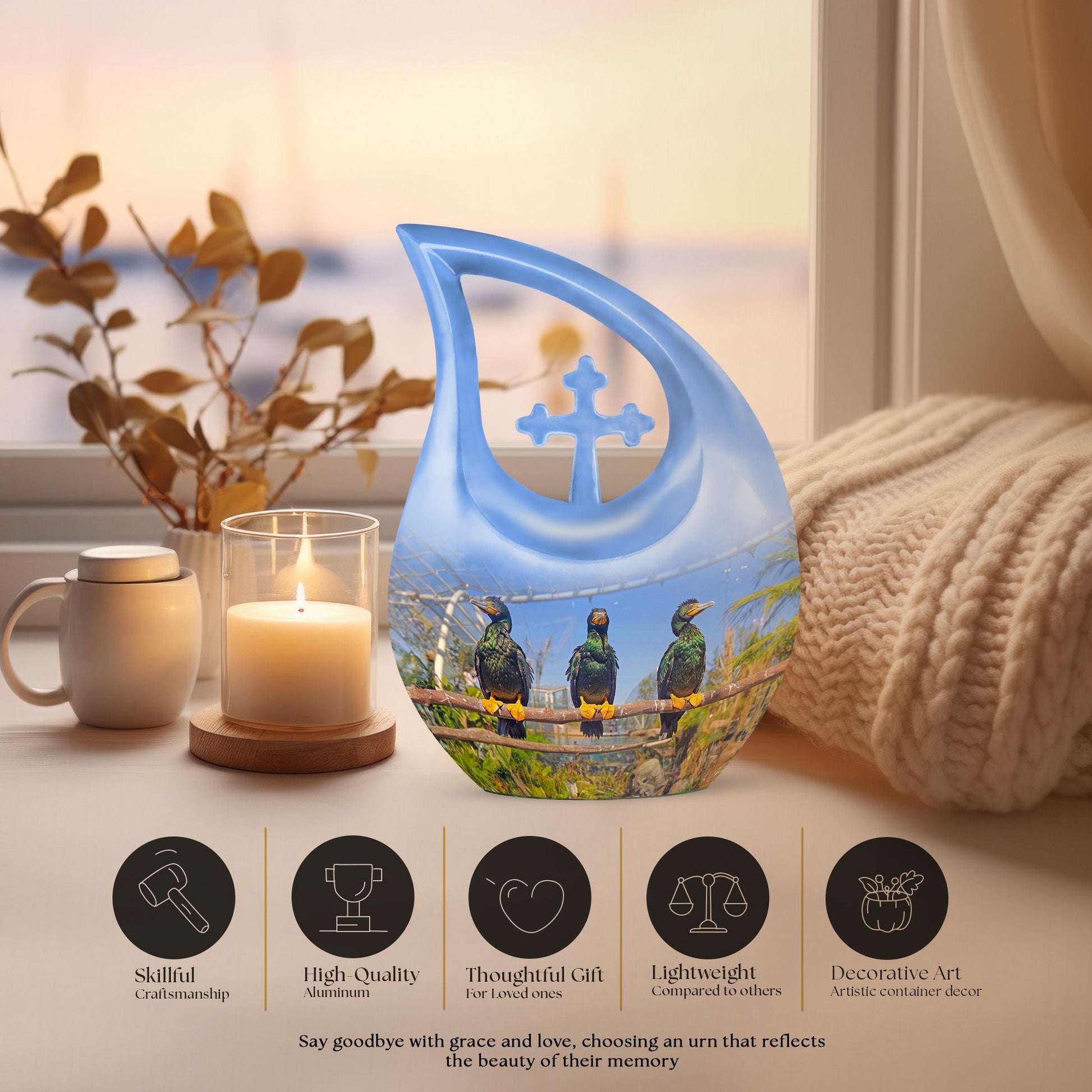 Crafted with care, this aluminium urn features a graceful puffin design symbolizing guidance, resilience, and enduring love. Its sturdy construction ensures lasting protection for ashes, making it suitable for adult funeral urns, funeral urn adult use, and any setting requiring funeral urns for human ashes small when paired with matching keepsakes. Whether chosen as a standalone piece or to complement keepsake funeral urns, it serves as a compassionate and versatile memorial. Families may also use it alongside mini keepsake funeral urn options for shared remembrance.