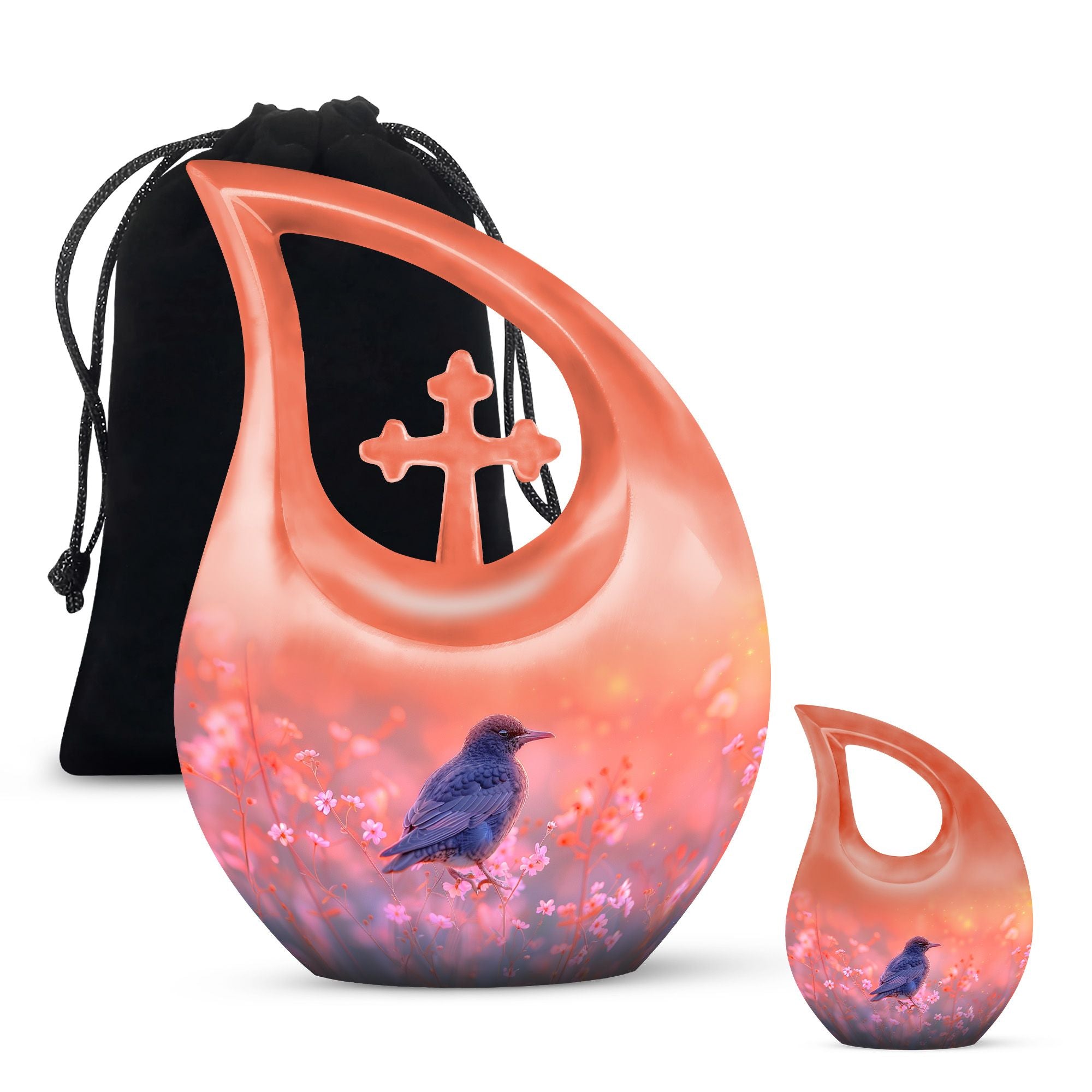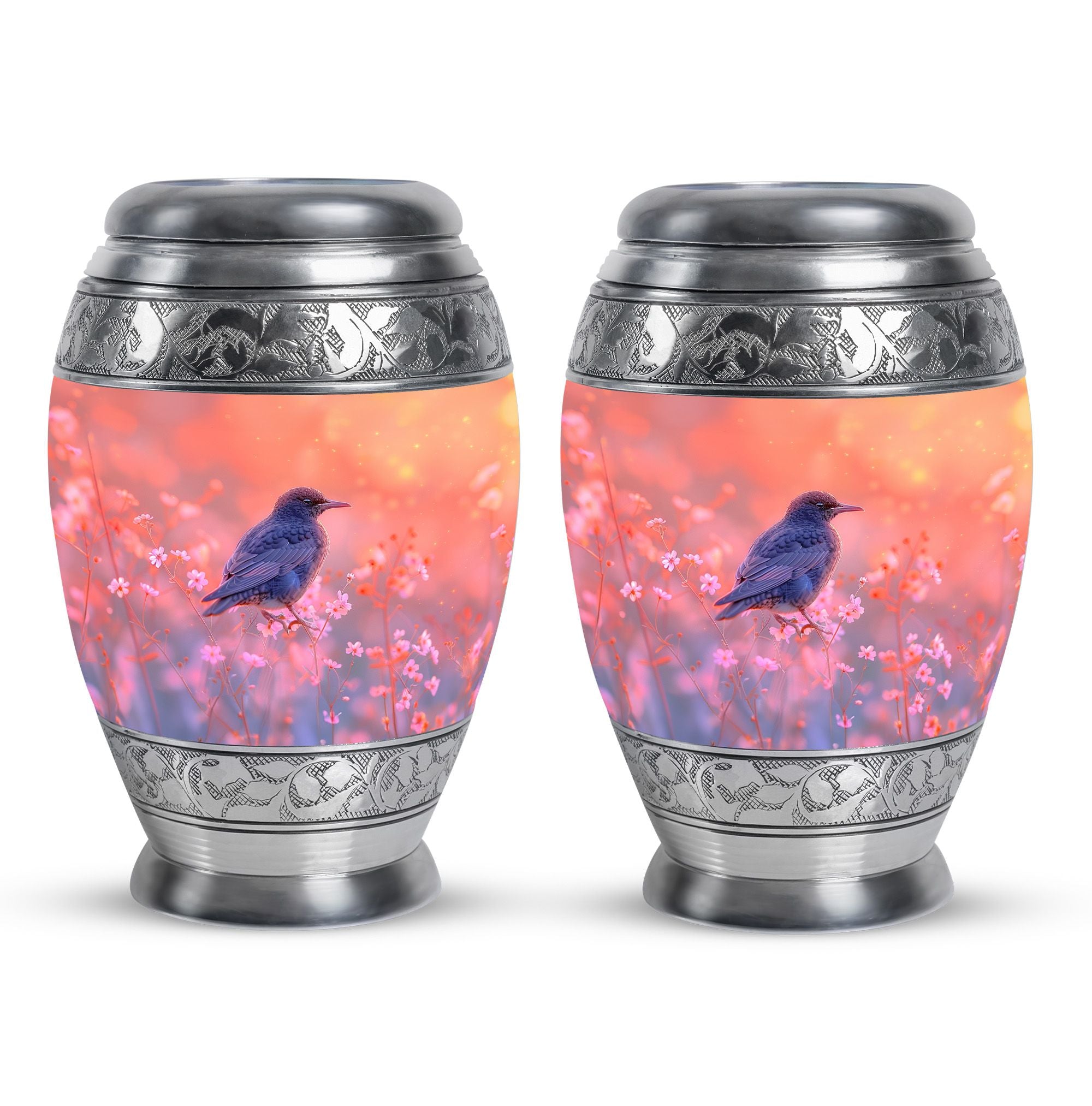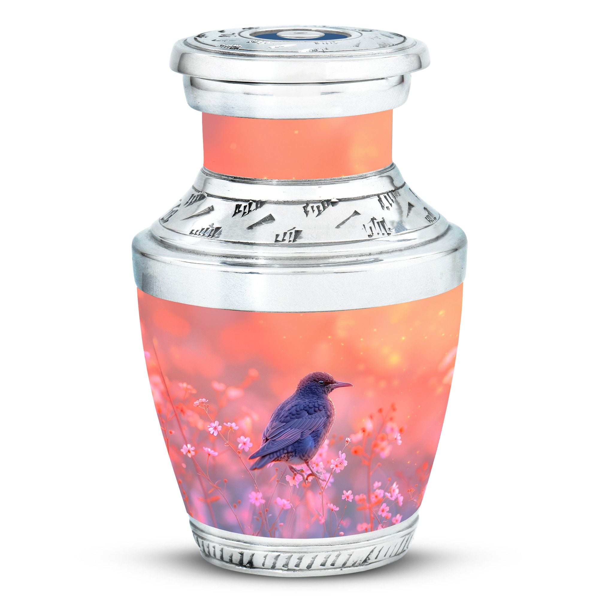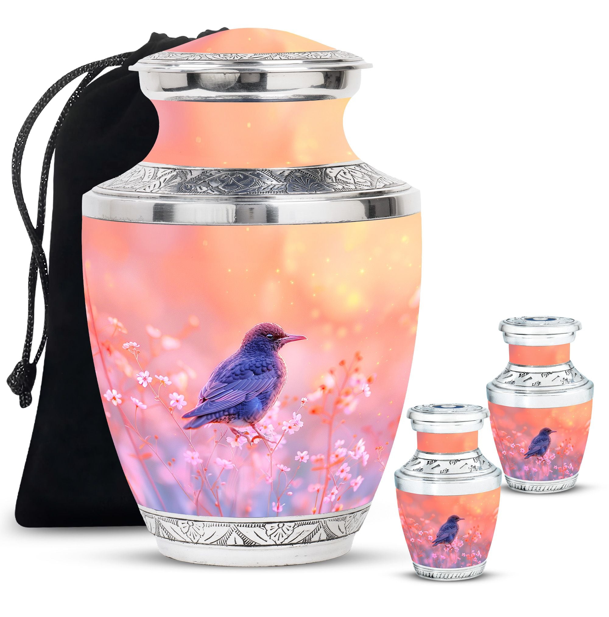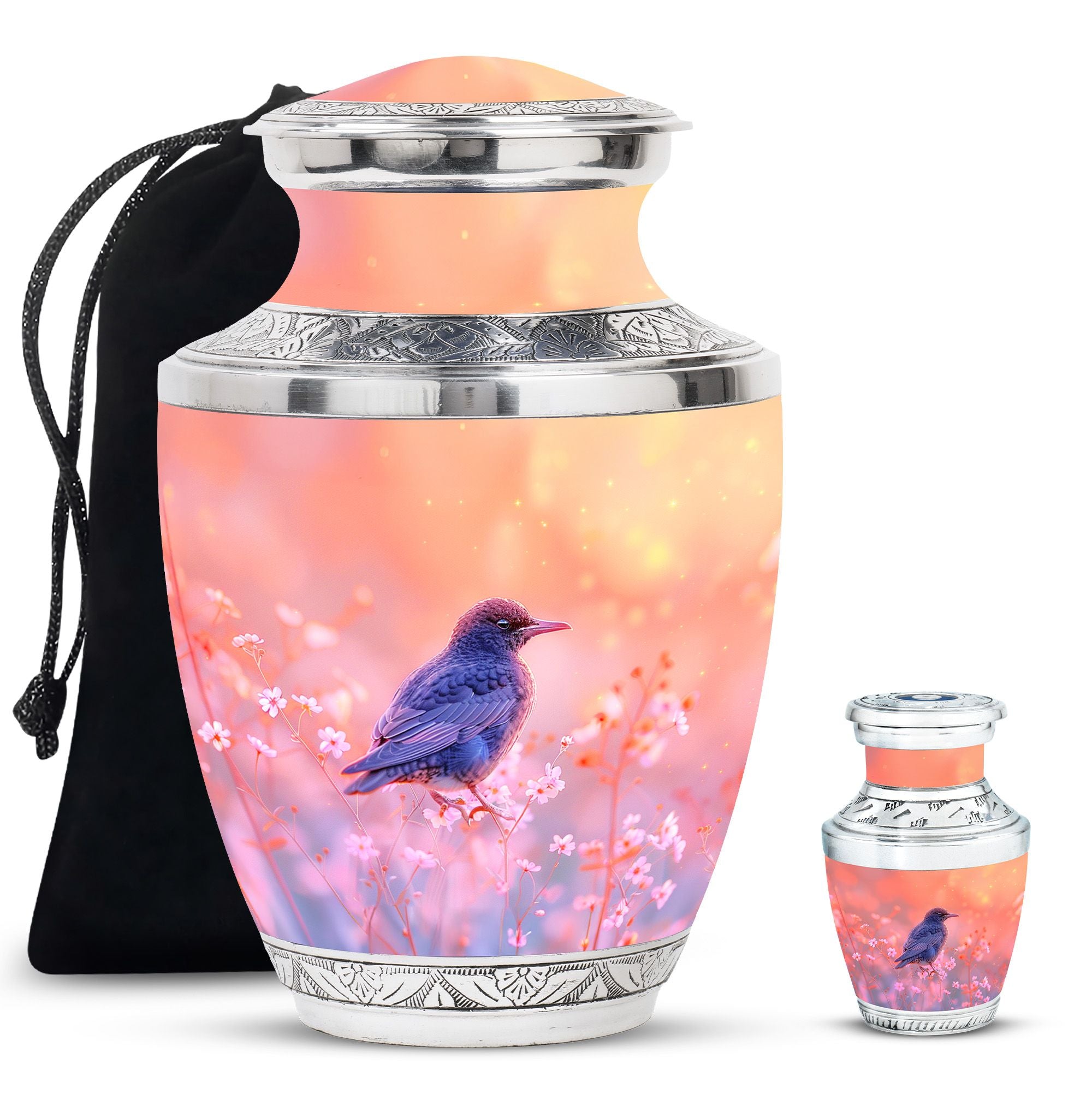 Crafted from durable aluminium, this urn combines delicate artistry with long-lasting strength. Its secure screw-top lid ensures the ashes are safely stored, while the 10-inch height and 200-cubic-inch capacity make it suitable as a funeral urns for human ashes small, small funeral urns, or even a mini keepsake funeral urn. The soft pink design and elegant solitary bird motif reflect serenity and grace, making it perfect for funeral adult urn or funeral urn use.