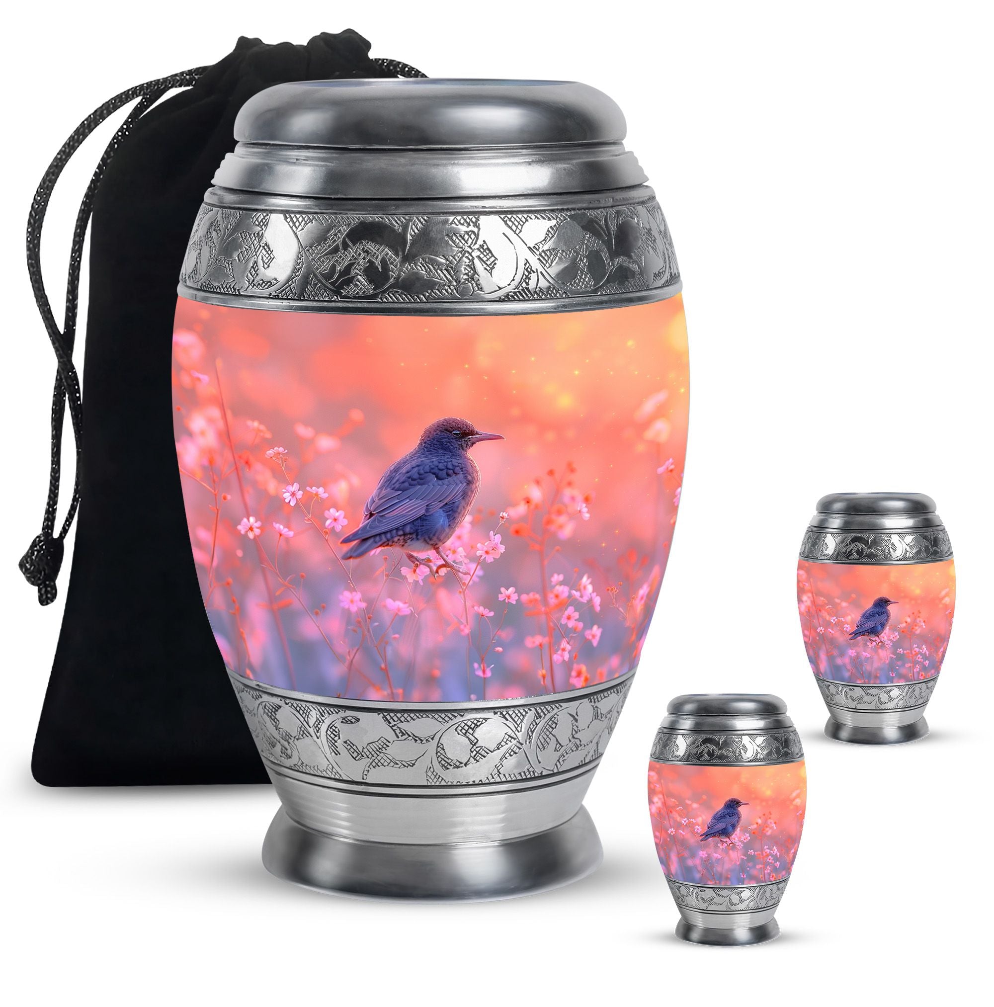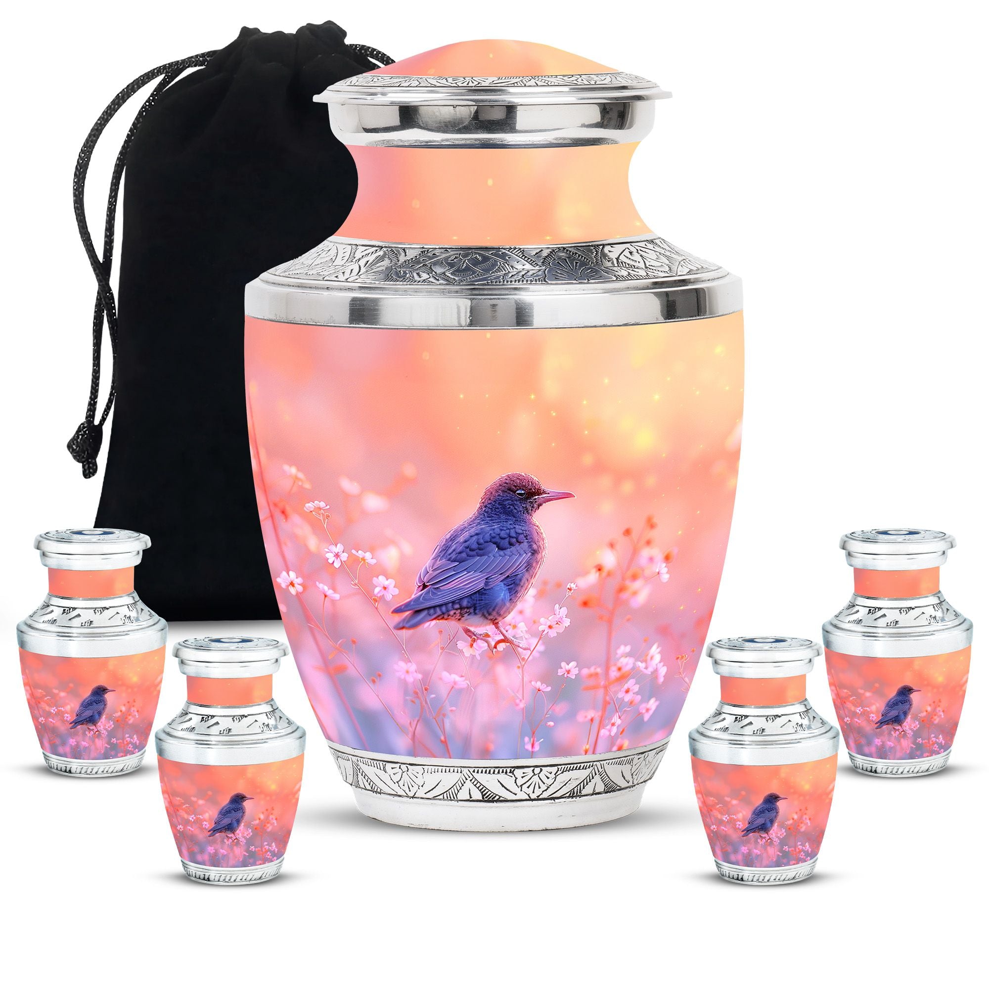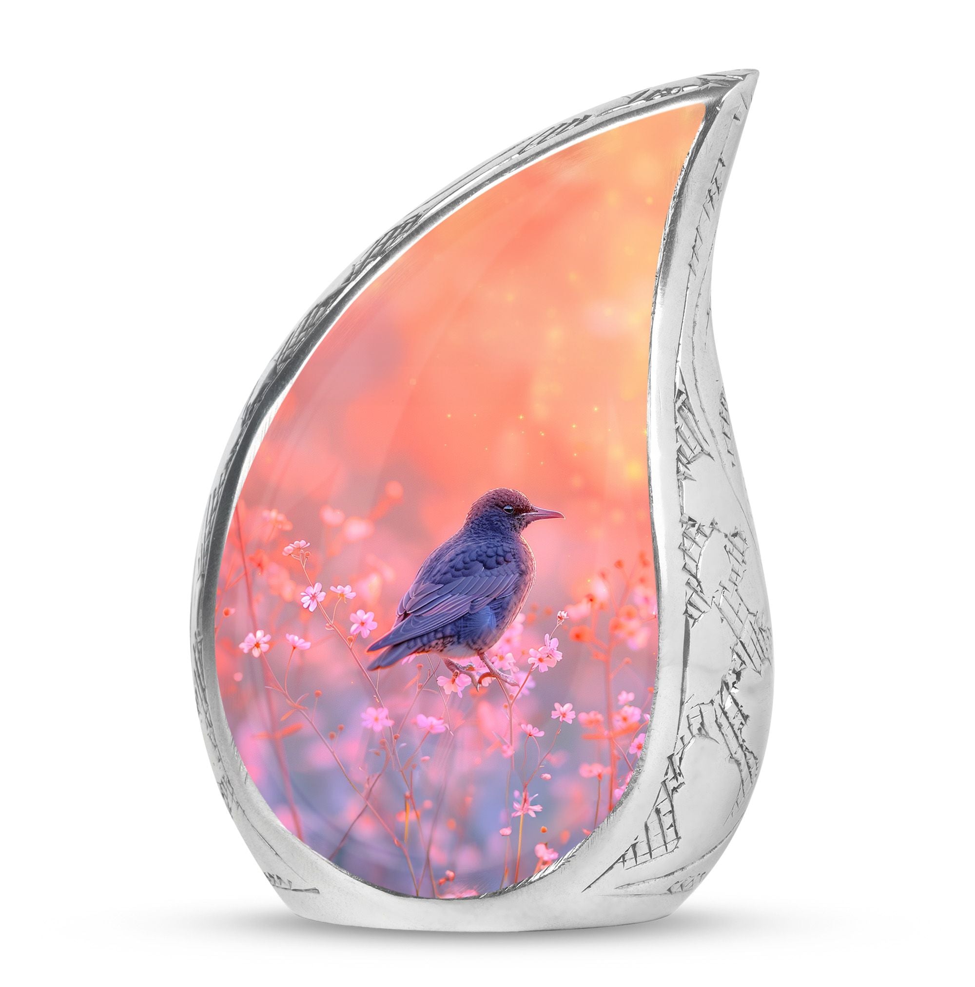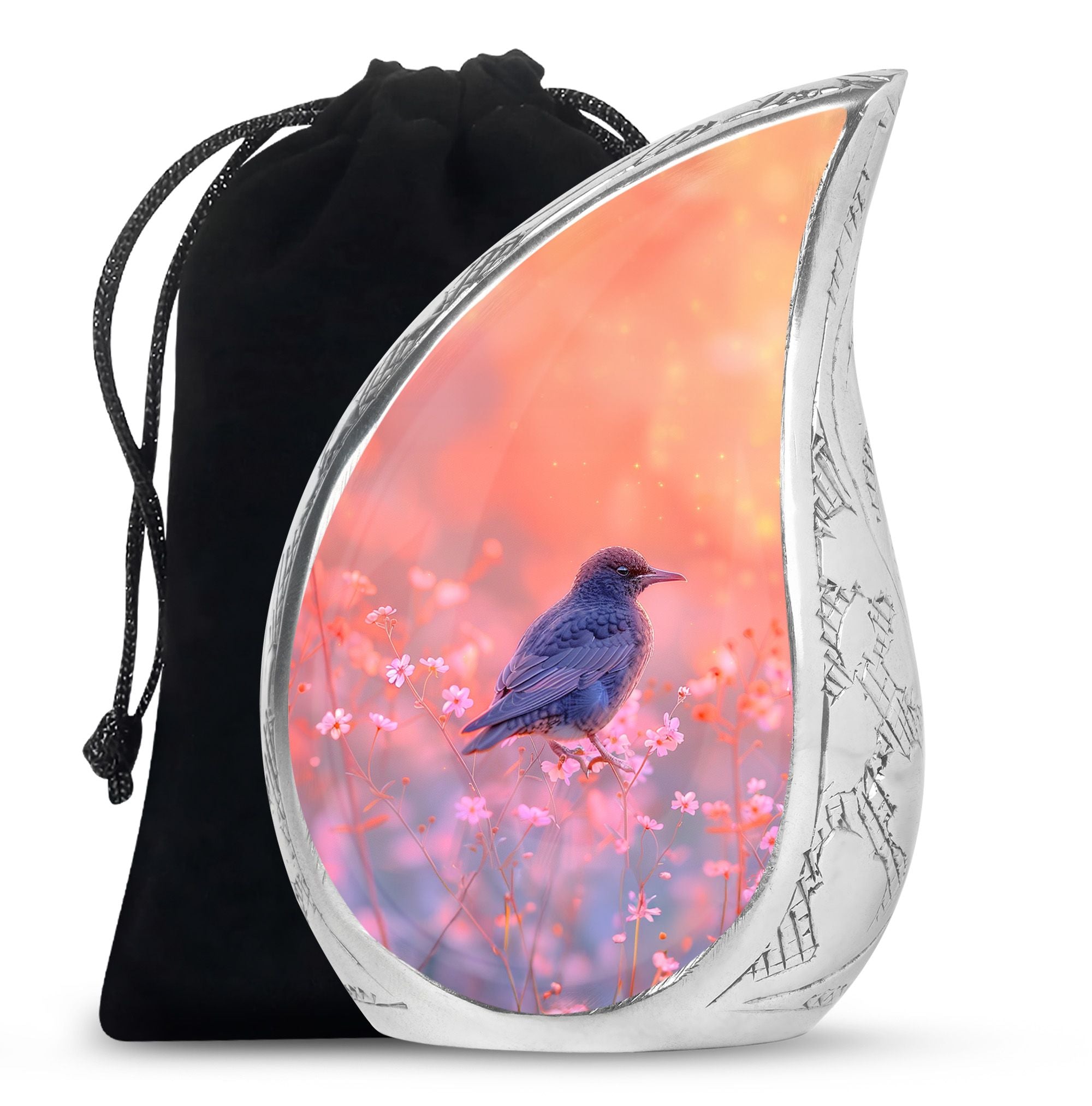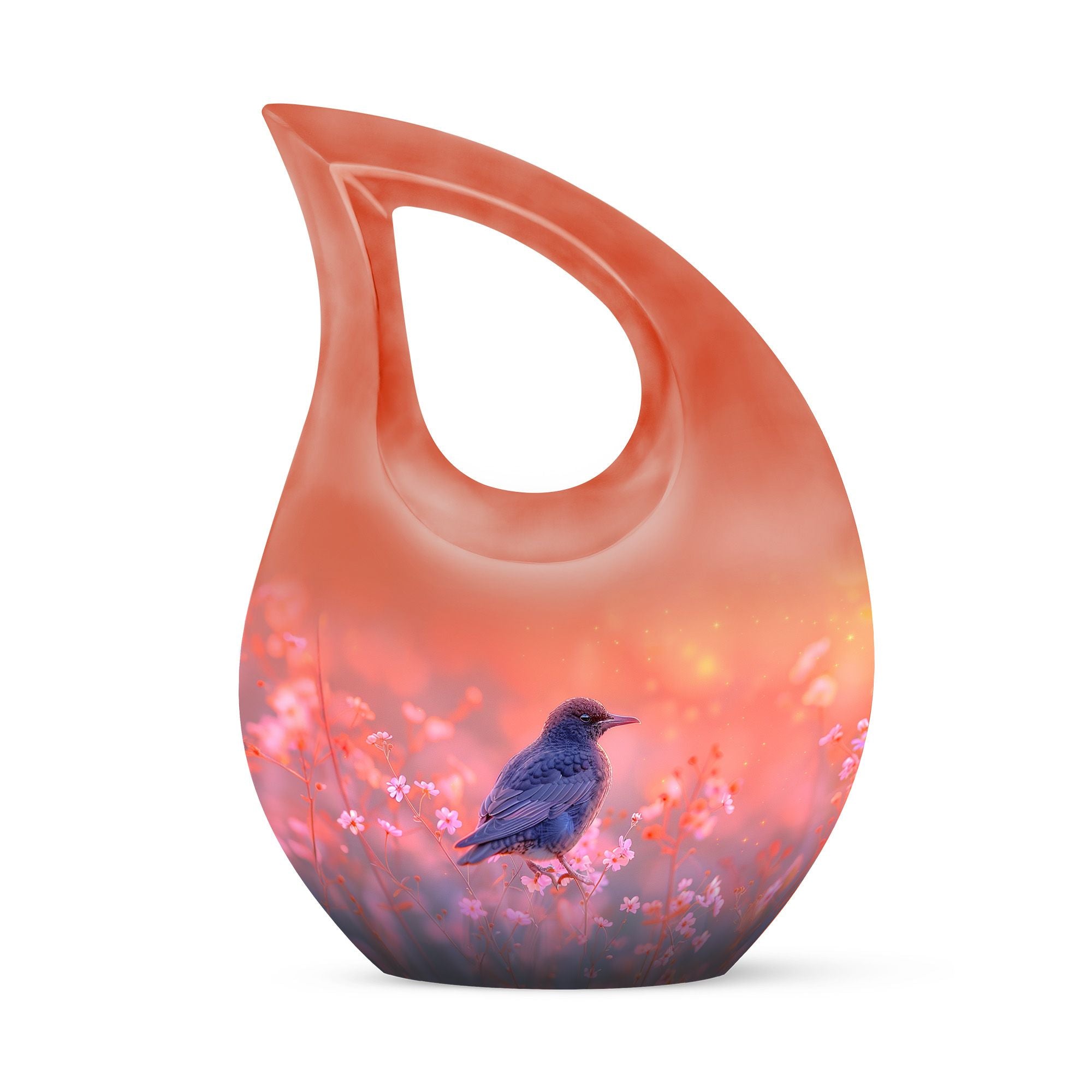 Crafted from durable aluminium, this urn combines delicate artistry with long-lasting strength. Its secure screw-top lid ensures the ashes are safely stored, while the 10-inch height and 200-cubic-inch capacity make it suitable as a funeral urns for human ashes small, small funeral urns, or even a mini keepsake funeral urn. The soft pink design and elegant solitary bird motif reflect serenity and grace, making it perfect for funeral adult urn or funeral urn use.