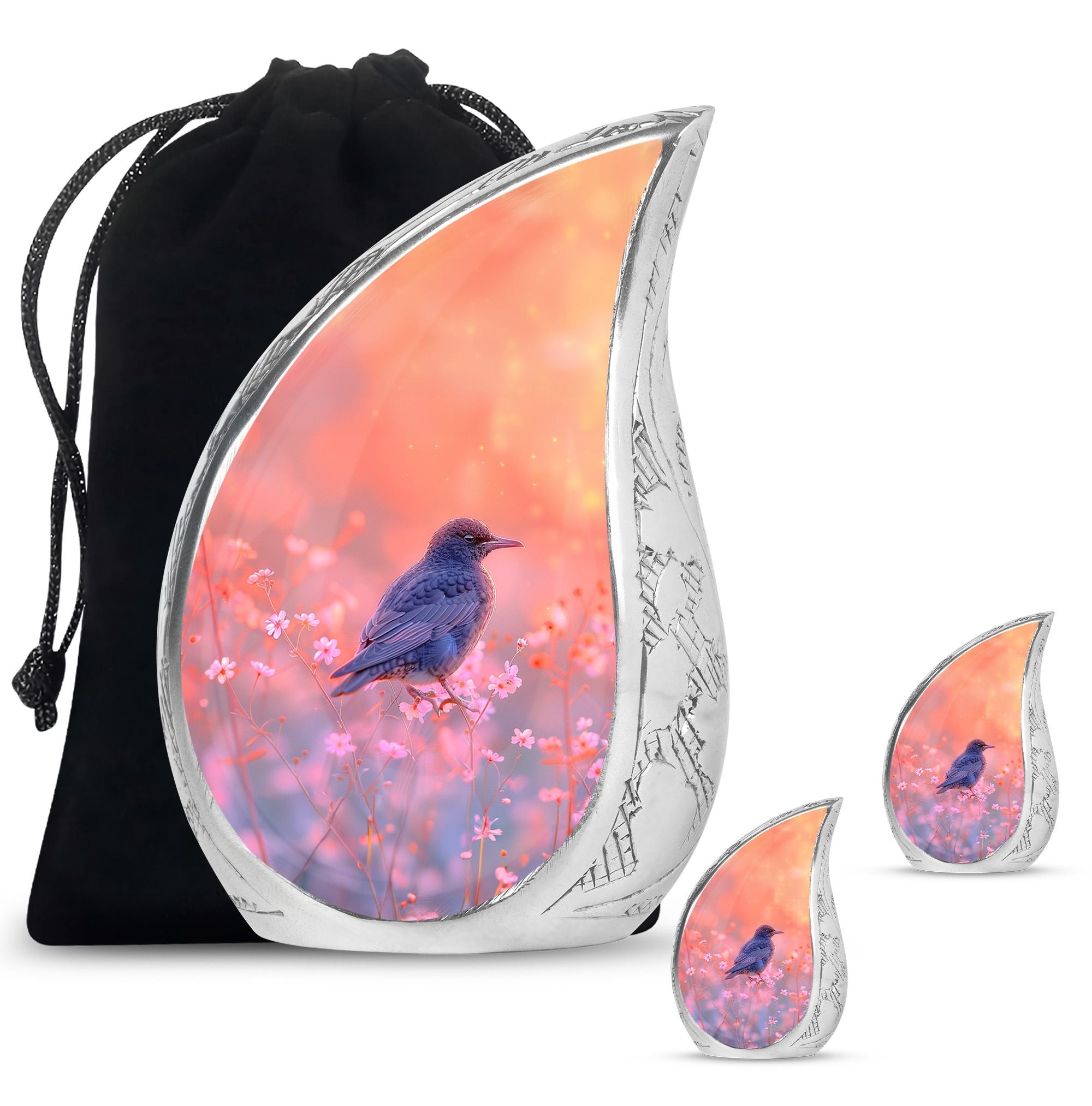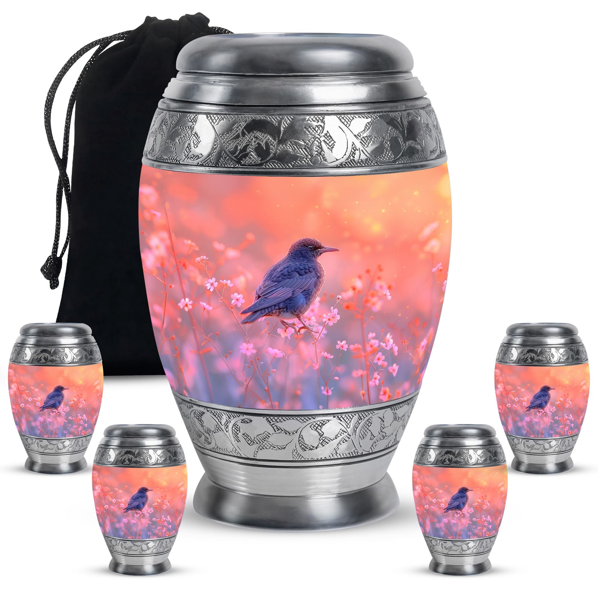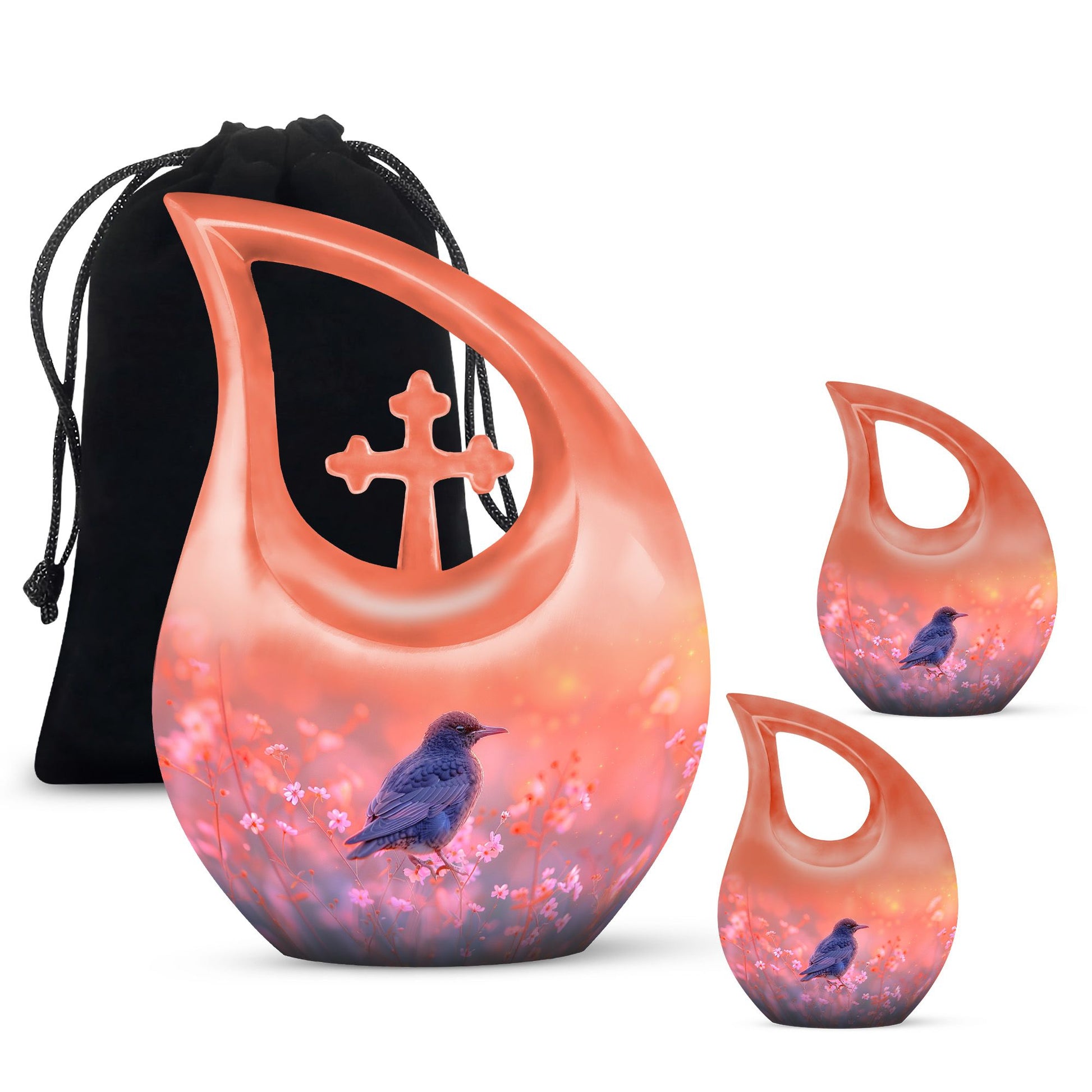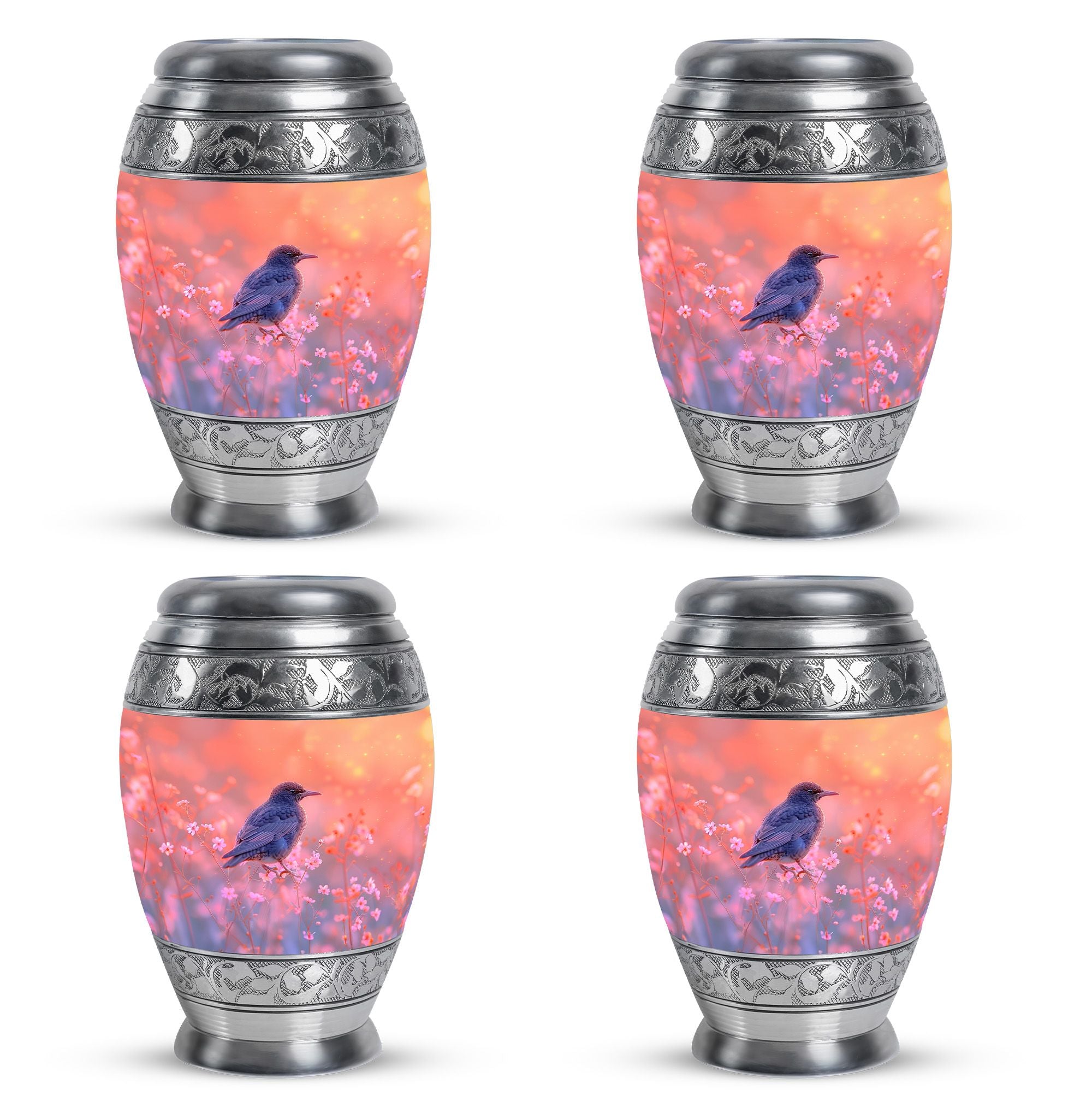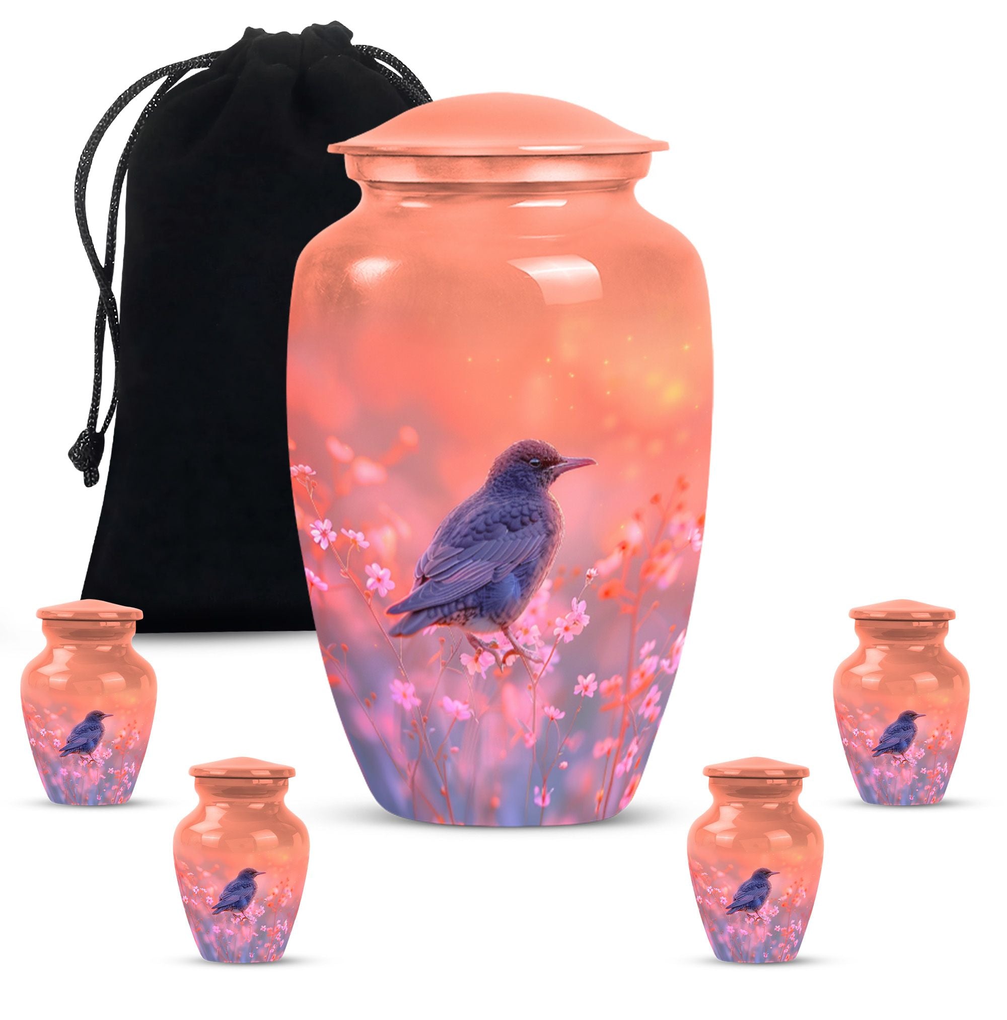 Crafted from durable aluminium, this urn combines delicate artistry with long-lasting strength. Its secure screw-top lid ensures the ashes are safely stored, while the 10-inch height and 200-cubic-inch capacity make it suitable as a funeral urns for human ashes small, small funeral urns, or even a mini keepsake funeral urn. The soft pink design and elegant solitary bird motif reflect serenity and grace, making it perfect for funeral adult urn or funeral urn use.