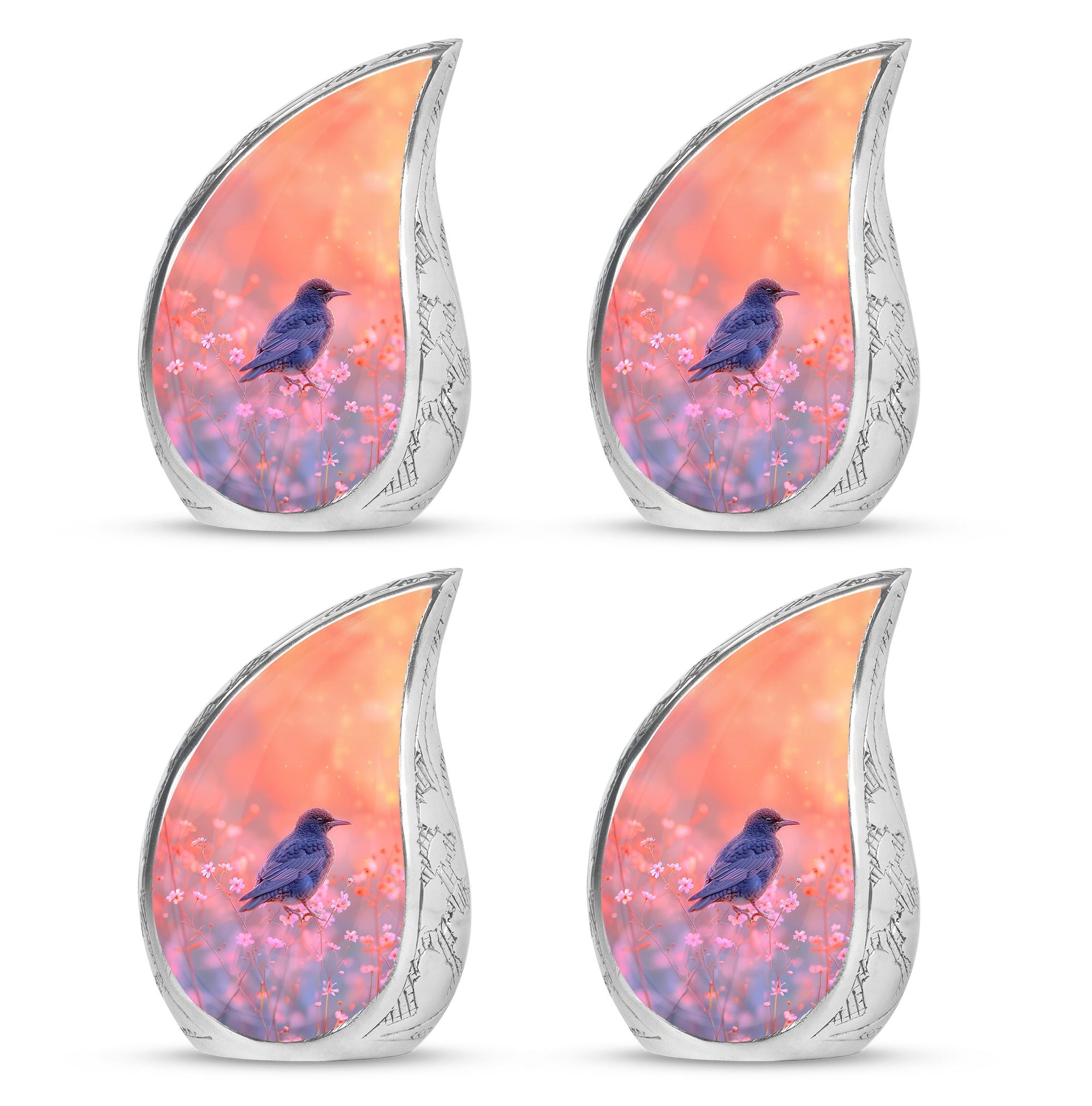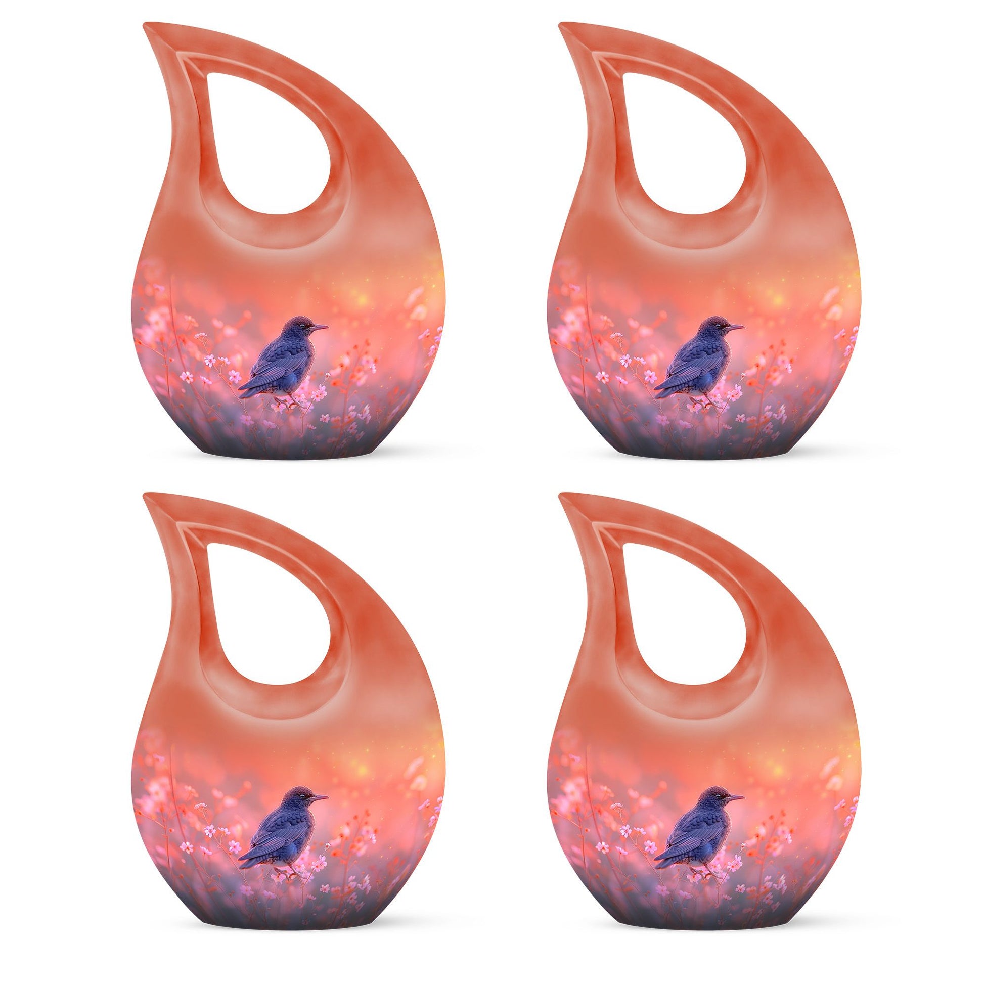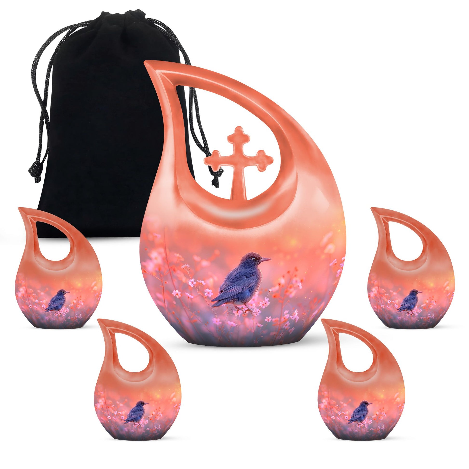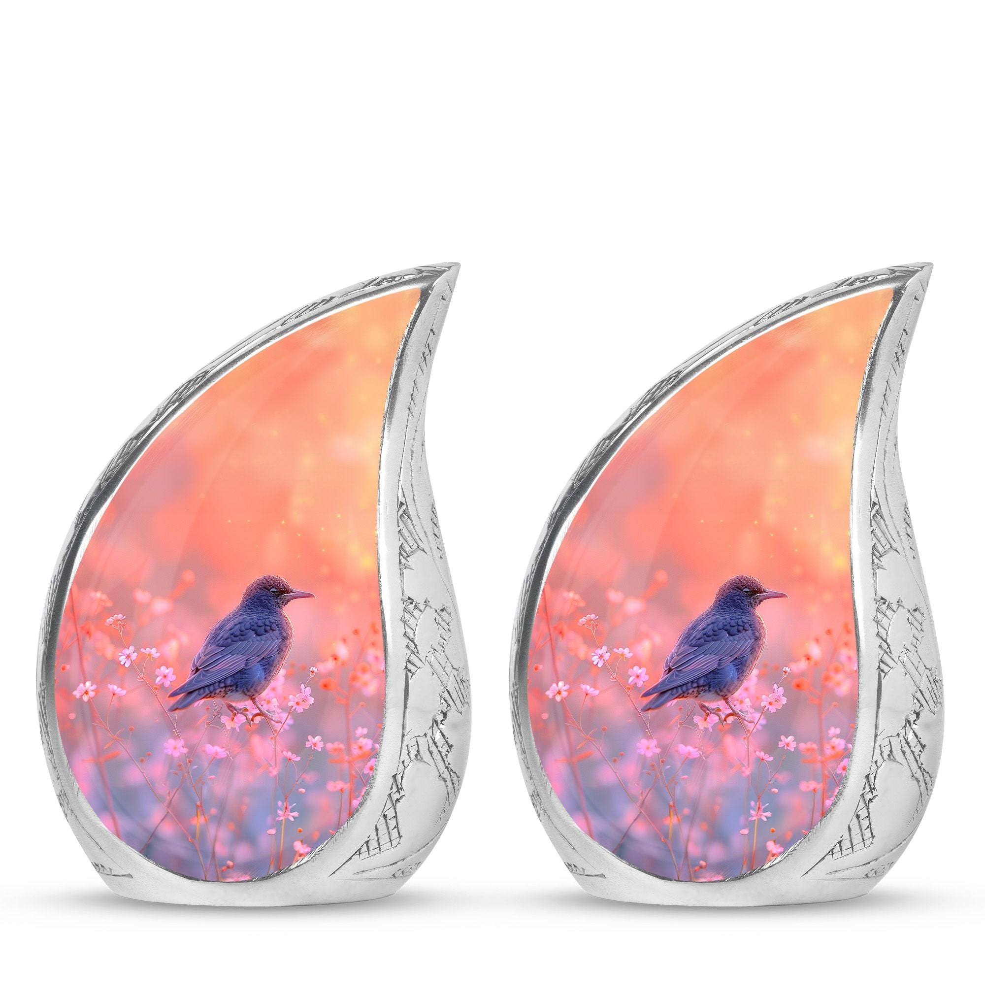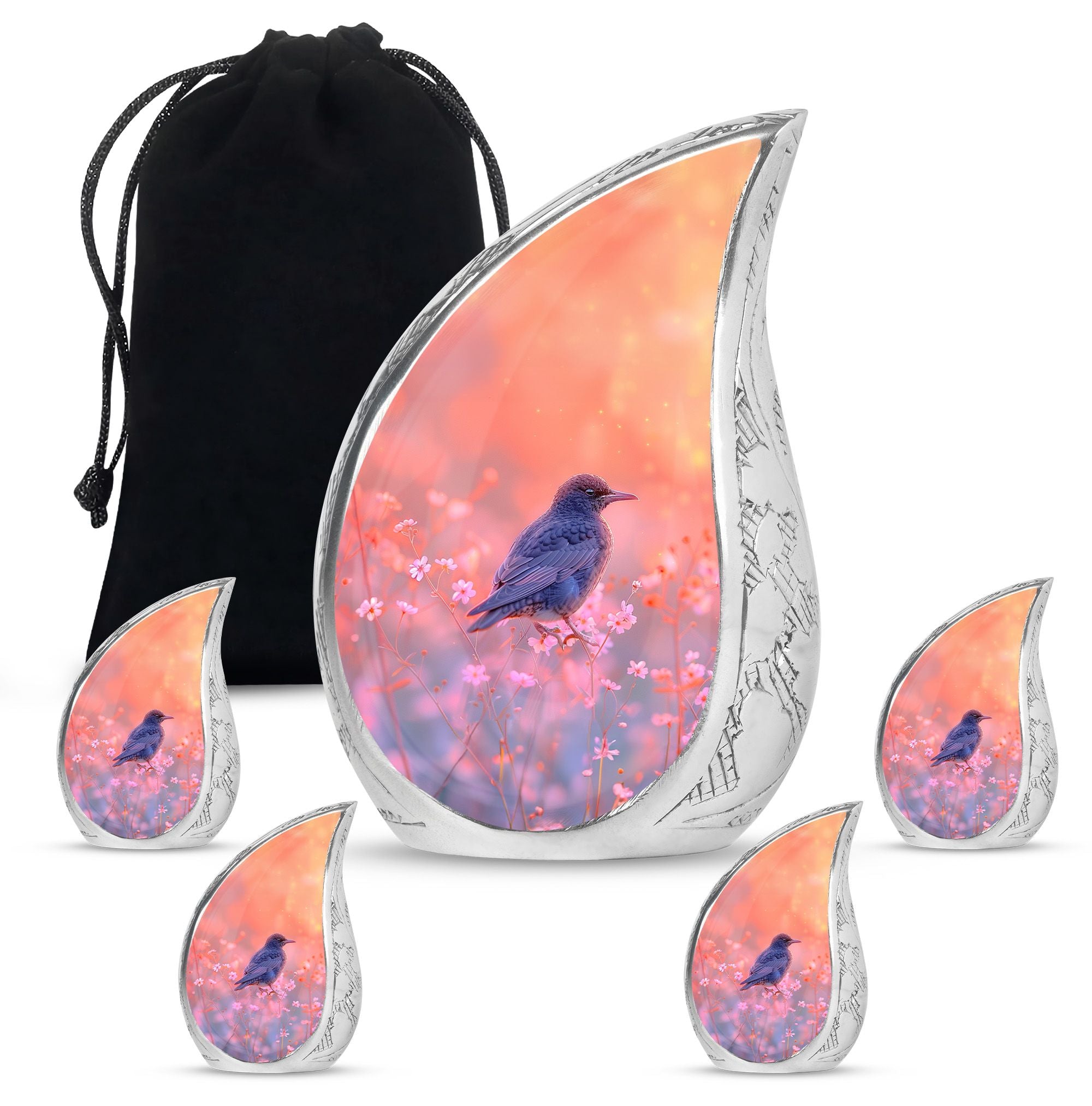 Crafted from durable aluminium, this urn combines delicate artistry with long-lasting strength. Its secure screw-top lid ensures the ashes are safely stored, while the 10-inch height and 200-cubic-inch capacity make it suitable as a funeral urns for human ashes small, small funeral urns, or even a mini keepsake funeral urn. The soft pink design and elegant solitary bird motif reflect serenity and grace, making it perfect for funeral adult urn or funeral urn use.
