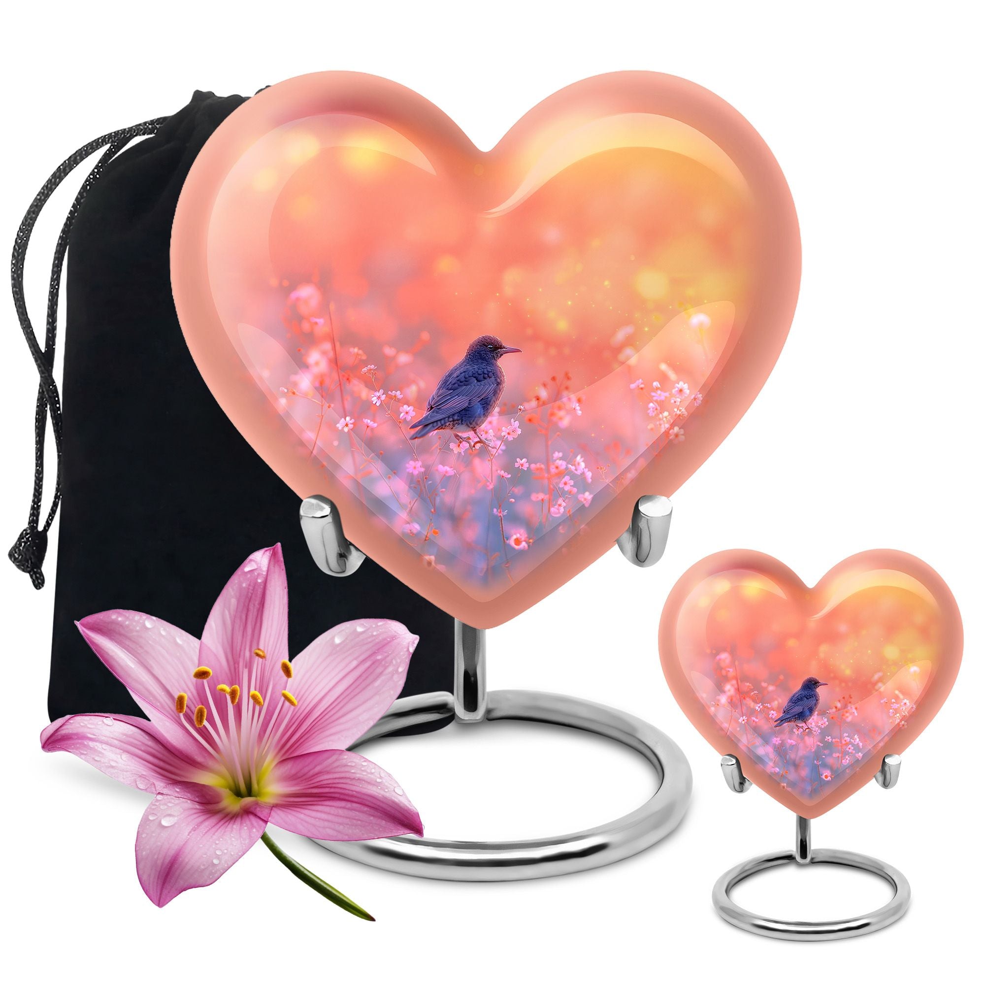 Celebrate the life of a cherished woman with the Solitary Bird Memorial Ashes Urn for Women. This tenderly designed pink cremation urn provides a meaningful tribute, ideal for funeral cremation urns for ashes, funeral urn ashes, or keepsake funeral urns, offering comfort and dignity in honoring her memory.