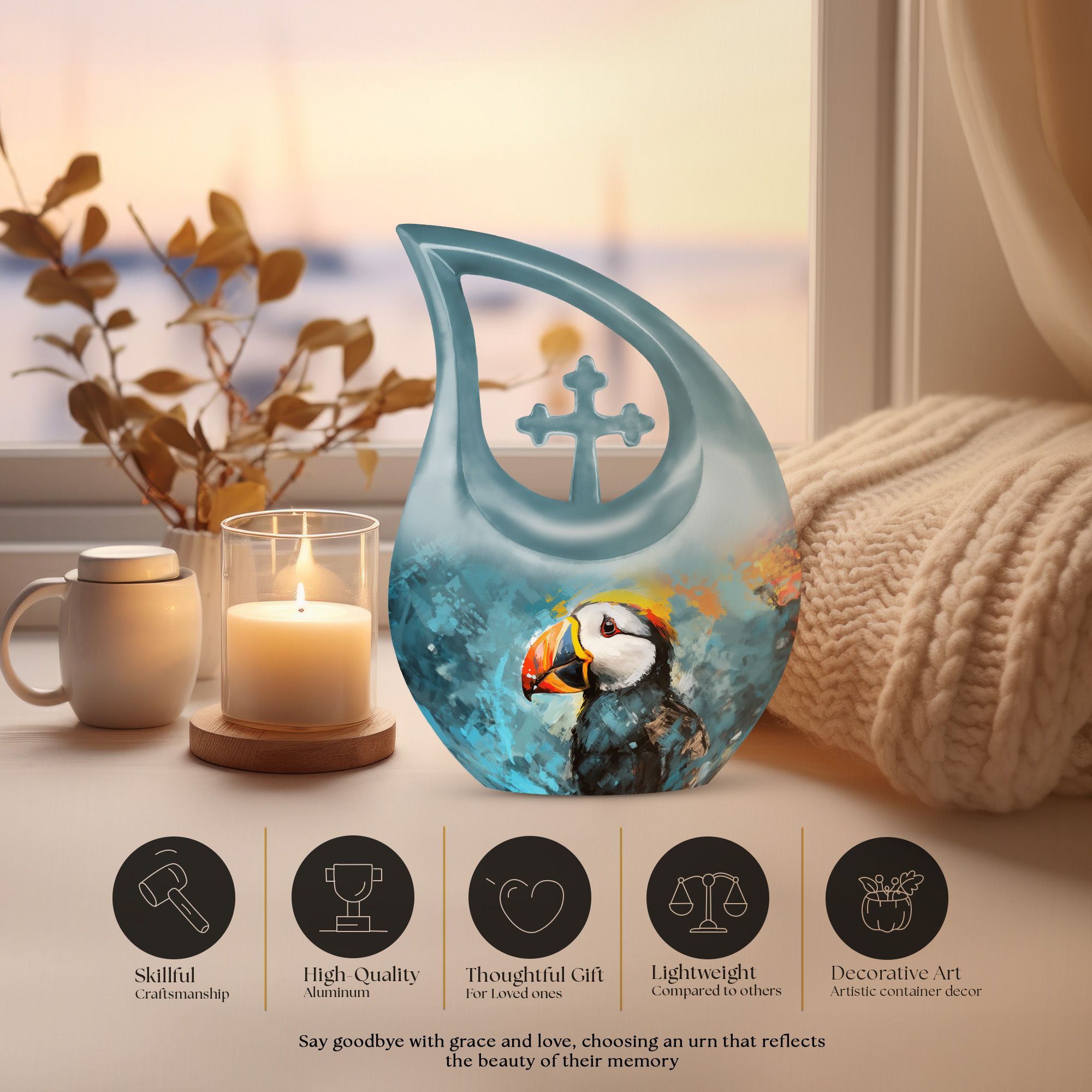 Symbolizing guidance, peace, and unwavering loyalty, this Puffin Bird Keepsake Memorial Urn offers a touching and meaningful way to honor a loved one. Its heartfelt design makes it ideal for families seeking Unique Urns for Human Ashes, Unique Urns for Ashes, or a beautiful tribute that stands apart with grace and symbolism.