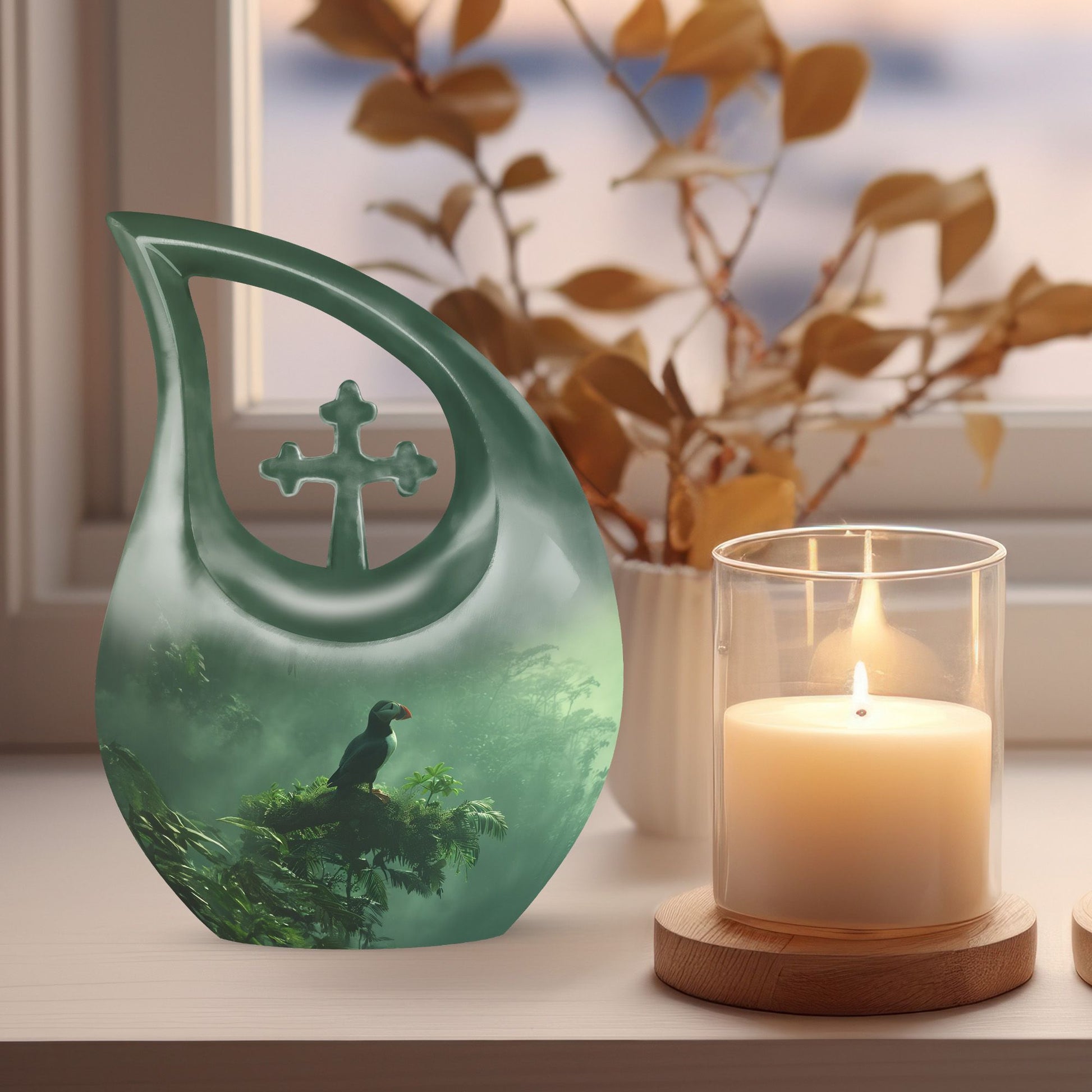 This Puffin Bird Cremation Urn For Ashes offers a heartfelt and symbolic resting place, handcrafted to honor cherished memories with dignity. Designed for families seeking Funeral Urns For Adult Ashes Men or Adult Urns For Human Ashes Women, its peaceful puffin artwork represents guidance, love, and a gentle final journey.