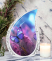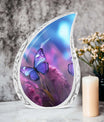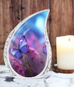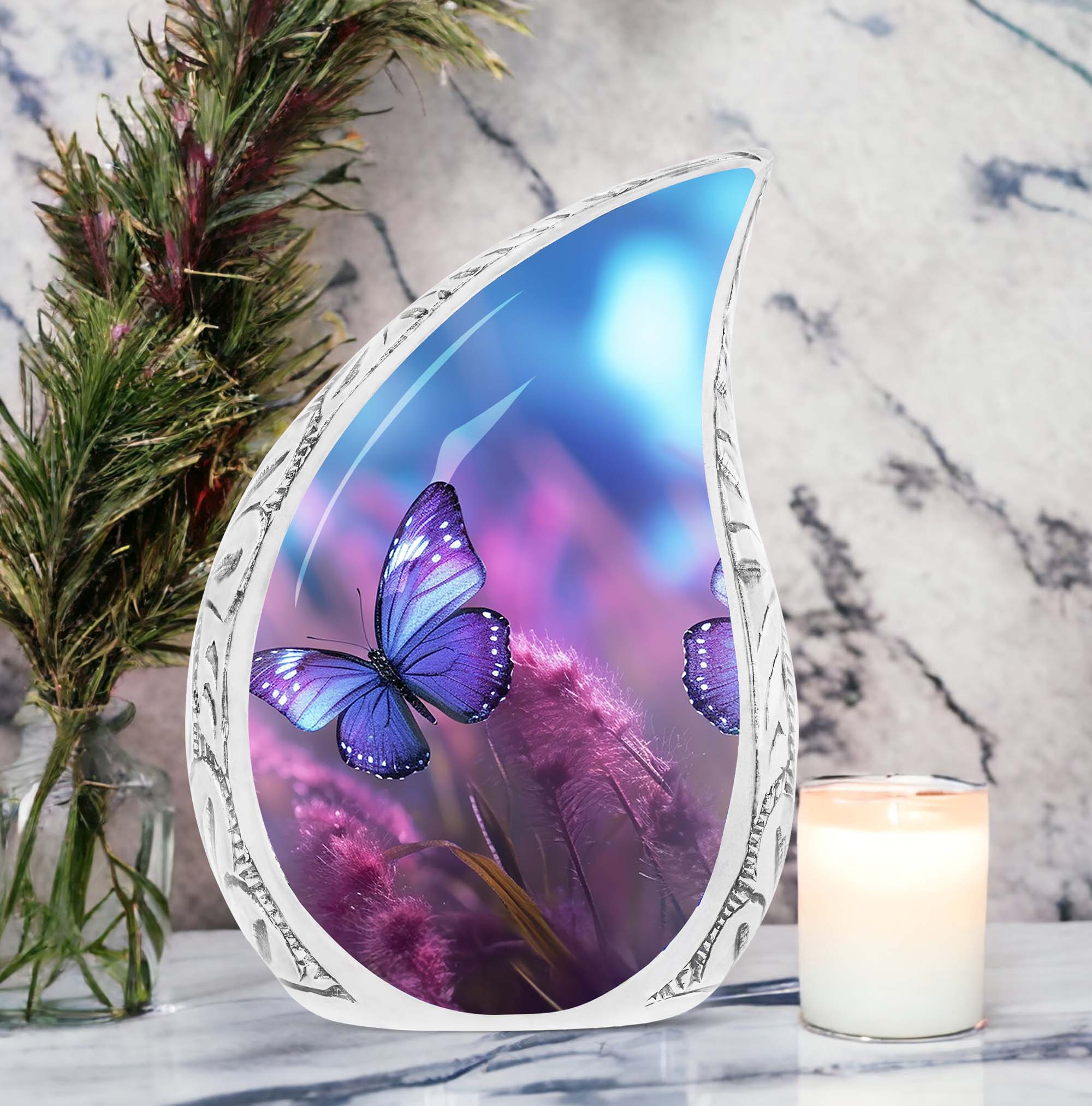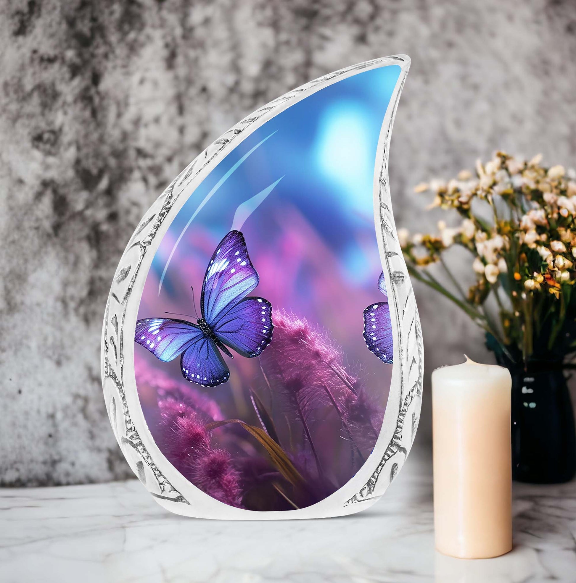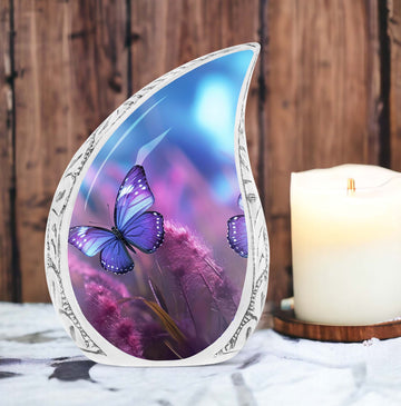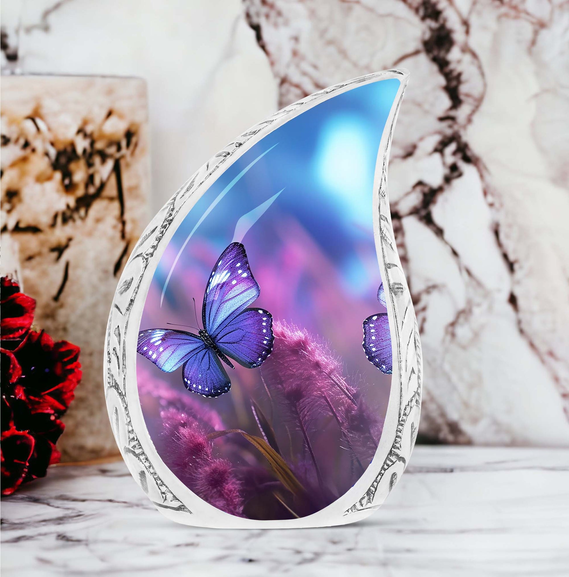 The Purple Butterfly Urn for Human Ashes – Floral Urn For Mom Ashes is a heartfelt tribute designed to honor the memory of a beloved mother or woman. With its vibrant butterfly and floral artwork, this urn reflects transformation, peace, and eternal love, providing comfort during moments of remembrance.