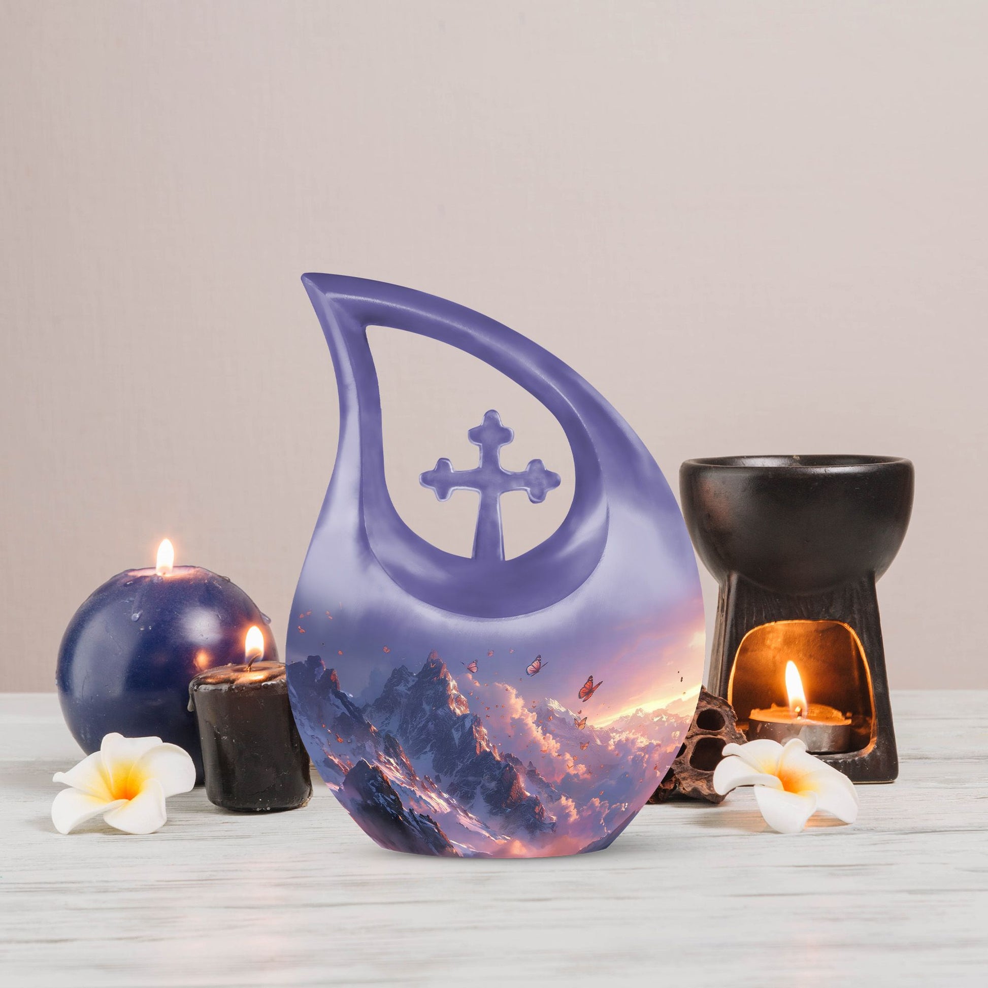 As one of the most meaningful small urns for cremation ashes or full-sized cremation urns adult, the Purple Urn with Mountain Motif stands as a serene expression of love—reminding us that every sunset leads to a new dawn of remembrance and peace.