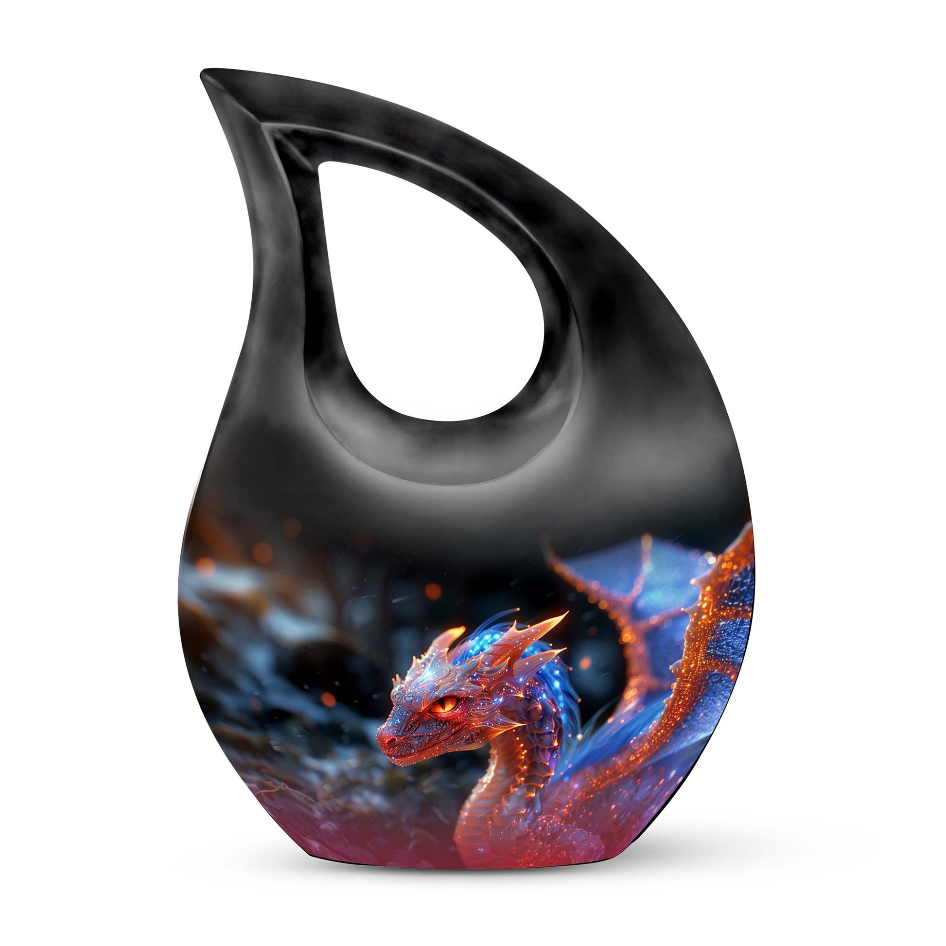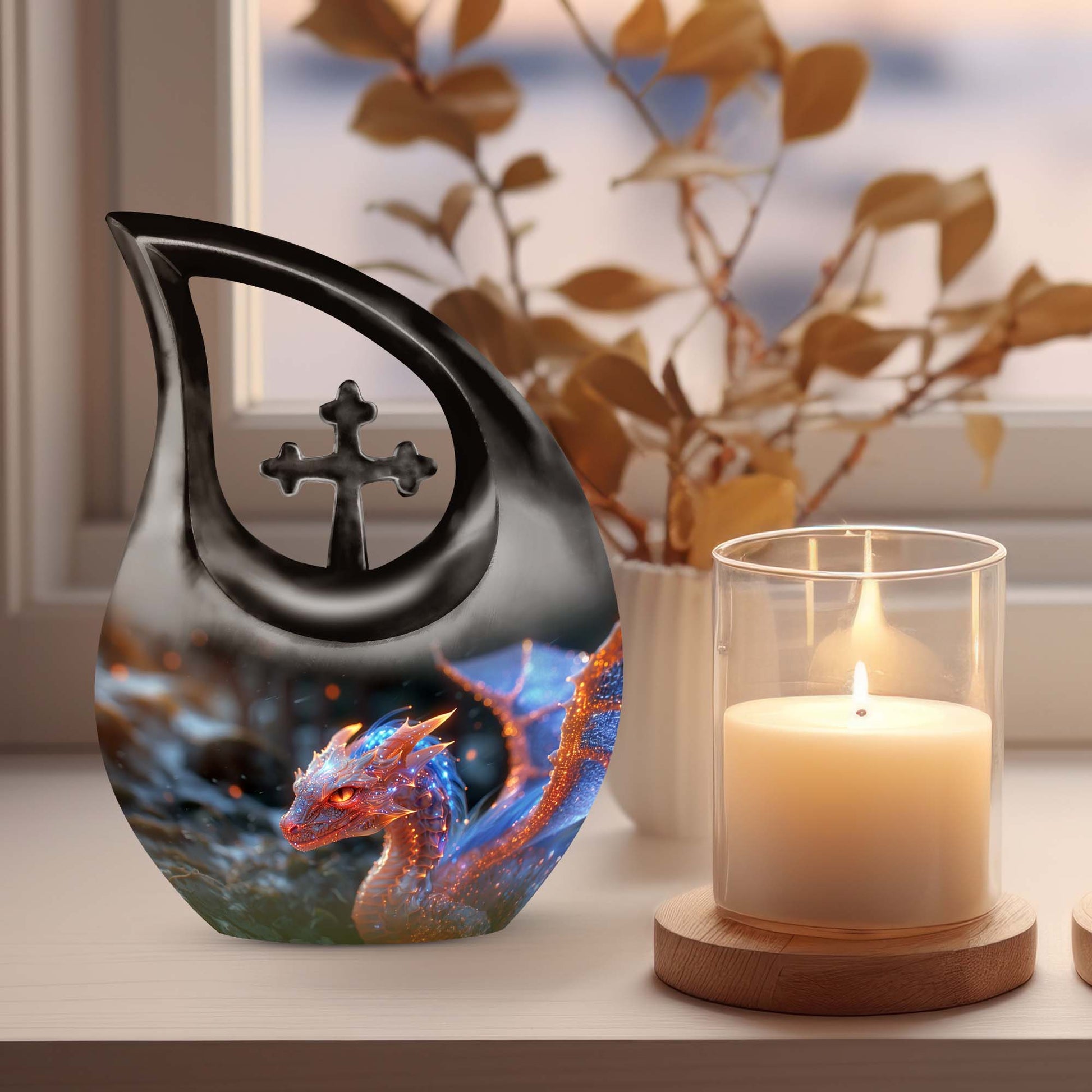 Expertly shaped from durable aluminum, this cremation urn human tribute features a striking dragon design in soft pink hues, representing protection, courage, and eternal guidance. Its smooth finish, secure screw-top lid, and generous capacity make it ideal for cremation urns for adults humans and families seeking a reliable cremation urn adult human memorial. The detailed artwork and balanced form ensure it displays beautifully in any home or memorial space.