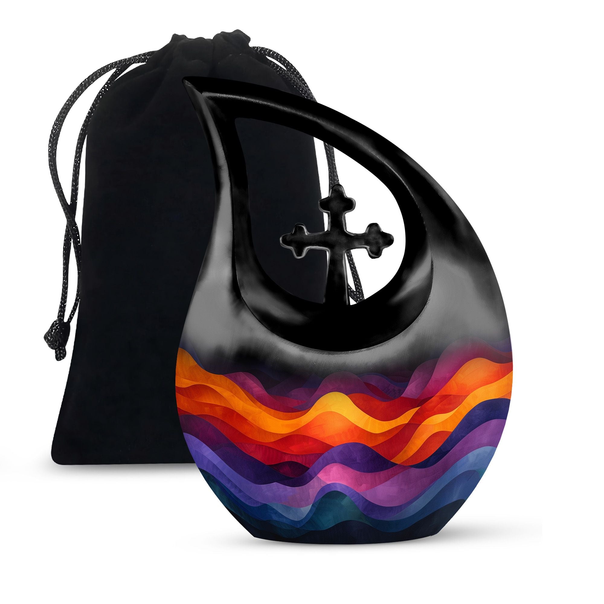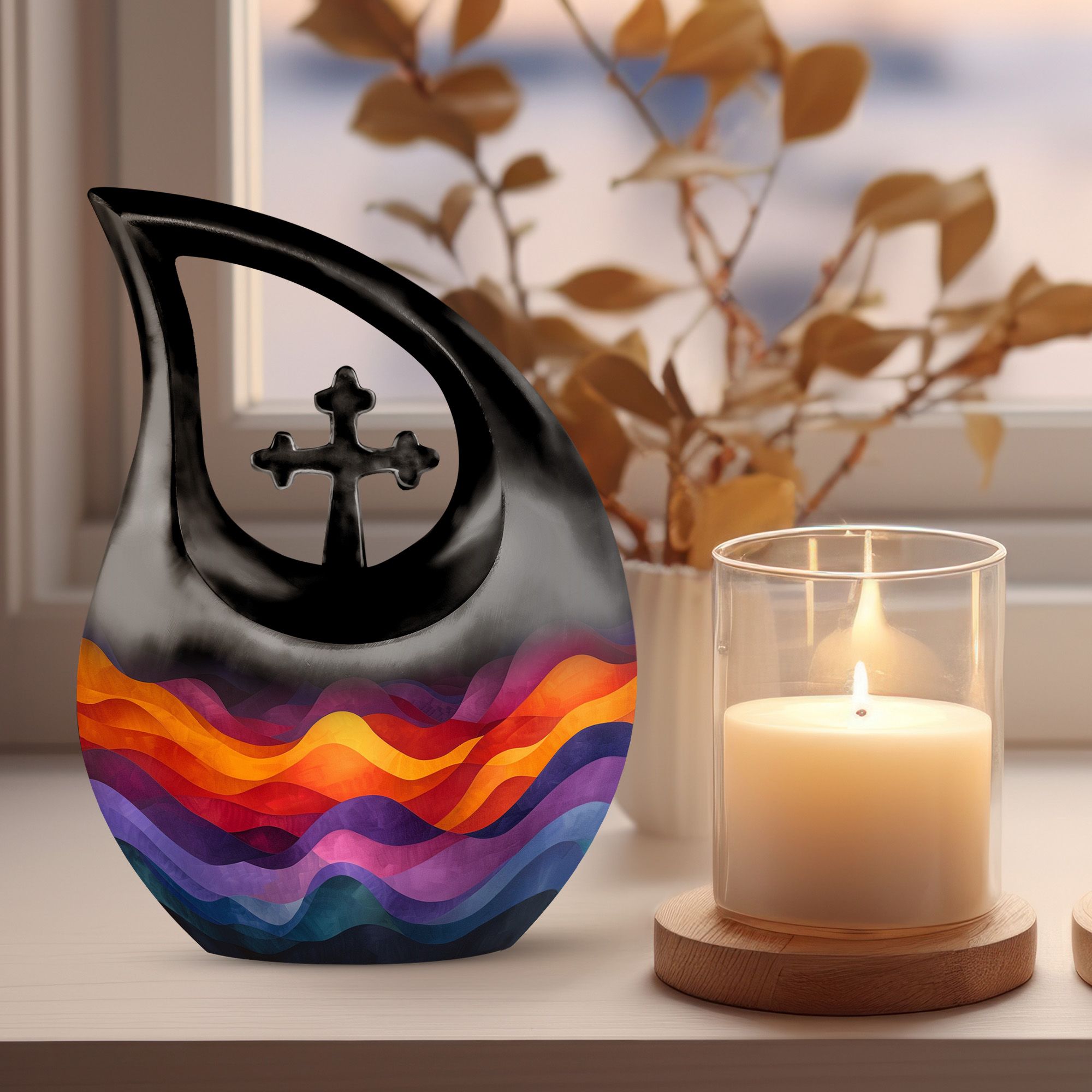 The Rainbow Waves Memorial Urn offers an uplifting expression of remembrance—celebrating life, love, and the colorful legacy your loved one leaves behind.