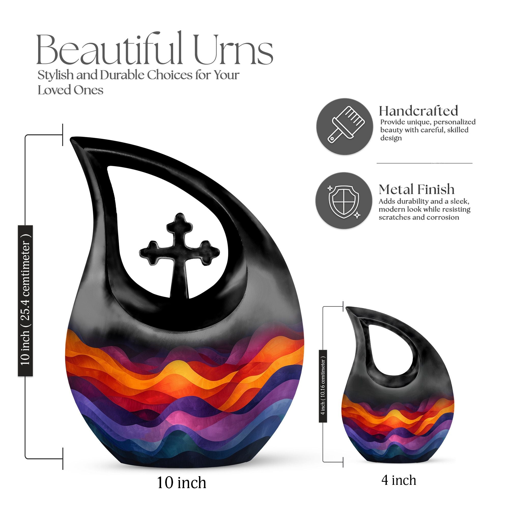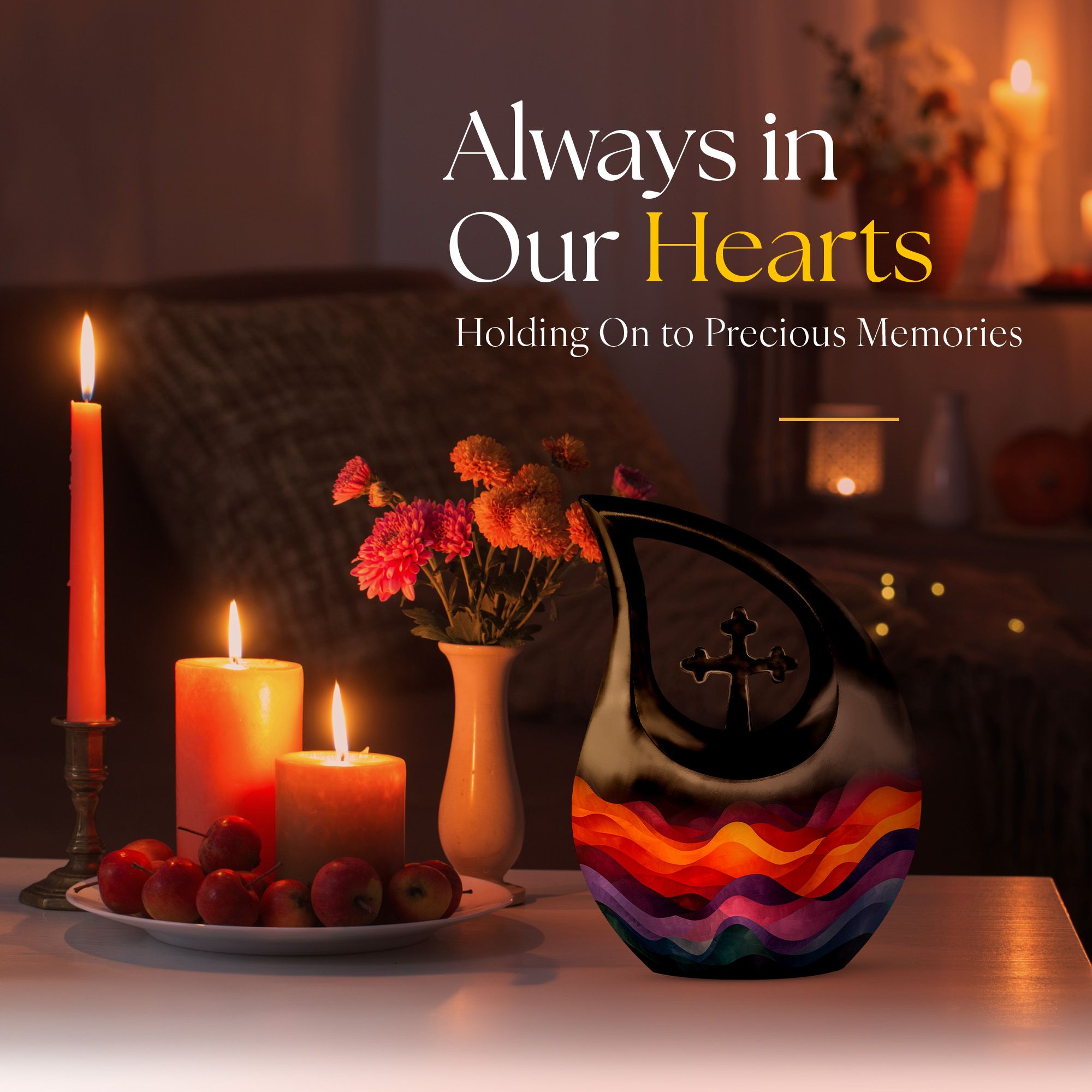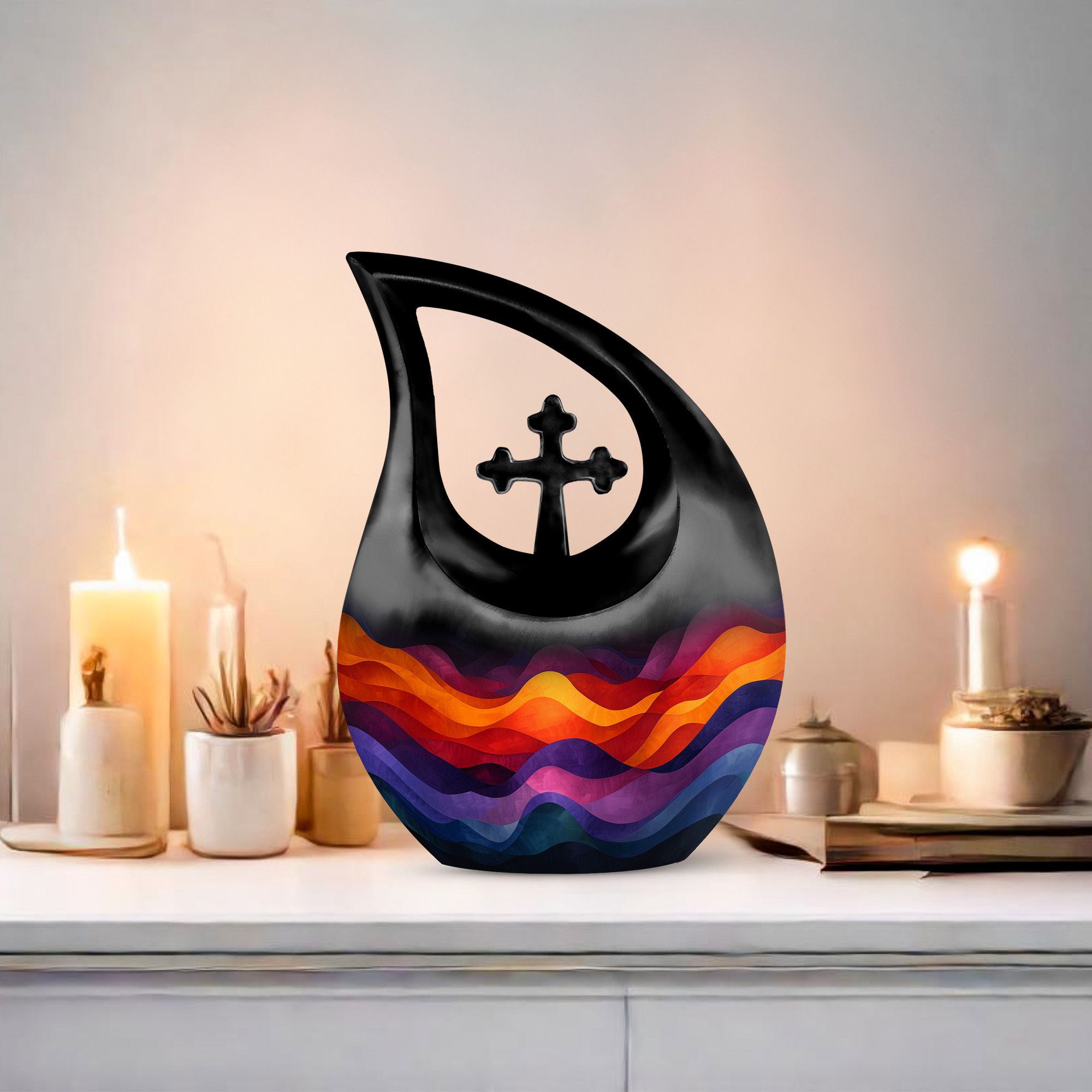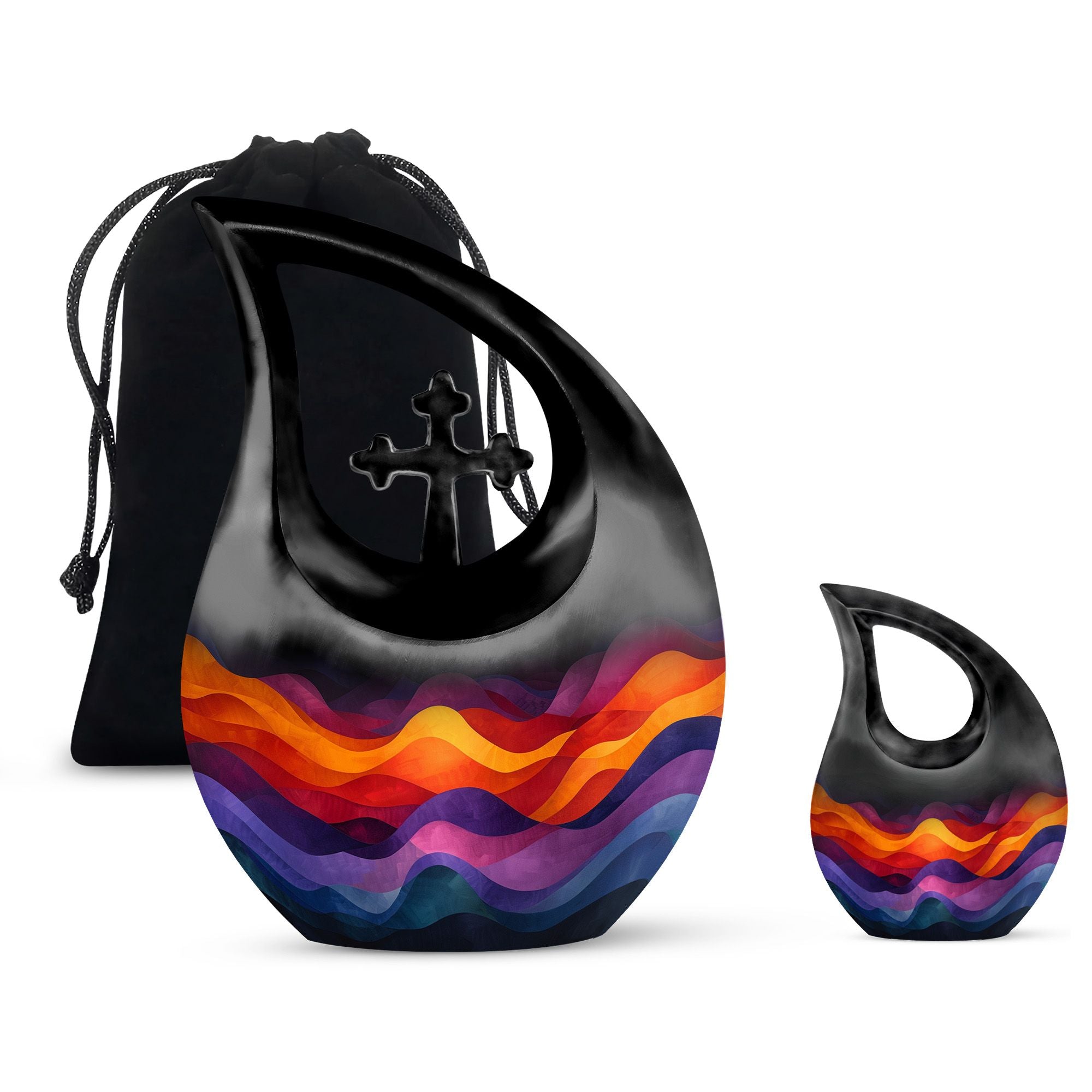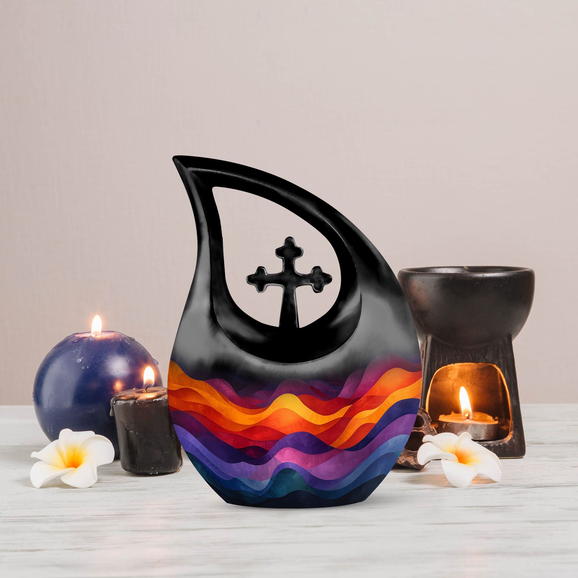 The Rainbow Waves Themed Urn – Colorful Memorial Urn for Burial offers a bright and uplifting tribute inspired by the beauty of color, hope, and eternal unity. Its flowing rainbow design symbolizes peace and continuity, making it a heartfelt choice for families seeking a meaningful urn for human ashes keepsake or a full-size memorial complemented by shared keepsakes for loved ones.