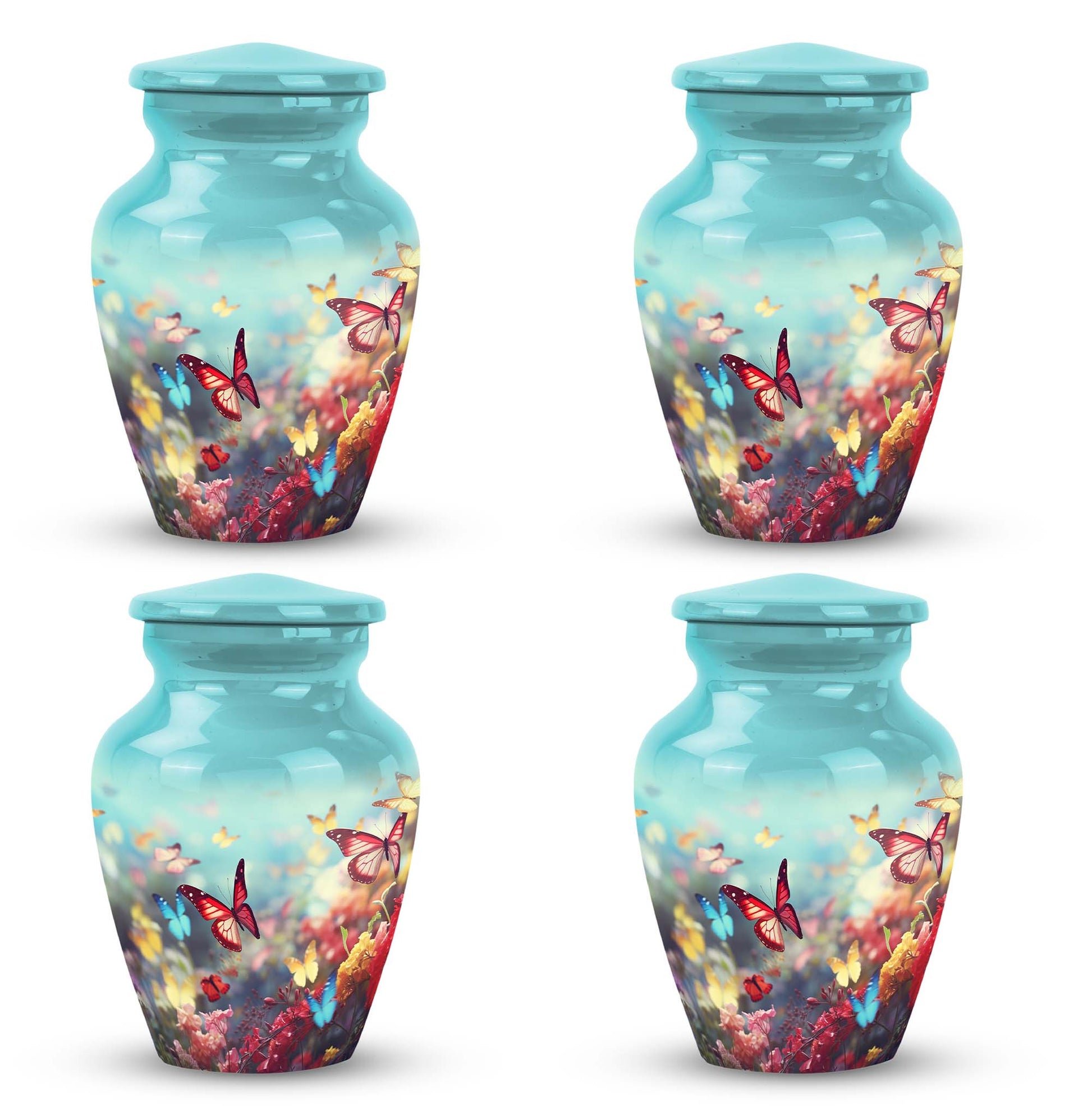 Convey the message 'sorry for your loss' in a distinctive and touching way with our Colorful Butterflies Urns for Human Ashes. Delicately made from quality Aluminium, this elegantly designed Large Urn, except for the design classification, stands tall at 10 inches and is feather-light with a weight of just 3.3 pounds. Perfectly sized with a capacity of 200 cubic inches, this memorial urn adds an extra layer of care with its velvet pouch, perfect for the containment of the ashes of your beloved one. The generous 3-inch size ensures that you have ample space to encapsulate your precious memories. You can also personalize this Classic Urn by engraving names, making it all the more special. Our memorial urns serve as a stunning and modern ashes holder and can be customized to your liking. Whether you are looking for Human Cremation Urns or Burial Urns for Ashes, our product ticks the right boxes while offering respect, sympathy, and comfort.