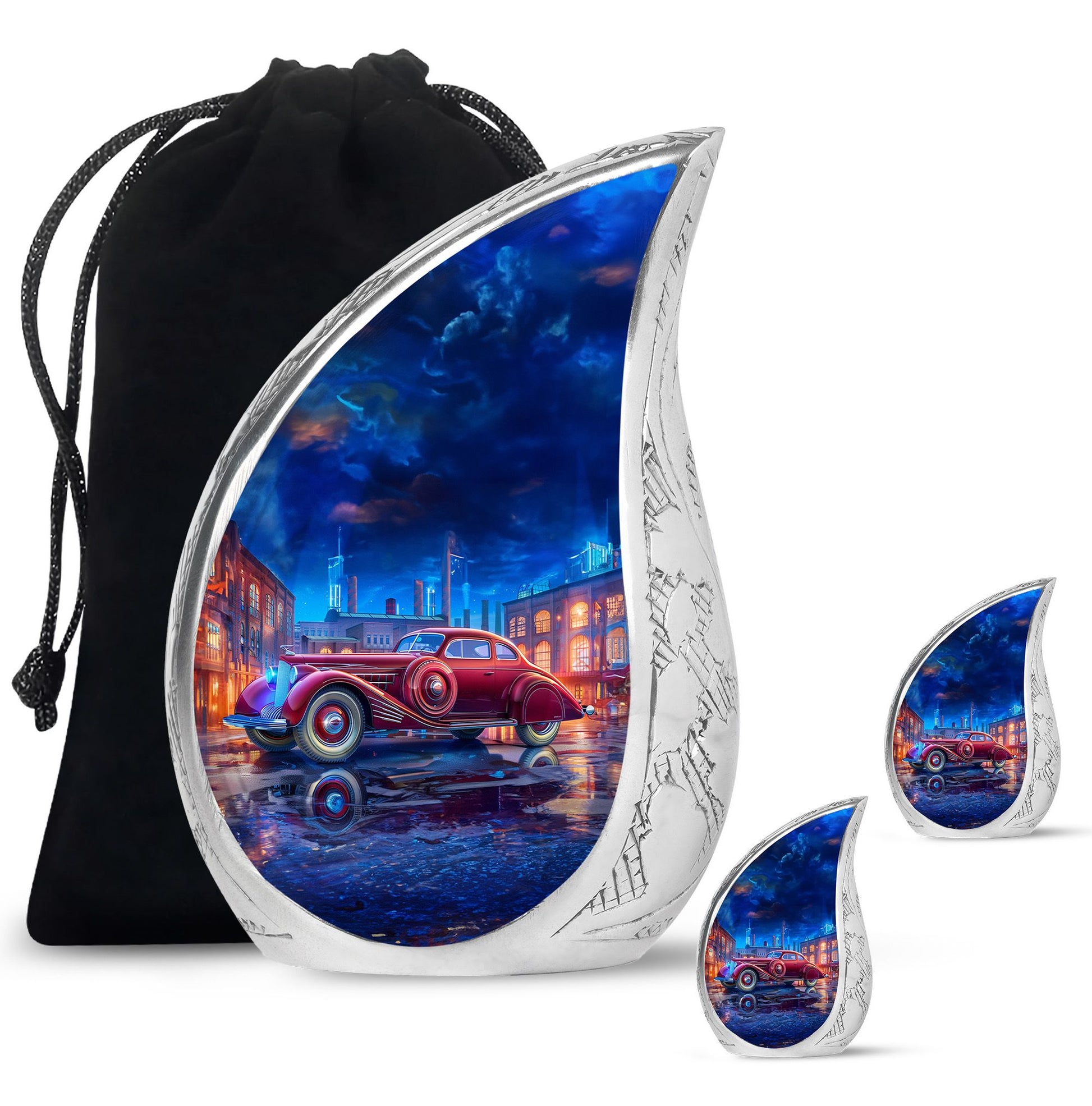 Honor the spirit of a life well-lived with this Custom Retro Car Burial Urn, a heartfelt way to preserve memories of your loved one. Designed for those who appreciated classic style and individuality, this beautiful urn for ashes adult male captures both personality and grace. It serves as a comforting reminder of cherished moments shared, offering peace and respect in times of remembrance.