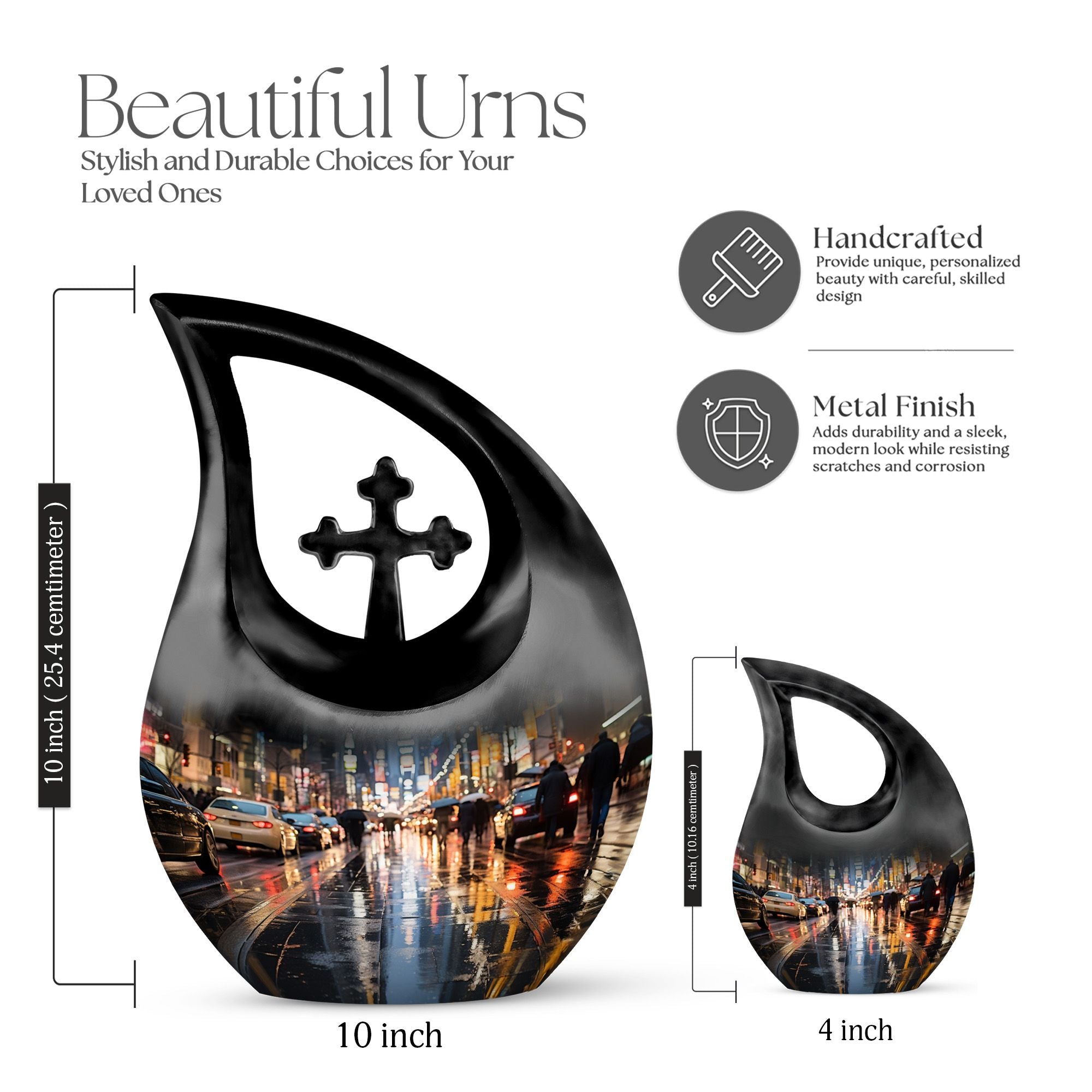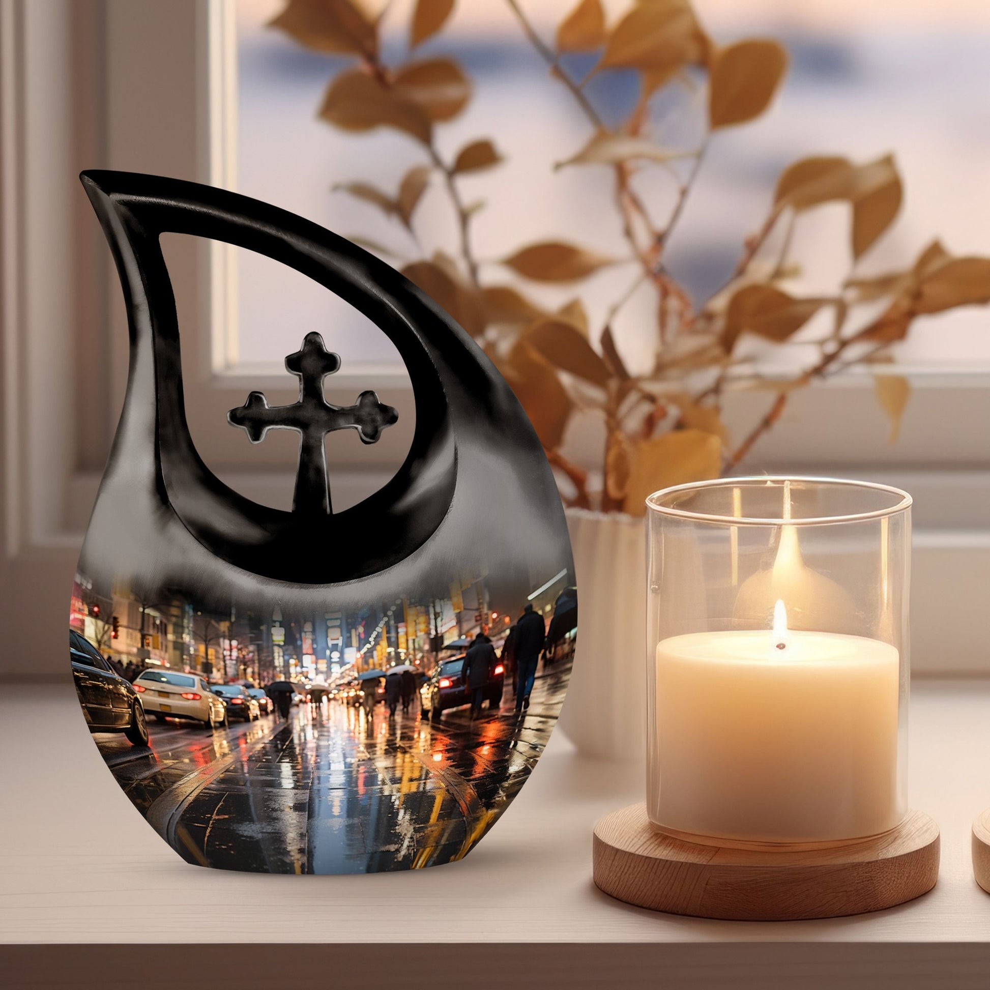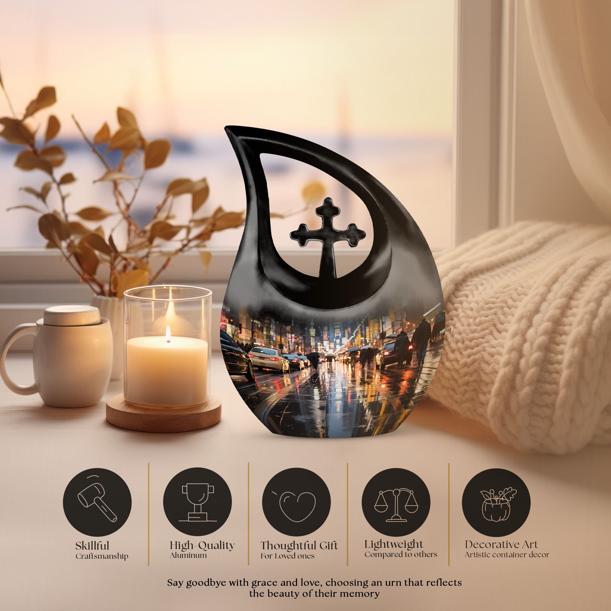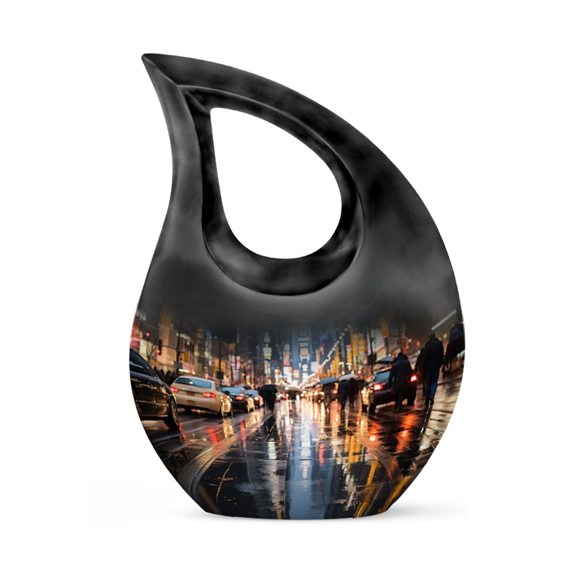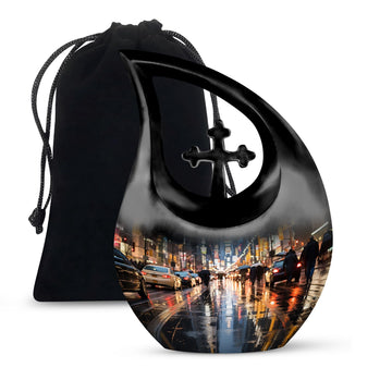 This City Themed Urn for Funeral brings a modern, emotional touch to remembrance. Featuring a peaceful rainy-city artwork, it offers a meaningful tribute for families seeking a contemporary large urn for ashes for women or a dignified memorial choice for men as well. Its reflective design captures memory, movement, and the quiet beauty of moments that stay with us forever.
