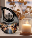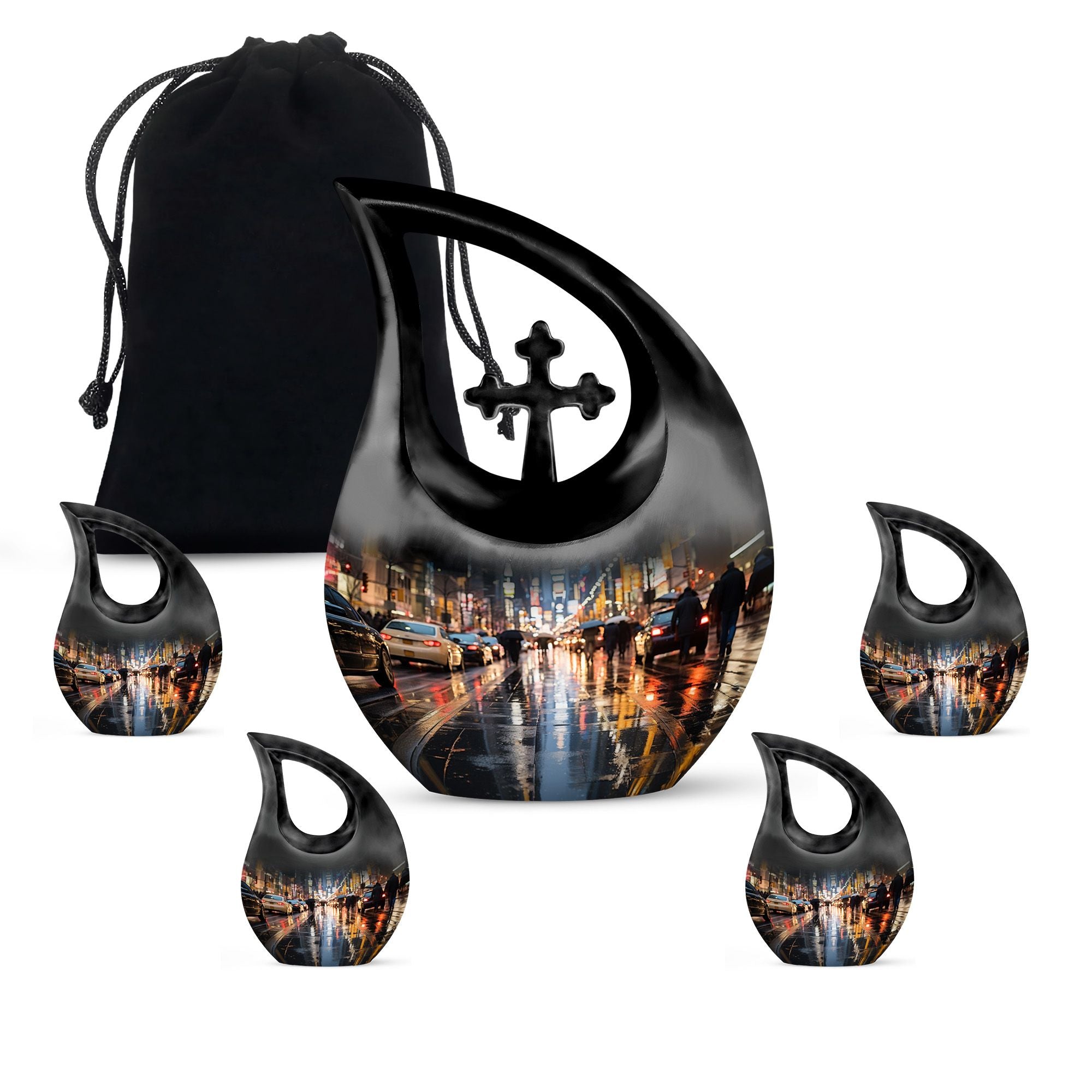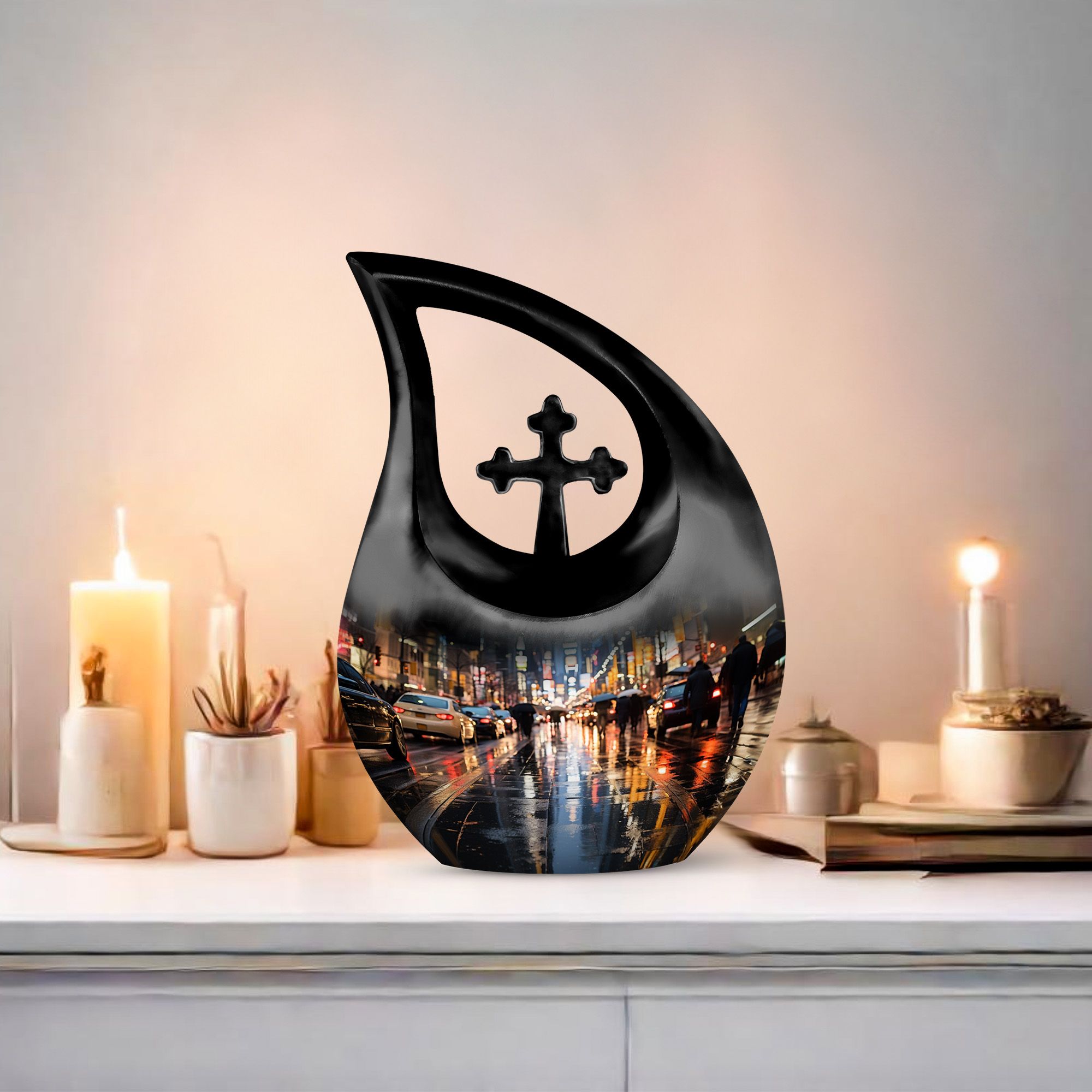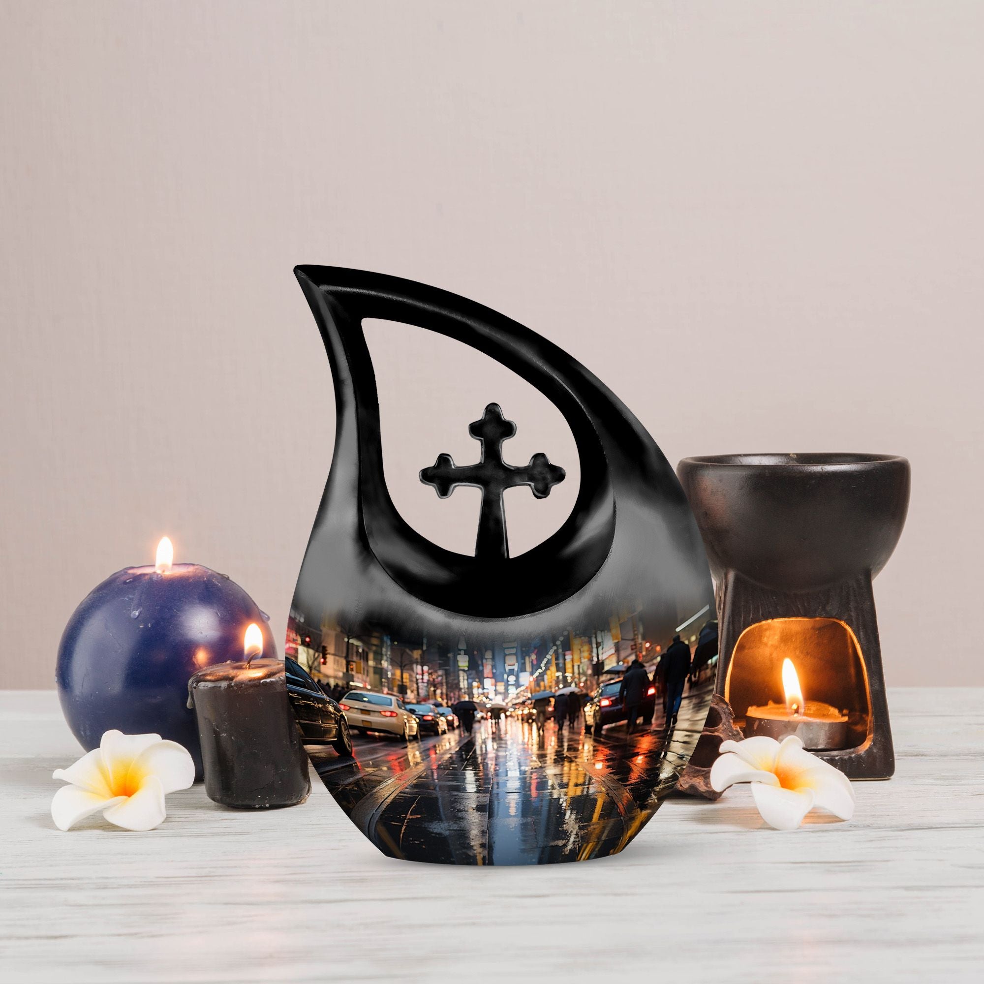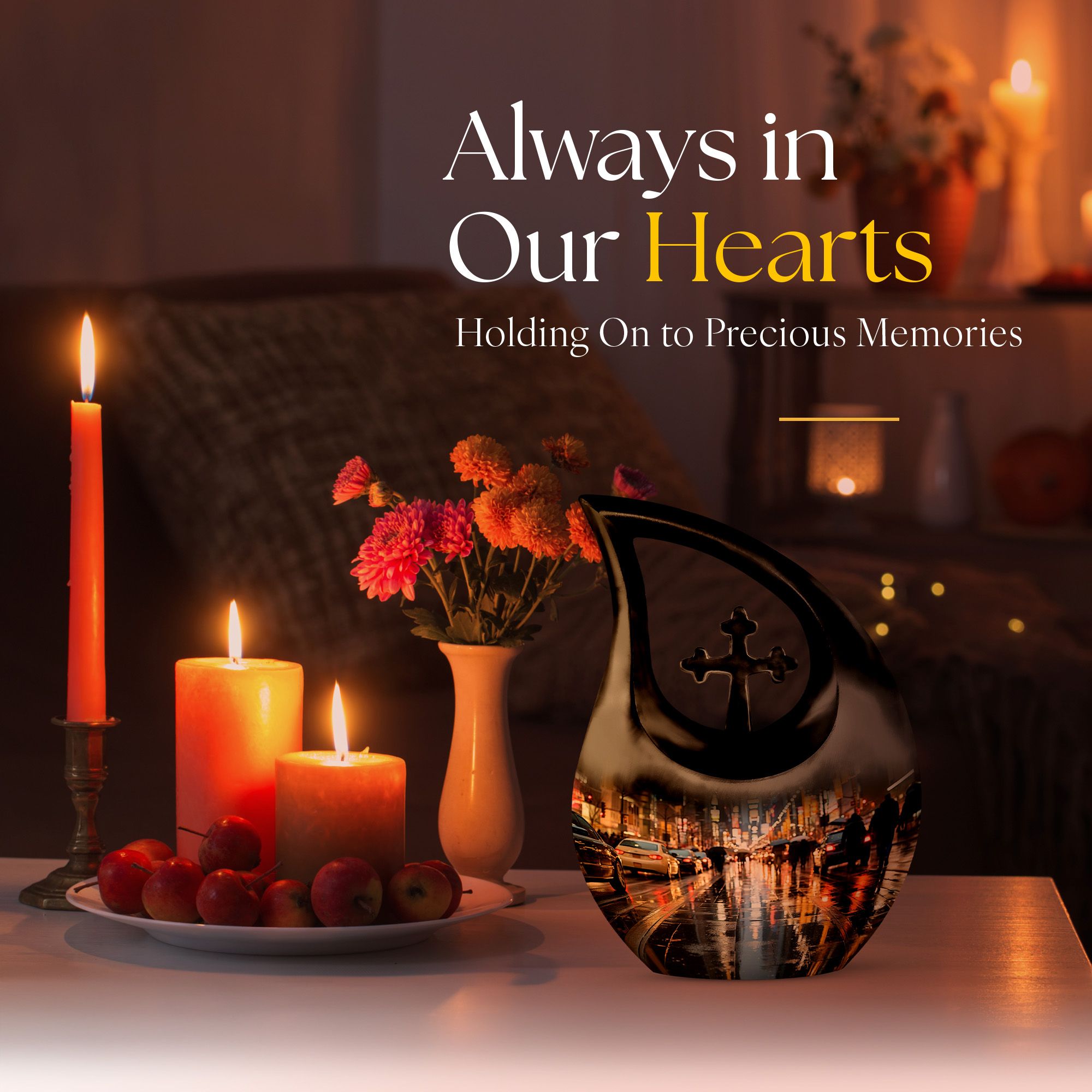 This City Themed Urn for Funeral brings a modern, emotional touch to remembrance. Featuring a peaceful rainy-city artwork, it offers a meaningful tribute for families seeking a contemporary large urn for ashes for women or a dignified memorial choice for men as well. Its reflective design captures memory, movement, and the quiet beauty of moments that stay with us forever.