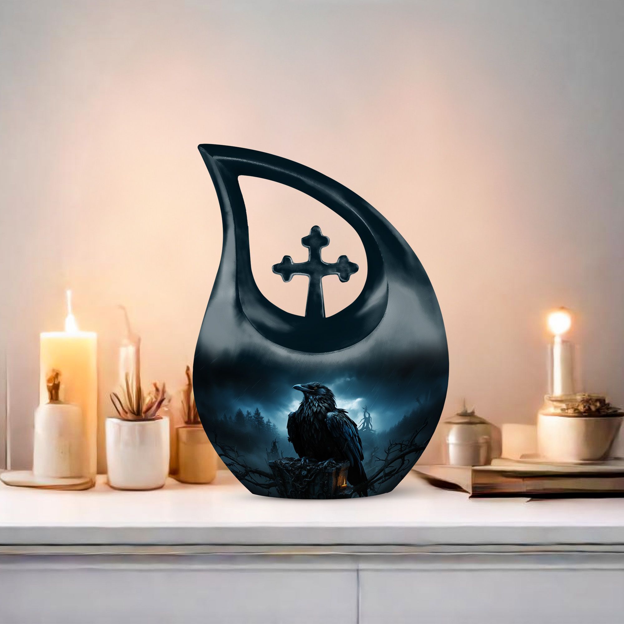 Honor a cherished life with this Black Raven Memorial Urn for Adults, a hauntingly beautiful tribute symbolizing mystery, wisdom, and eternal remembrance. Crafted for families seeking a meaningful resting place, this design is perfect for small ashes keepsake needs, small keepsake urns for ashes, or small urns for human ashes keepsake Mom or Dad.