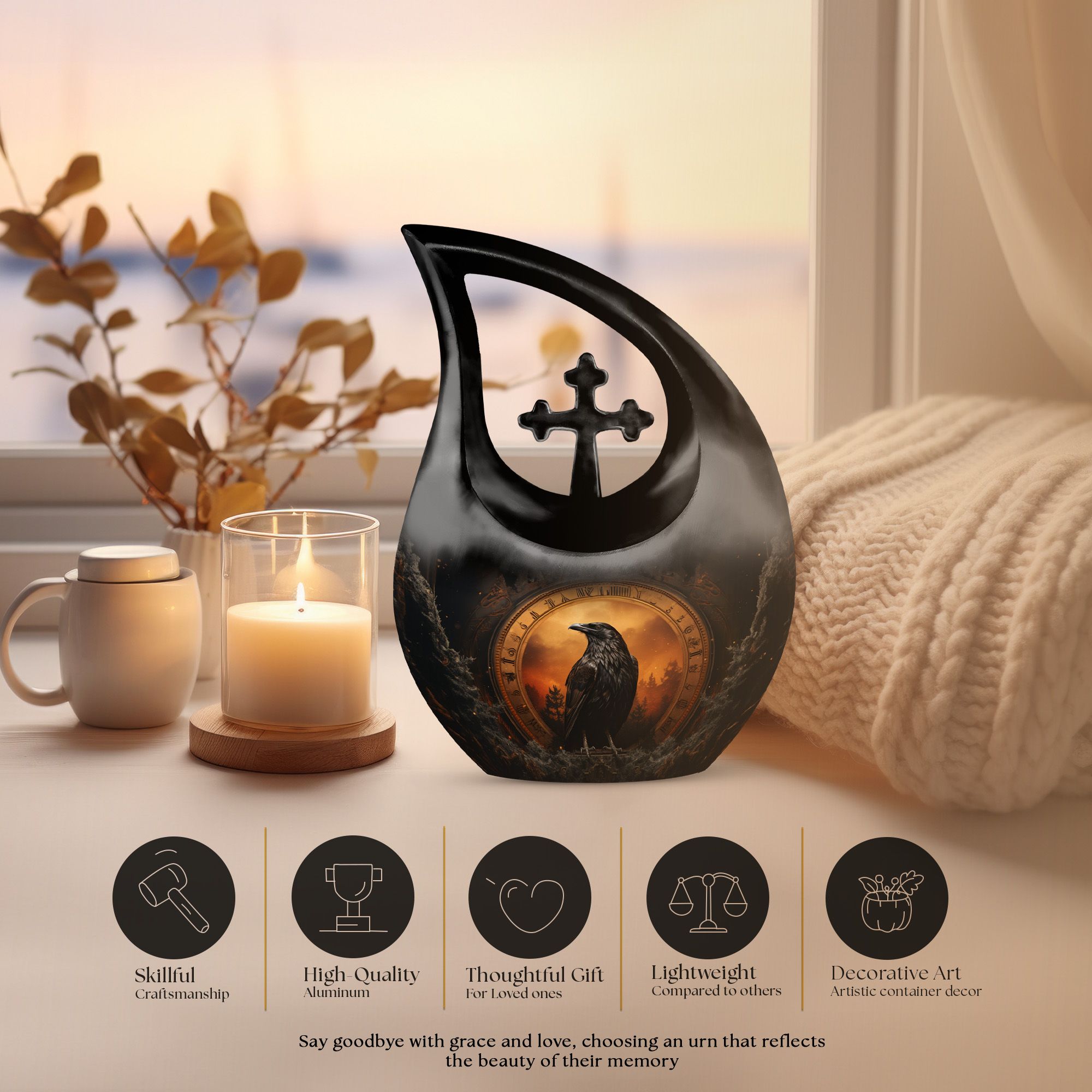 A meaningful tribute deserves a memorial that reflects love, strength, and cherished memories. This Raven Memorial Urn brings symbolic comfort to families seeking an elegant urn for cremation, offering a dignified way to honor a mother, father, or any cherished loved one.