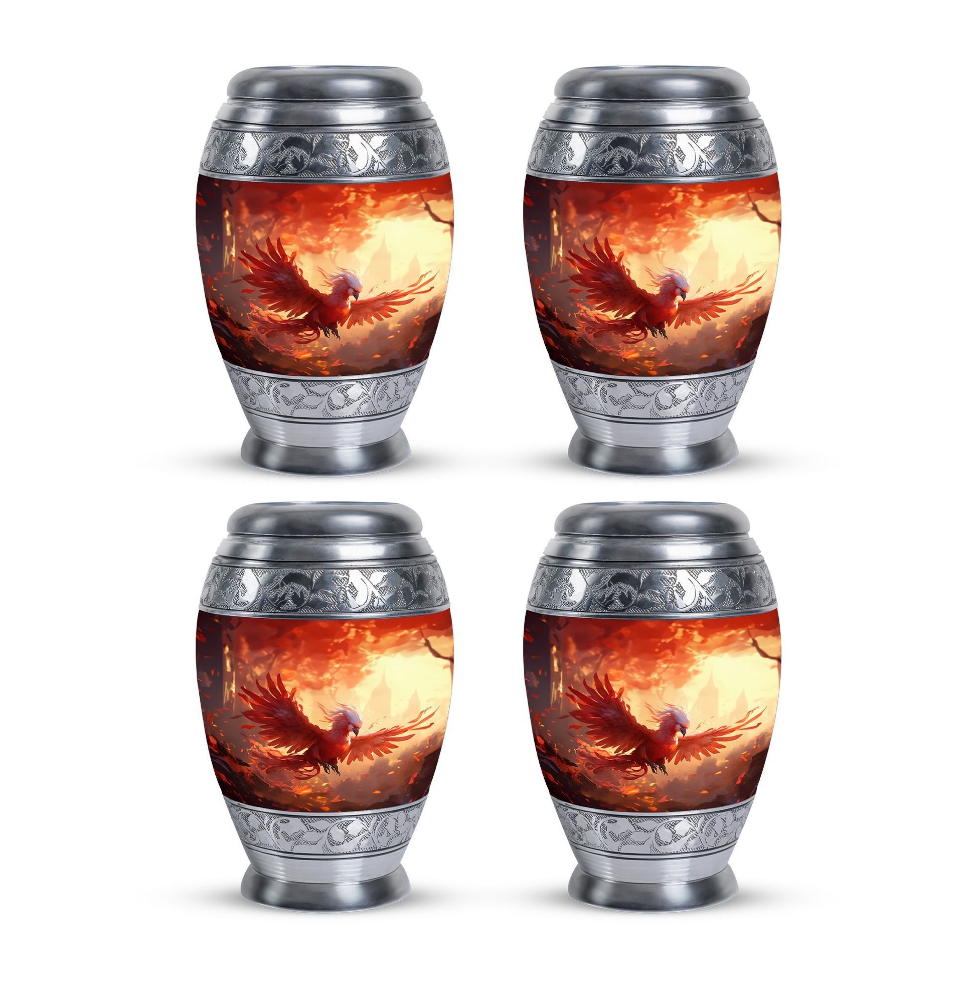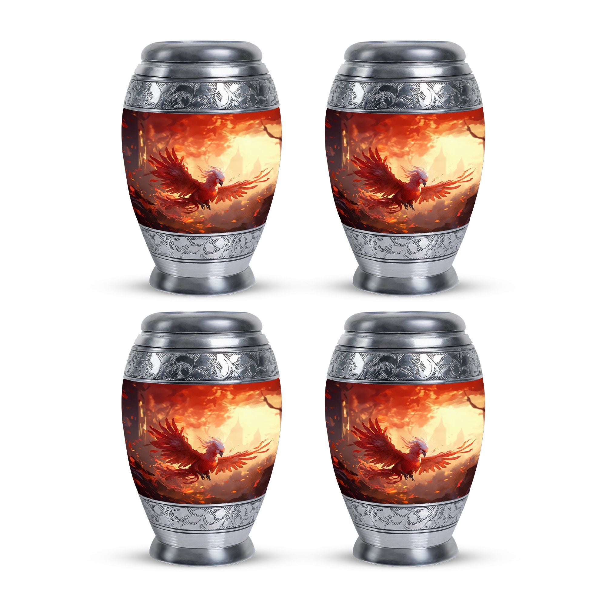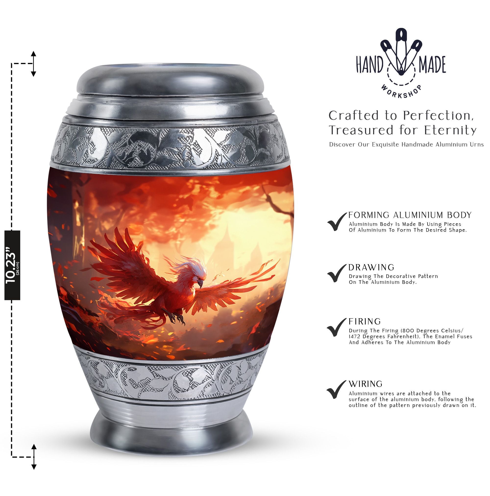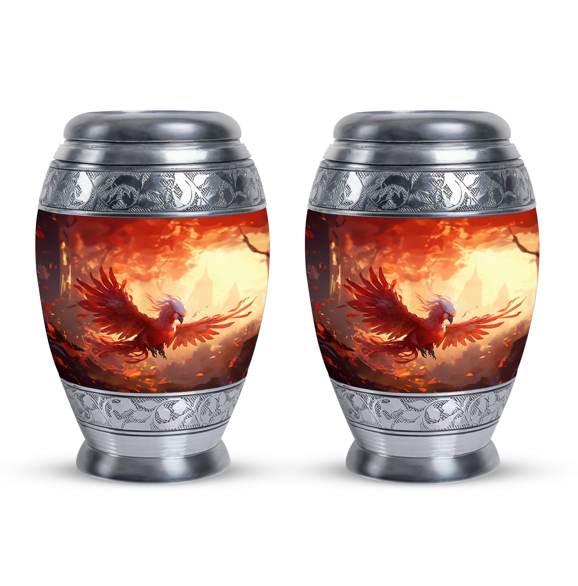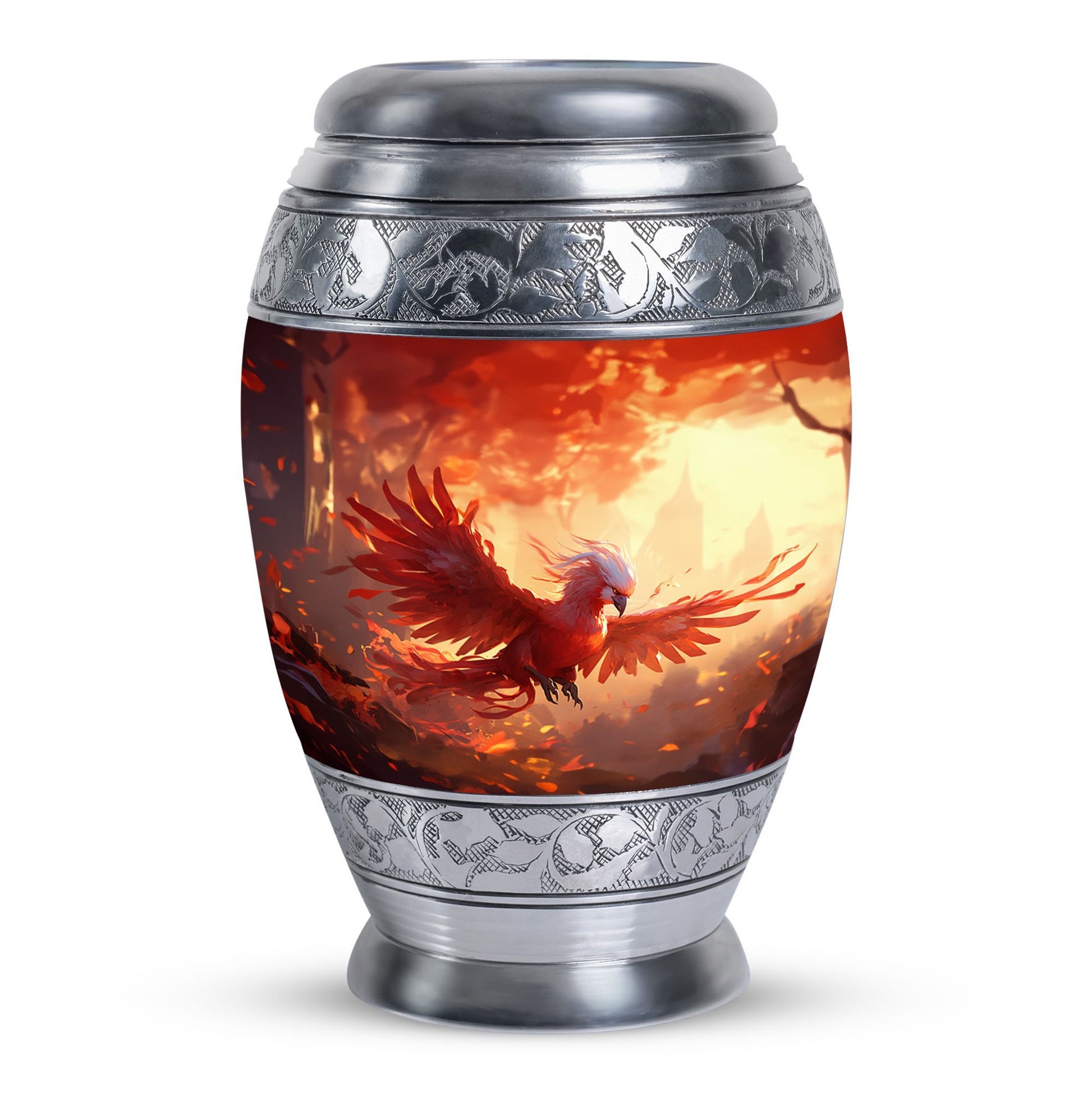 Honor your loved ones with our Red Phoenix Urns for Human Ashes, a perfect emblem of eternal respect and love. Constructed with premium aluminum, these Large Urns boast a timeless and classic urn design, which effortlessly makes an elegant statement. With a capacity of 200 cubic inches, it serves as a fitting memorial for your cherished one's final disposition. It weighs 3.3 pounds and stands at 10 inches in height, making it a prominent keepsake to symbolize your undying affections. The urns come with a velvet pouch for containment of ashes, ensuring a respectful repose for your beloved. You can further personalize these Metal Urns with engraved names, creating a unique tribute that truly resonates with your sentiments. Whether you are looking for Urns for Dad, Cremation Urns for Burial, Decorative Urns for Human Ashes, or a Modern Urn, this commemorative piece merges tradition and contemporary aesthetic in one. Note: the urn’s size measures at 3 inches. Honor their memory in a meaningful way, because their legacy deserves nothing less.