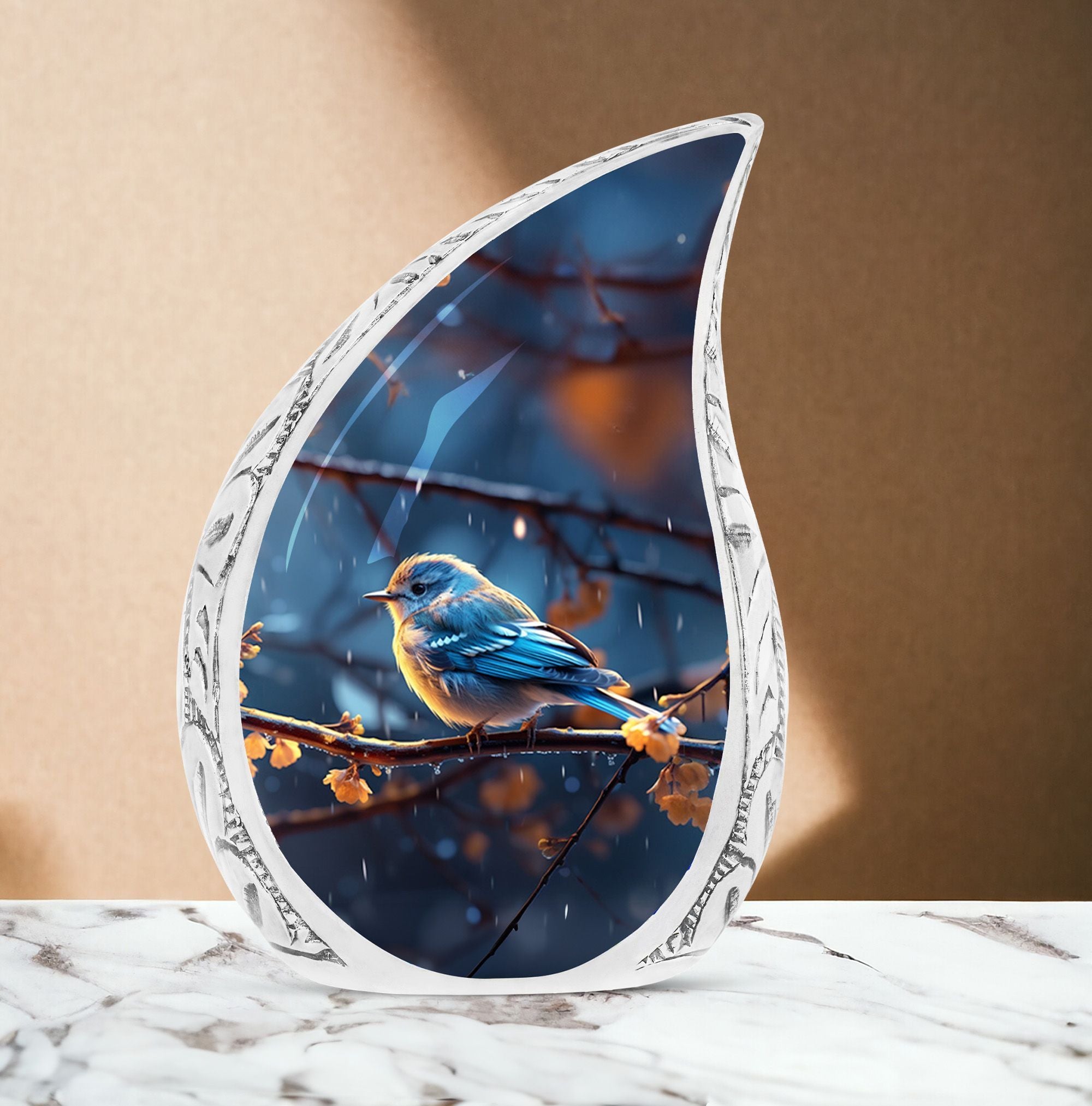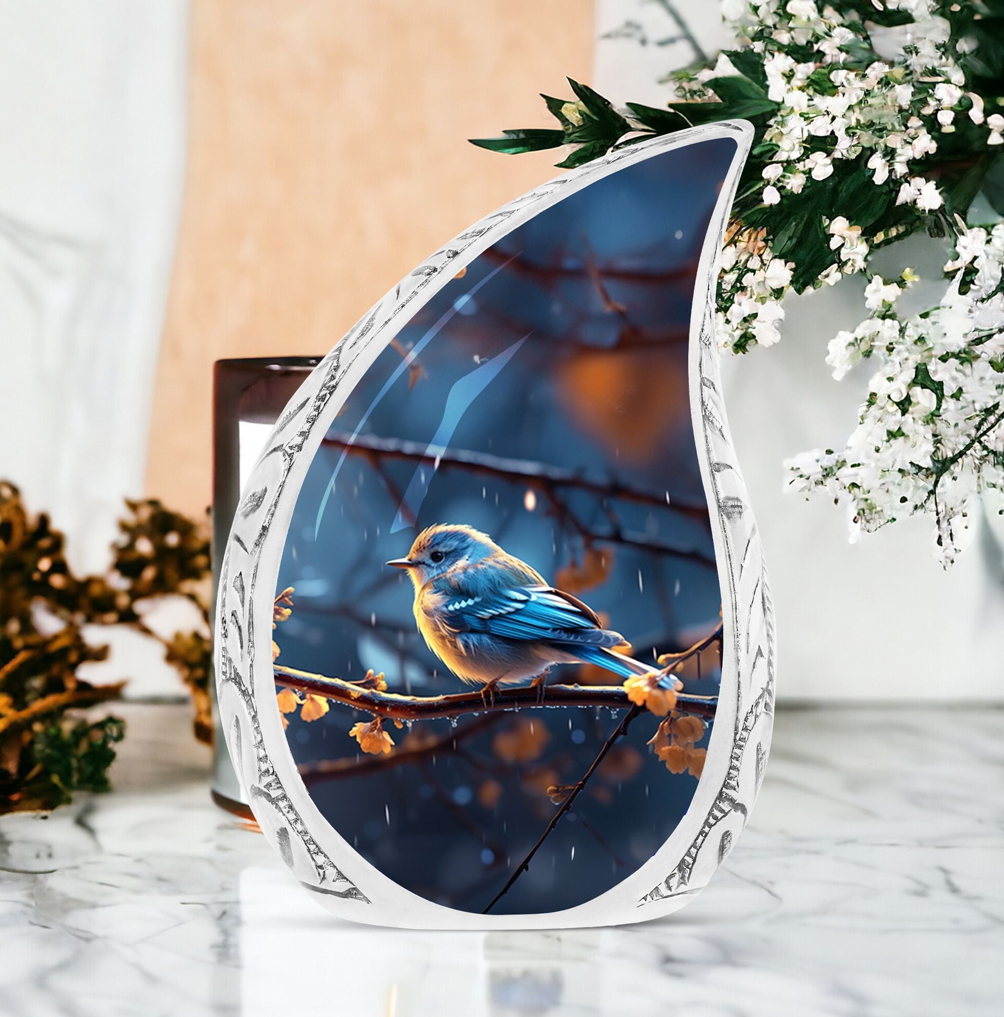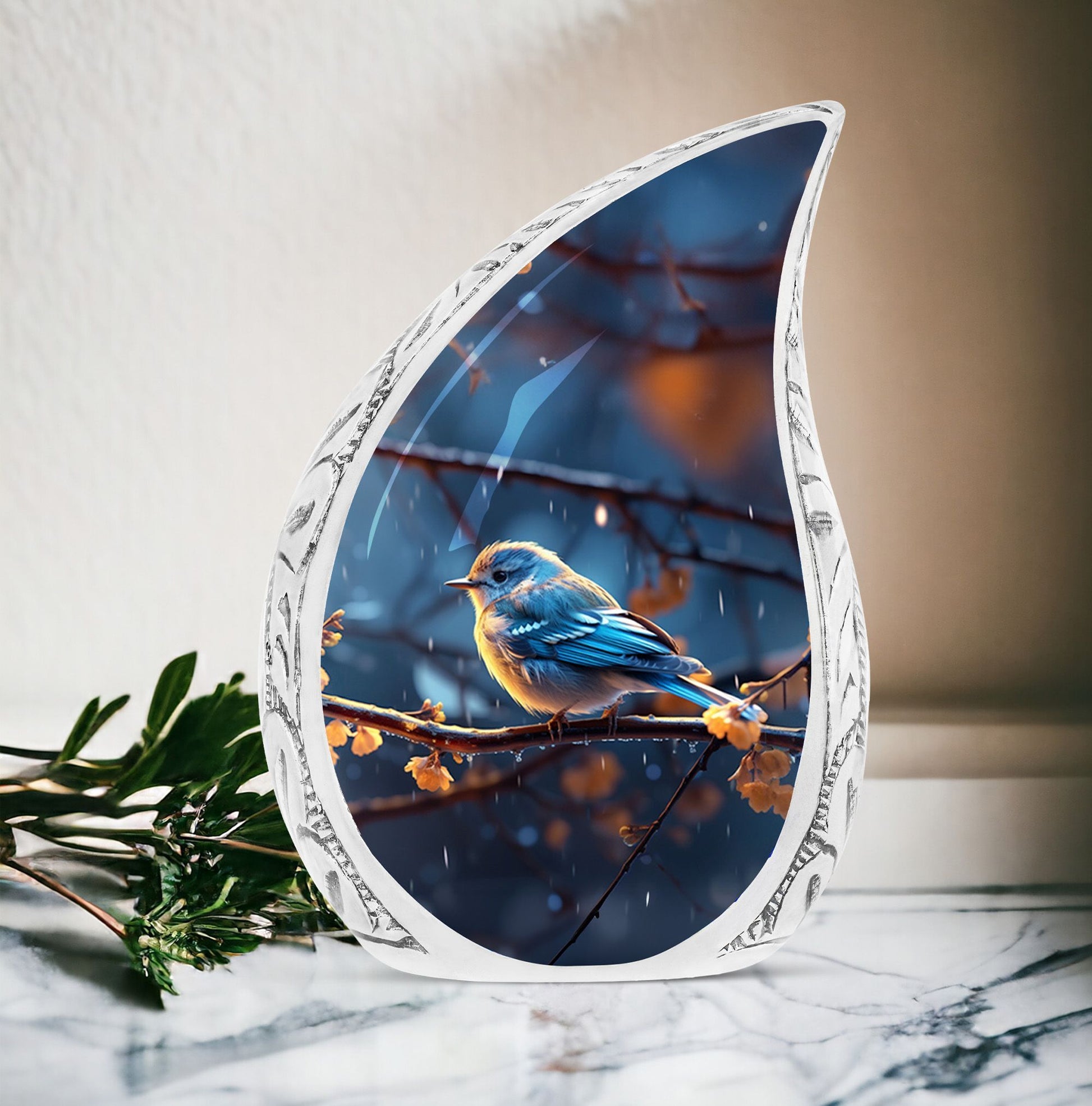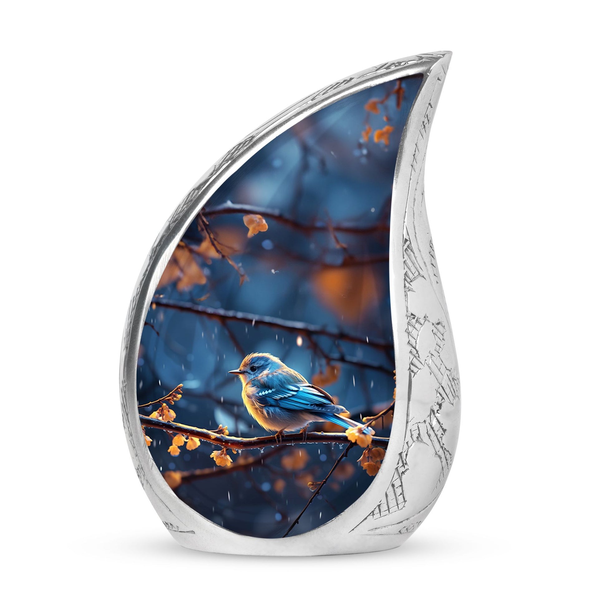Timelessly elegant, these 'Red Sparrow Urns for Human Ashes' offer a simple yet poignant way to pay homage to a loved one who meant the world to you. These large urns, constructed from durable aluminium, stand tall at 10 inches in height and weigh 3.3 pounds. They offer a capacity of 200 cubic inches, perfect for honoring the memory of an adult. We understand that every detail counts in these vulnerable moments; thus, these urns come with a sophisticated velvet pouch. It provides a dignified containment method for the ashes. Personalization, the most unique characteristic of these urns, enables you to engrave names, ensuring the remembrance remains intact forever. Renowned as 'memorial urns,' selections like these are diligently searched for their capability to weave an eternal bond with the departed soul. Honor your loved one with these custom cremation urns, an emblem of love that outlasts time itself.