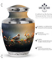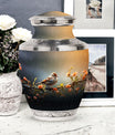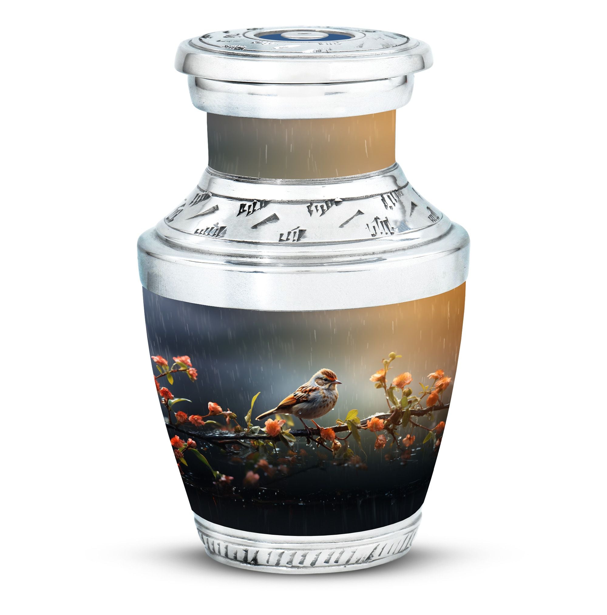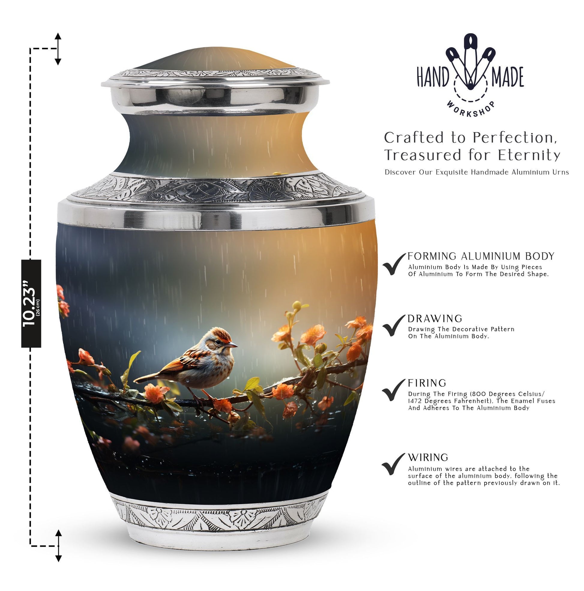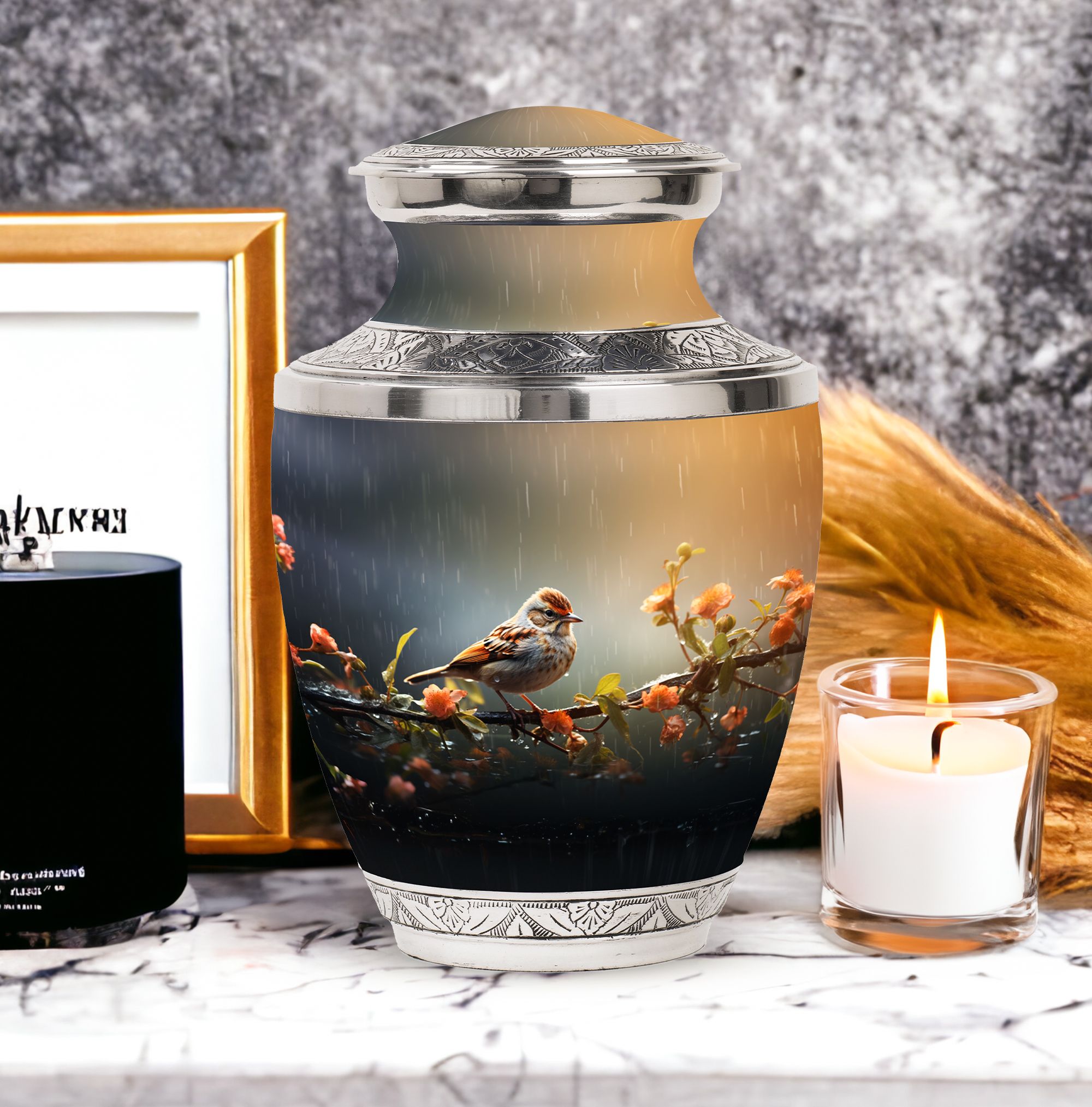 Introducing our Red Sparrow Urns; a timeless vessel designed specifically for those in need of a respectful and decorous way to preserve their loved one's cherished remnants. Catering especially to the needs of adults and seniors, these classic large urns are ideal for both home memorial displays or ceremonial use. Each urn, a lasting keepsake, is meticulously crafted using high-quality aluminium and exhibits a splendid exterior. Sized at 10 inches in height and 3 inches wide, the urn has a substantial weight of 3.3 pounds, ensuring its firm stability and durability. It offers a generous capacity of 200 cubic inches to safely contain the ashes. To make the personification more profound, they can be personalized with engraved names. Moreover, the urn come comfortably nestled in a velvet pouch, ensuring a dignified dissemination of ashes. A tender-hearted tribute as a 'urn for mom' or symbolizing it as 'ashes holder for cremation', every aspect of this urn aspires to celebrate life, love and unforgettable memories.
